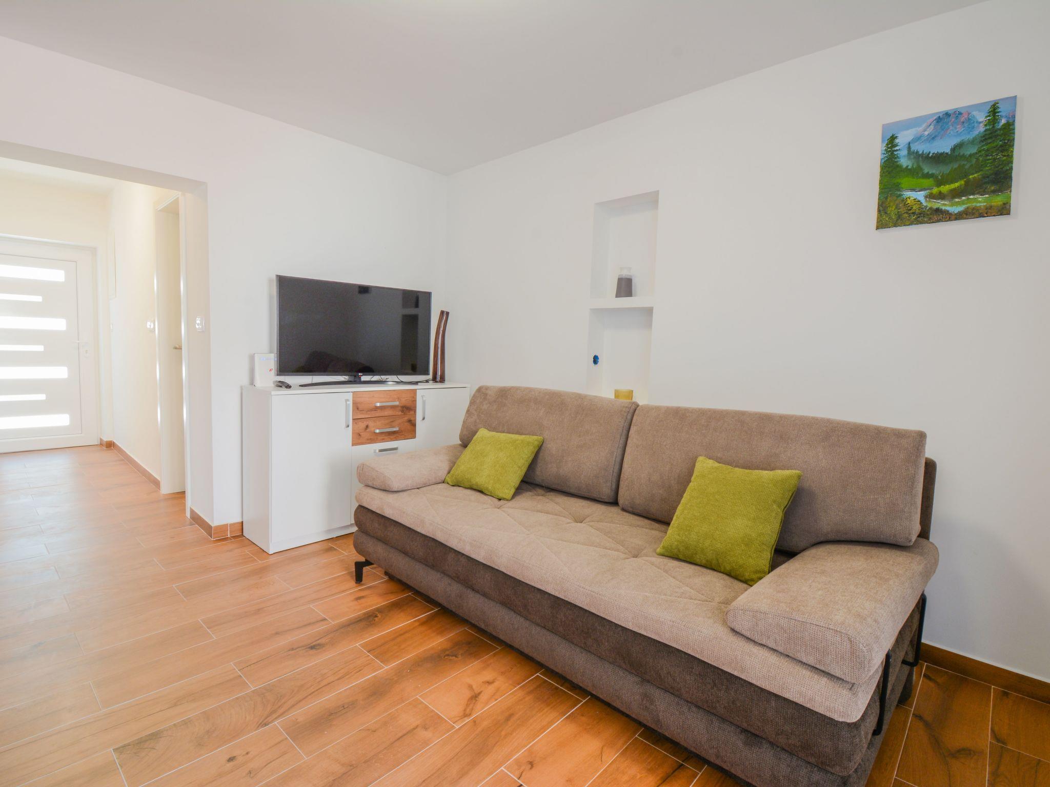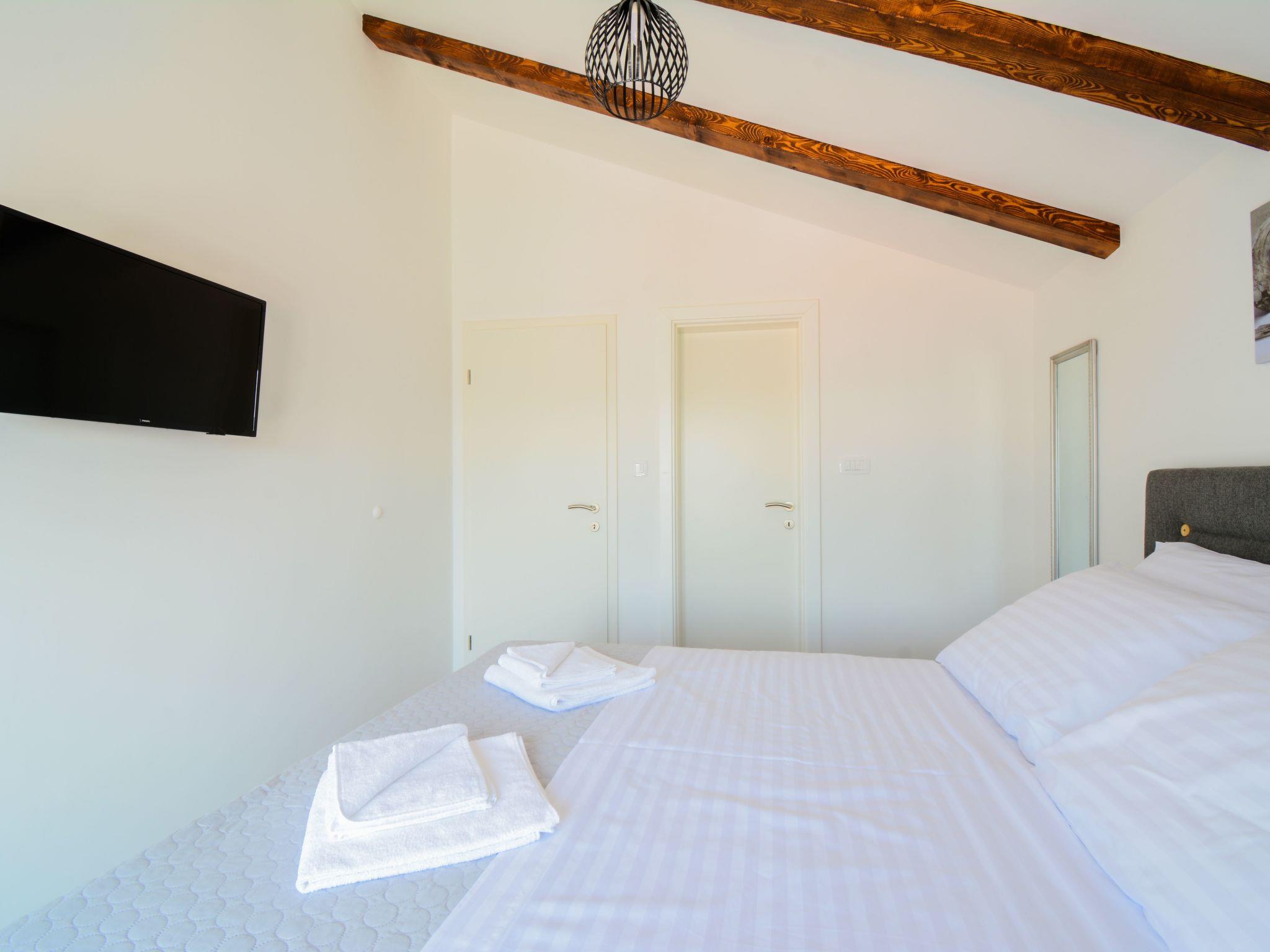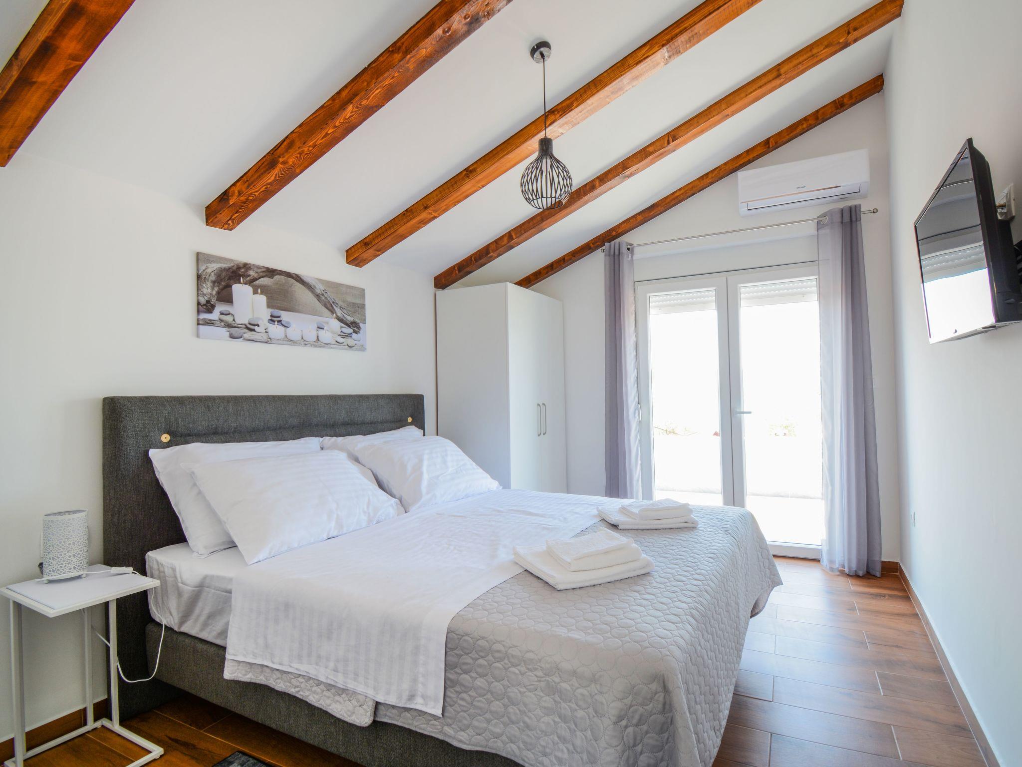 The entire villa is air-conditioned and has an excellent wi-fi network and consists of three bedrooms, three modern bathrooms, a living room, an open dining room, a bathroom, and a fully equipped kitchen. It can accommodate up to eight people, and guests don't have to worry about parking - they have a private parking lot in front of the villa. Guests will love the terrace, which contains a large table with benches and a fireplace where they can prepare Dalmatian specialties. From the terrace, you can go directly to the nearby beach and jump into the crystal clear sea, which is a special experience, especially after enjoying a cup of coffee on the sunny balcony. From the balcony guests can watch the spectacular sunset, which is said to be the most beautiful in Zadar. Summer nights will enchant guests - clear starry sky, fresh air and pleasant lighting of the swimming pool in the paved garden give a special atmosphere.