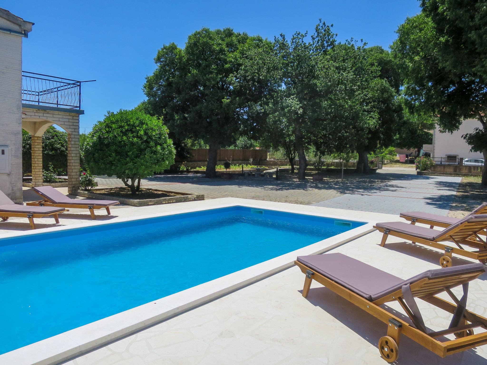 Pridraga 5 km from Novigrad: Single-family house "Culina", 2 storeys. 1.1 km from the centre of Pridraga, in a sunny position, 1.9 km from the sea, 1.9 km from the beach. Private: property 3'000 m2 (fenced), wildlife garden and trees, swimming pool angular, heated (8 x 4 m, depth 150 cm, seasonal availability: 01.Apr. - 01.Nov.) with internal staircase. Outdoor shower, table tennis, barbecue (swing), pool maintenance by the owner/gardener. In the house: internet access, billiard table, table football, washing machine. Parking (for 5 cars) at the house on the premises. Shop 500 m, bus stop 15.4 km, pebble beach 1.9 km. Please note: airfield 38 km from the property.