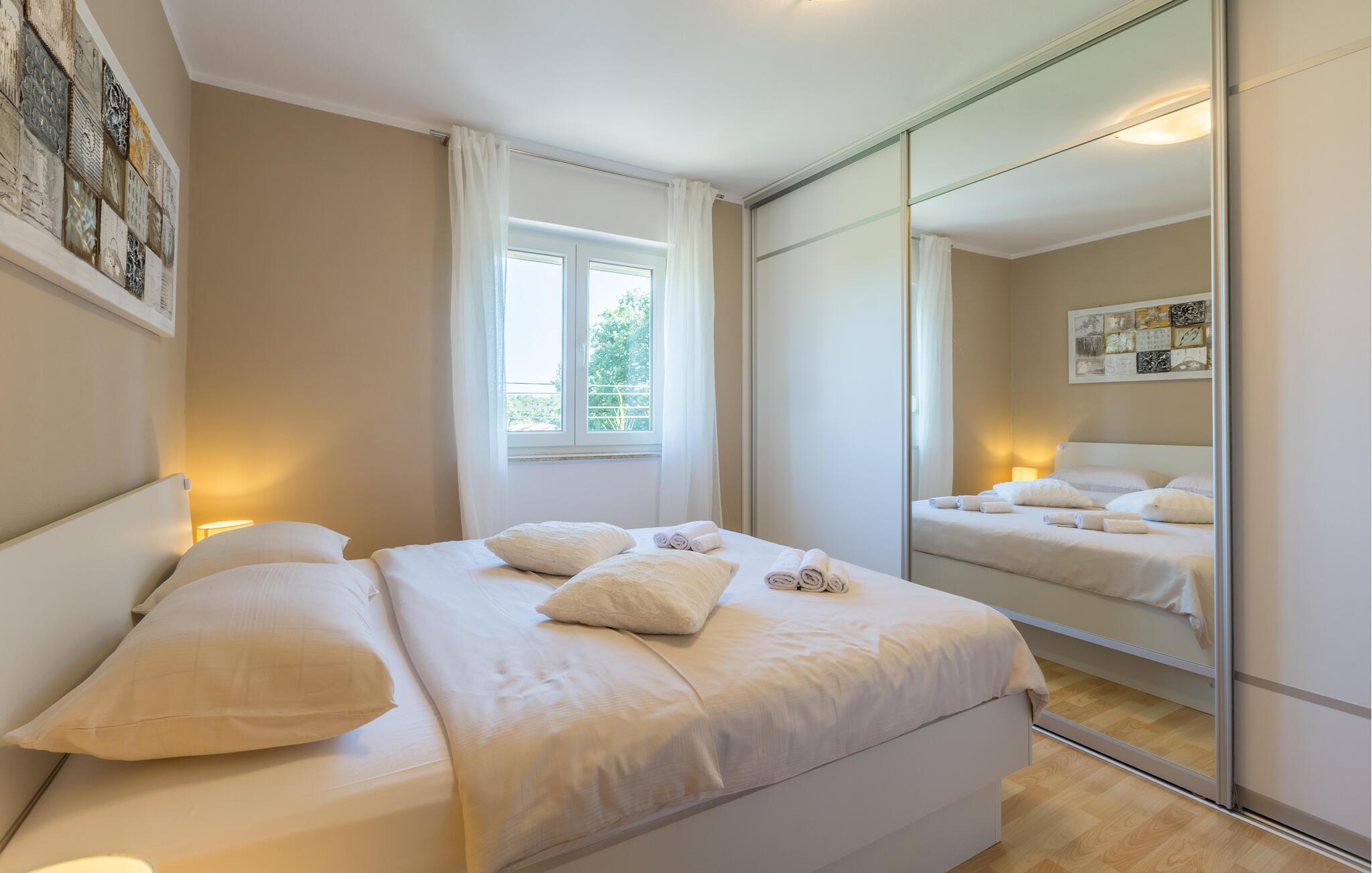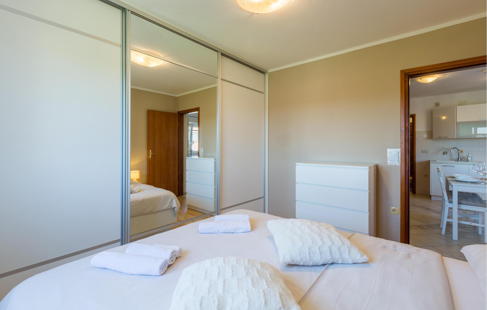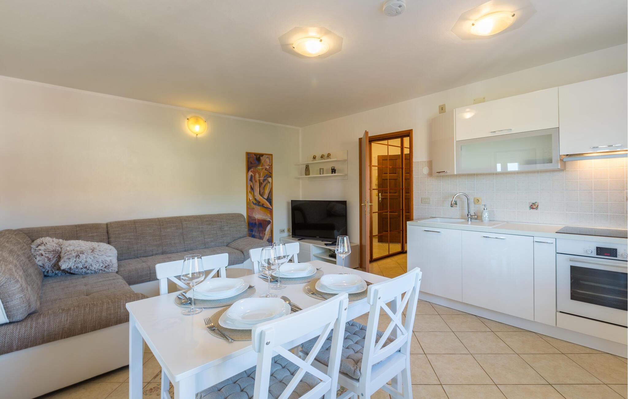 Velkommen til denne skønne lejlighed, der ligger i dejlige omgivelser i Karigador, og hvor I får en vidunderlig ramme for en allelunde afslappende ferie. Lejligheden er nydeligt indrettet med rene linjer og gode faciliteter, der gør det nemt at slappe af med det samme, I ankommer. Køkkenet er moderne og fuldt udstyret, så tag jer blot god tid til at kræse om livretterne med et godt glas vin i hånden, inden I flader dejligt ud i sofaen efter en aktiv feriedag.