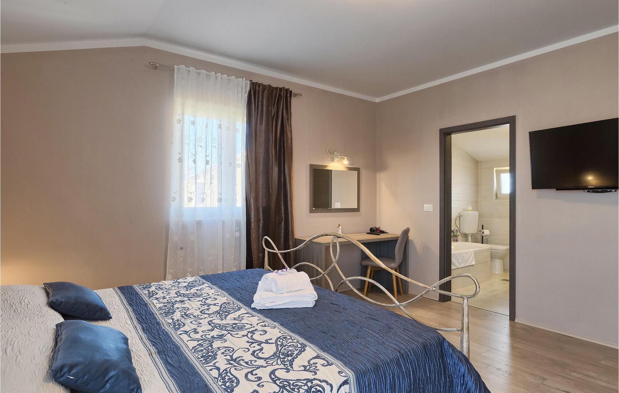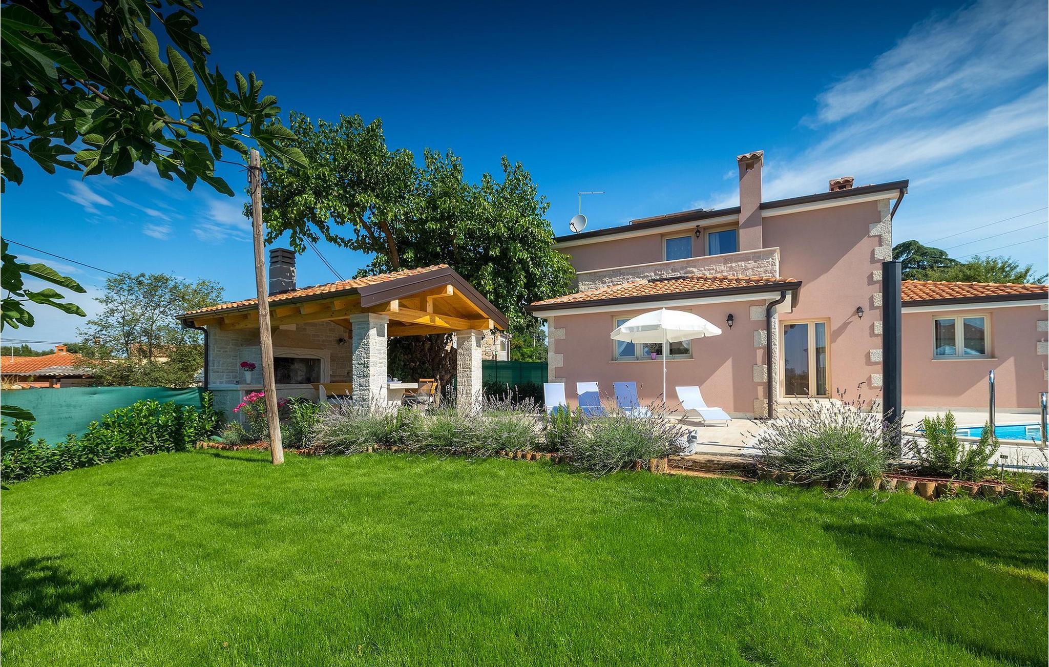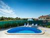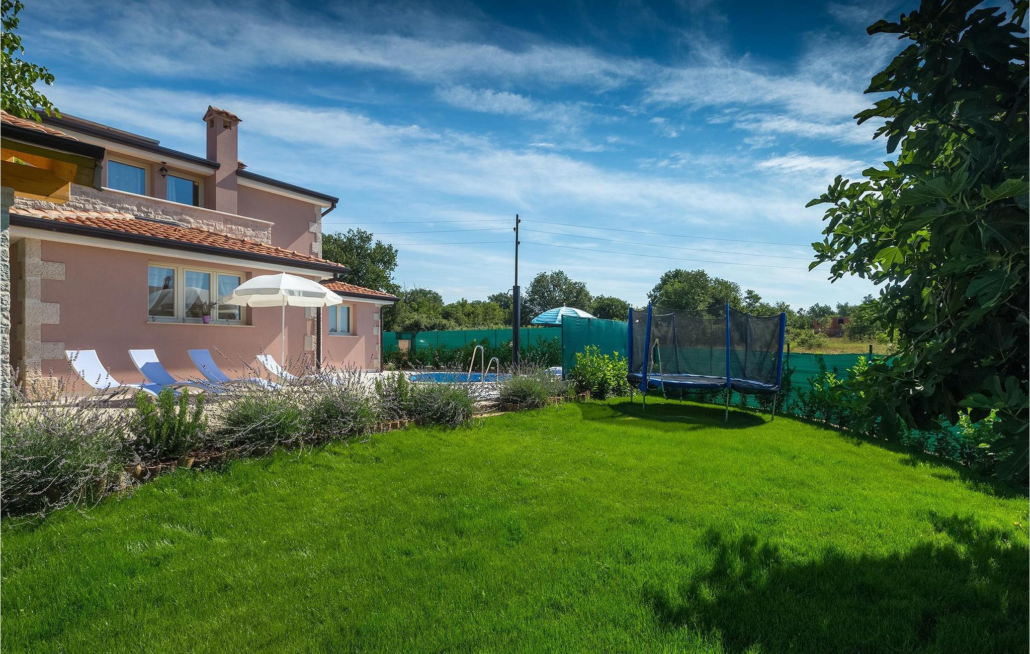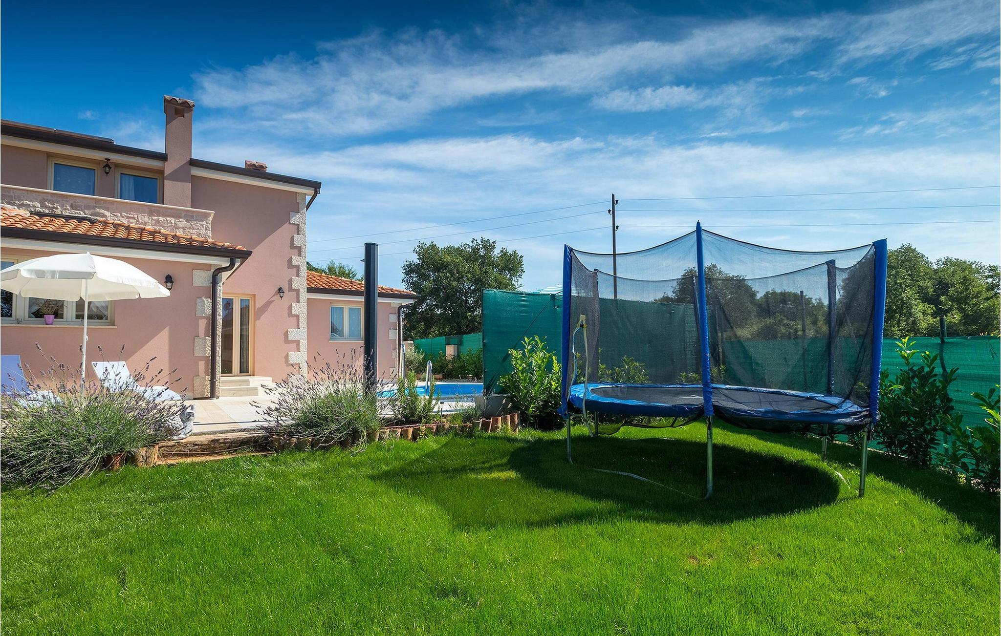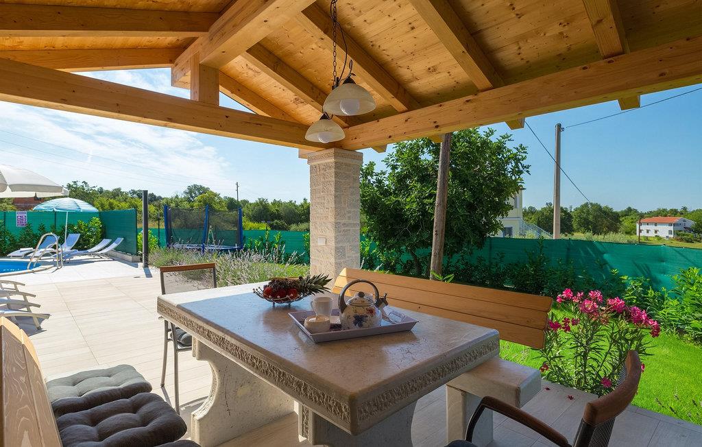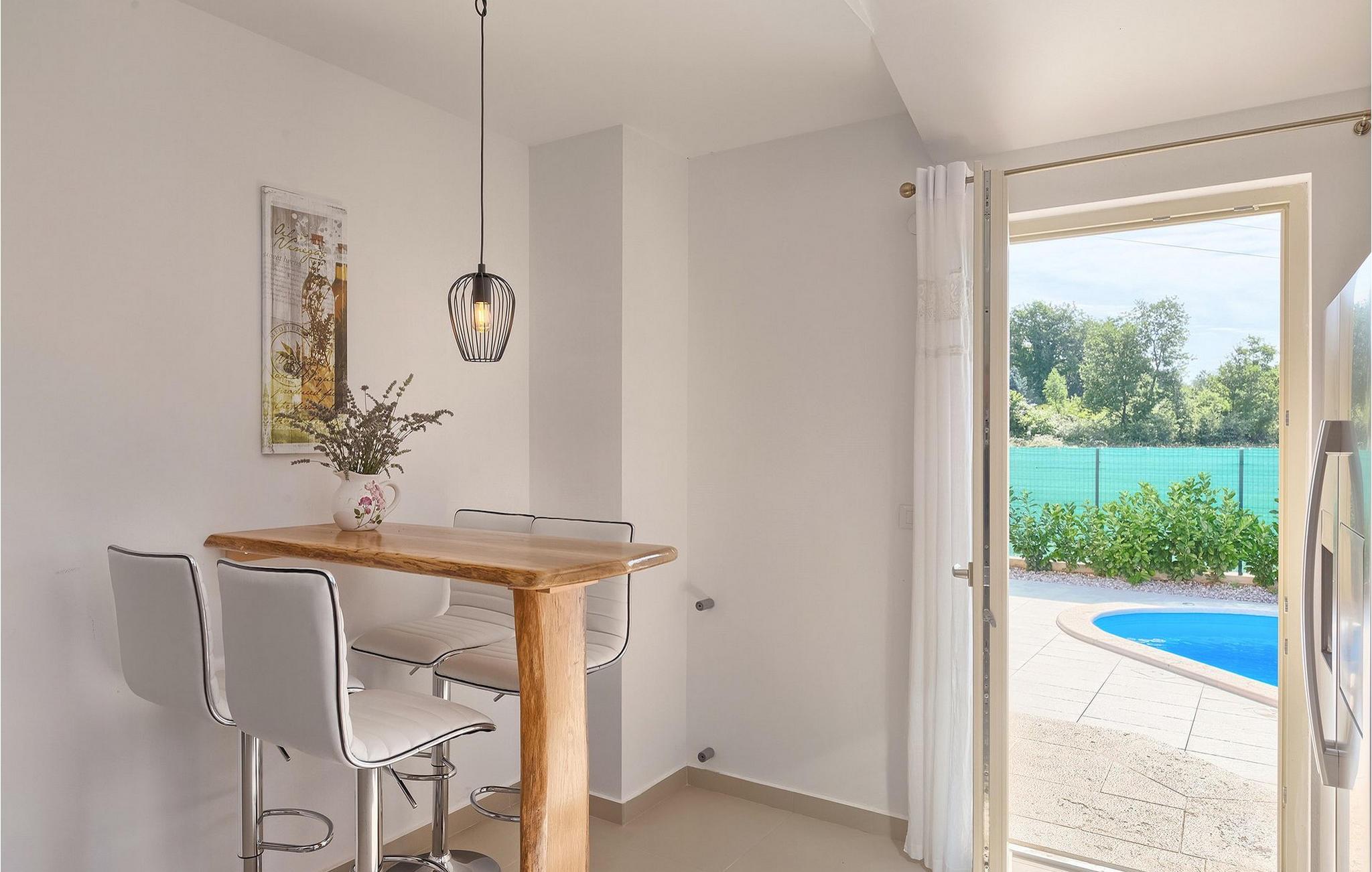 Dejlige Villa Murva er en 3-værelses villa nær Porec. Stueetagen består af et opholds- og spiseområde, forbundet med et fuldt udstyret køkken, som har direkte adgang til poolområdet i villaens have. Alle de tre soveværelser har aircondition og har dobbeltseng, tv og eget badeværelse. Et af soveværelserne ligger i stueetagen, mens den anden etage ligger på øverste etage og deler en hyggelig terrasse. Udenfor, i haven, er der en overdækket terrasse, hvor du kan nyde udendørs spisning og tilberede måltider på kulgrillen. Der er en lille græsplæne med trampolin, hvor børnene kan hygge sig og have det sjovt, mens I nyder solen på liggestolene ved siden af poolen. Villaen er den perfekte familieindkvartering, velegnet til op til 8 gæster, fuldt airconditioneret, med to private parkeringspladser og beliggende på et lille sted, men tæt på alle de faciliteter, du måtte have brug for under din ferie. :)