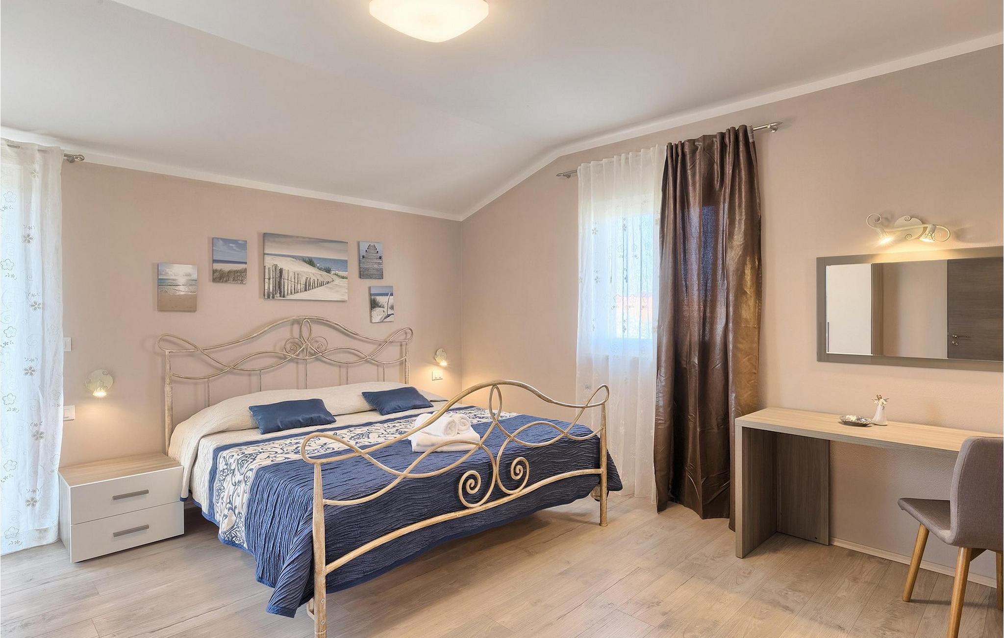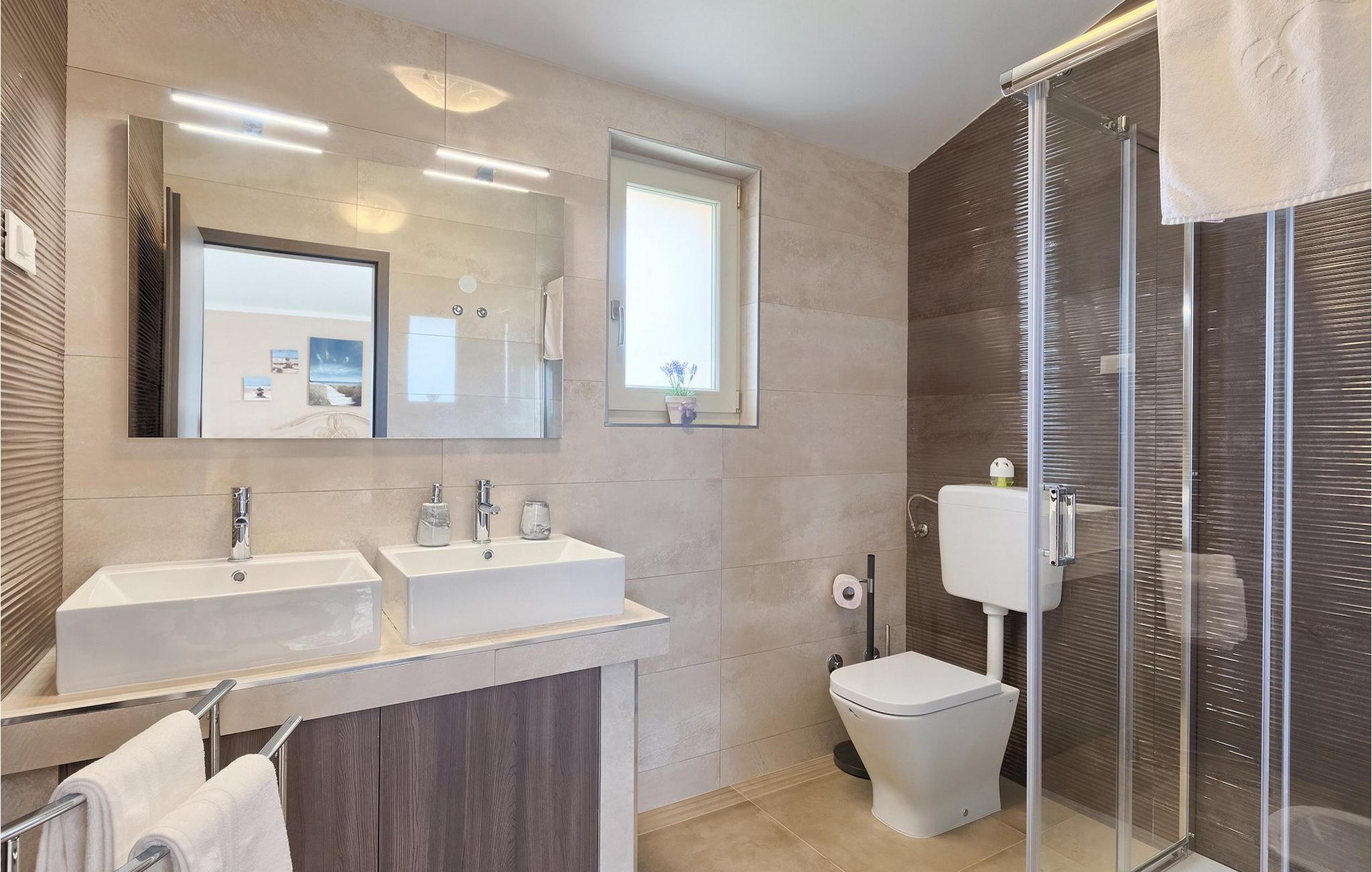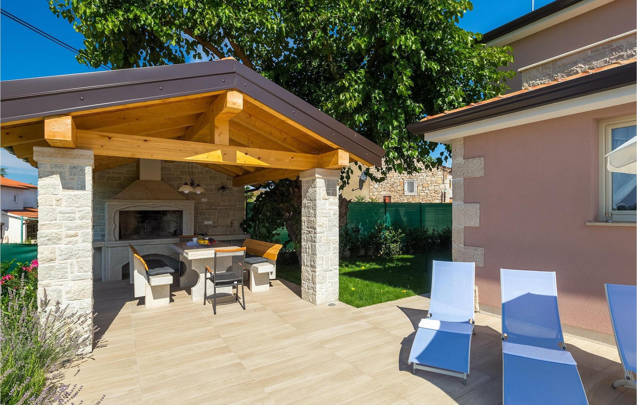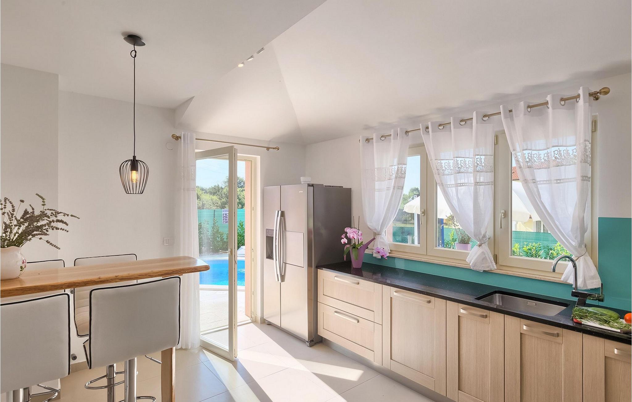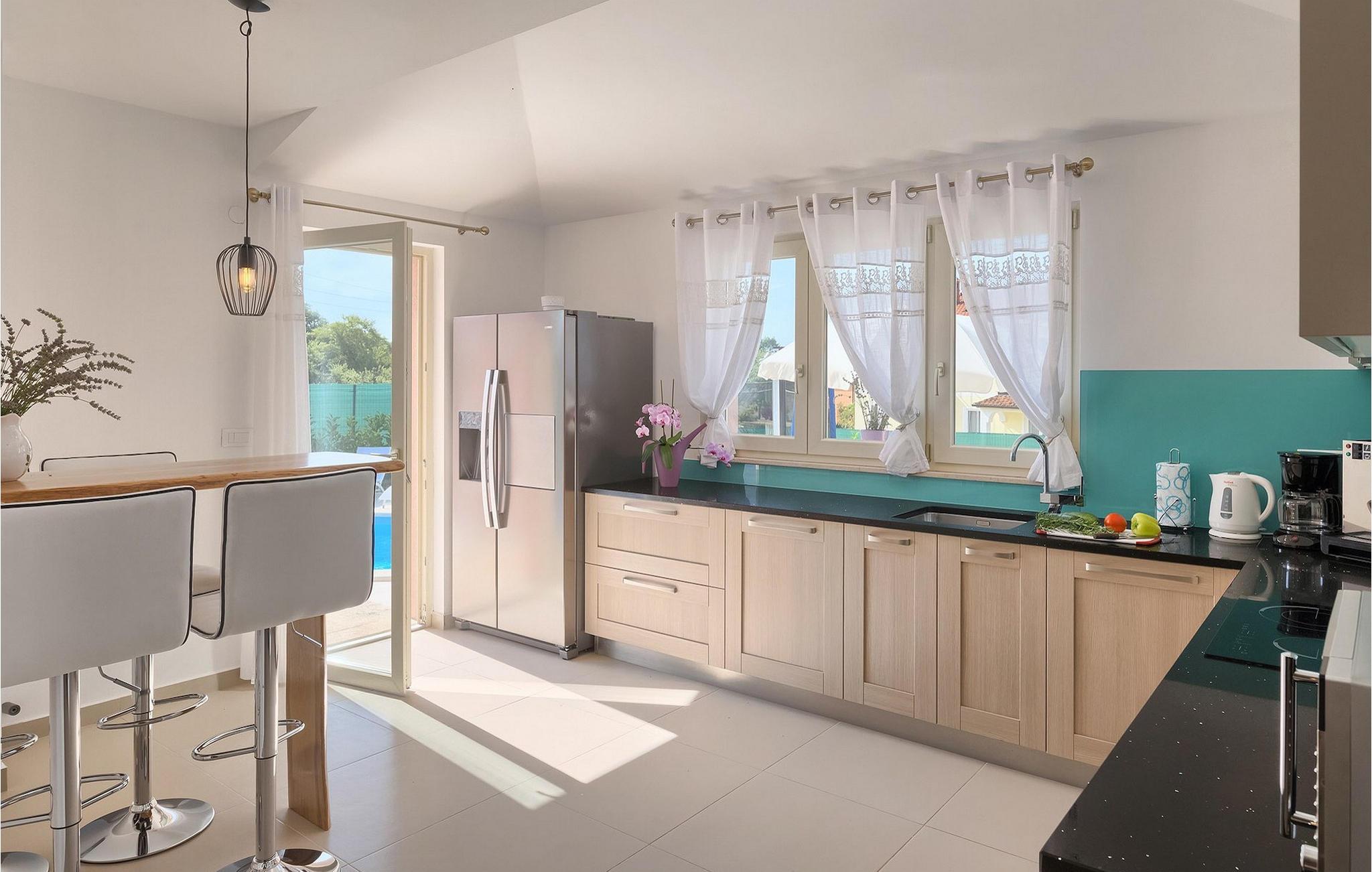 Dejlige Villa Murva er en 3-værelses villa nær Porec. Stueetagen består af et opholds- og spiseområde, forbundet med et fuldt udstyret køkken, som har direkte adgang til poolområdet i villaens have. Alle de tre soveværelser har aircondition og har dobbeltseng, tv og eget badeværelse. Et af soveværelserne ligger i stueetagen, mens den anden etage ligger på øverste etage og deler en hyggelig terrasse. Udenfor, i haven, er der en overdækket terrasse, hvor du kan nyde udendørs spisning og tilberede måltider på kulgrillen. Der er en lille græsplæne med trampolin, hvor børnene kan hygge sig og have det sjovt, mens I nyder solen på liggestolene ved siden af poolen. Villaen er den perfekte familieindkvartering, velegnet til op til 8 gæster, fuldt airconditioneret, med to private parkeringspladser og beliggende på et lille sted, men tæt på alle de faciliteter, du måtte have brug for under din ferie. :)