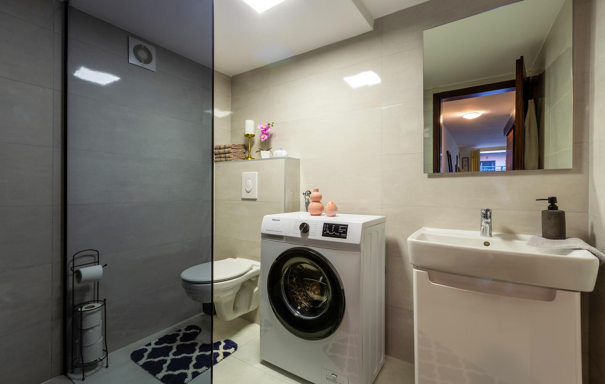 Den lyse og åbne stue i jeres ferielejlighed i Novigrad indbyder til afslapning. Gør det komfortabelt for jer i den behagelige sofa, nyd jeres yndlingsserie eller læs en god bog. Den hyggelige atmosfære i jeres smukt dekorerede lejlighed skaber en bekymringsfri feriestemning. Start dagen med en lækker morgenmad ved det runde bord i køkkenet, og planlæg jeres udflugter i området. Efter en begivenhedsrig dag er den lille terrasse det perfekte sted at afslutte aftenen med et glas vin.