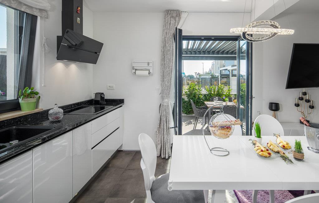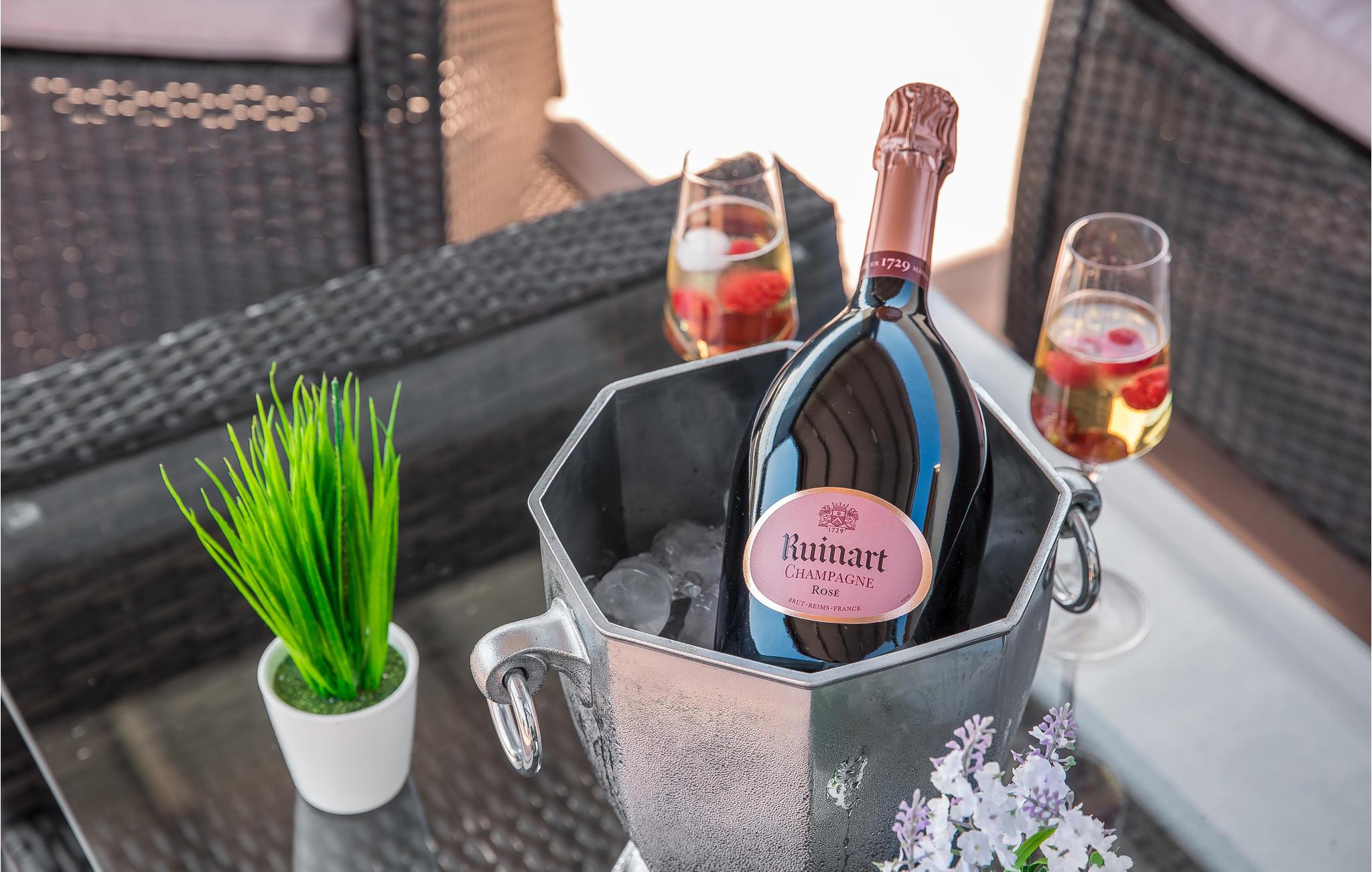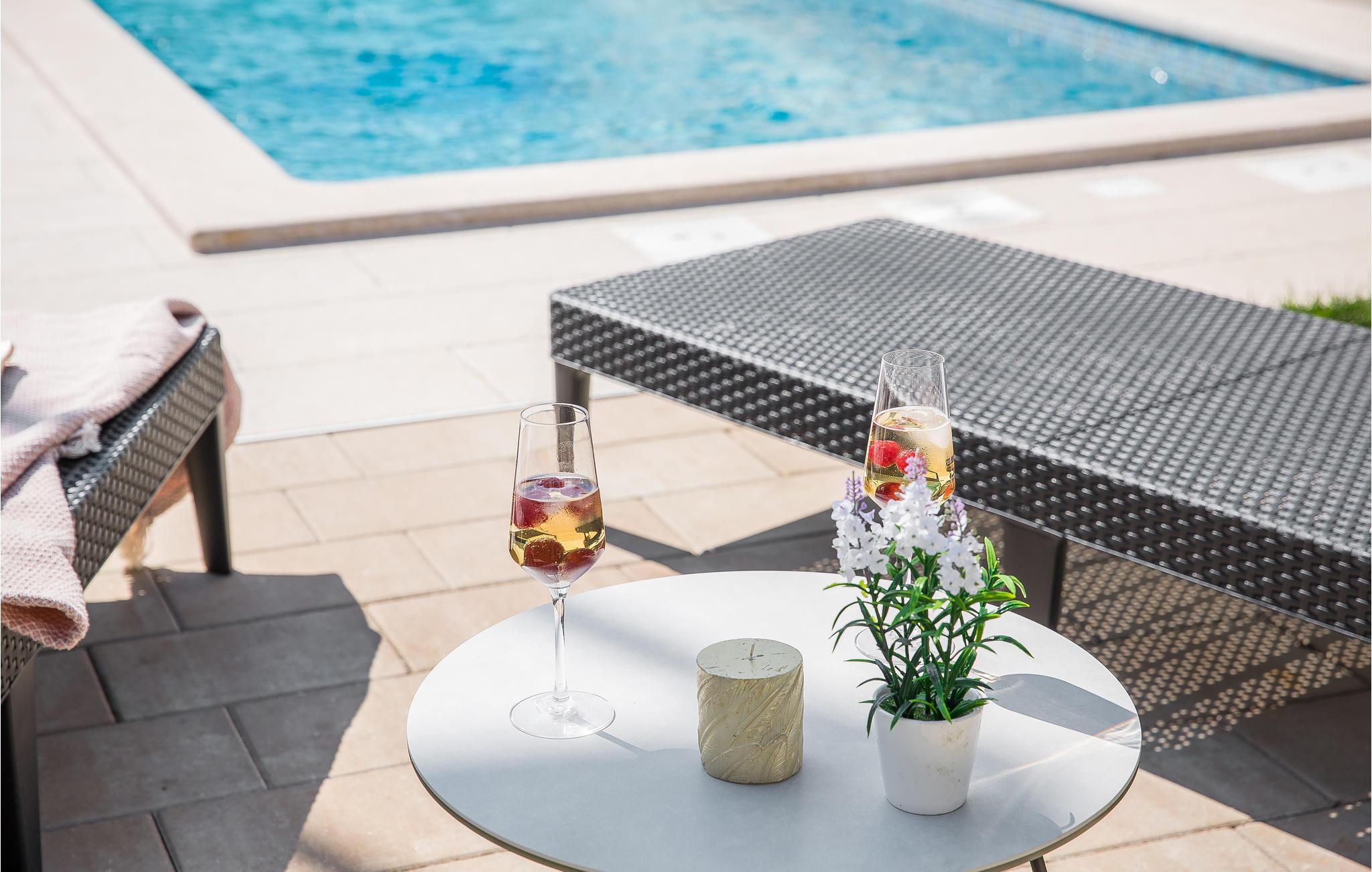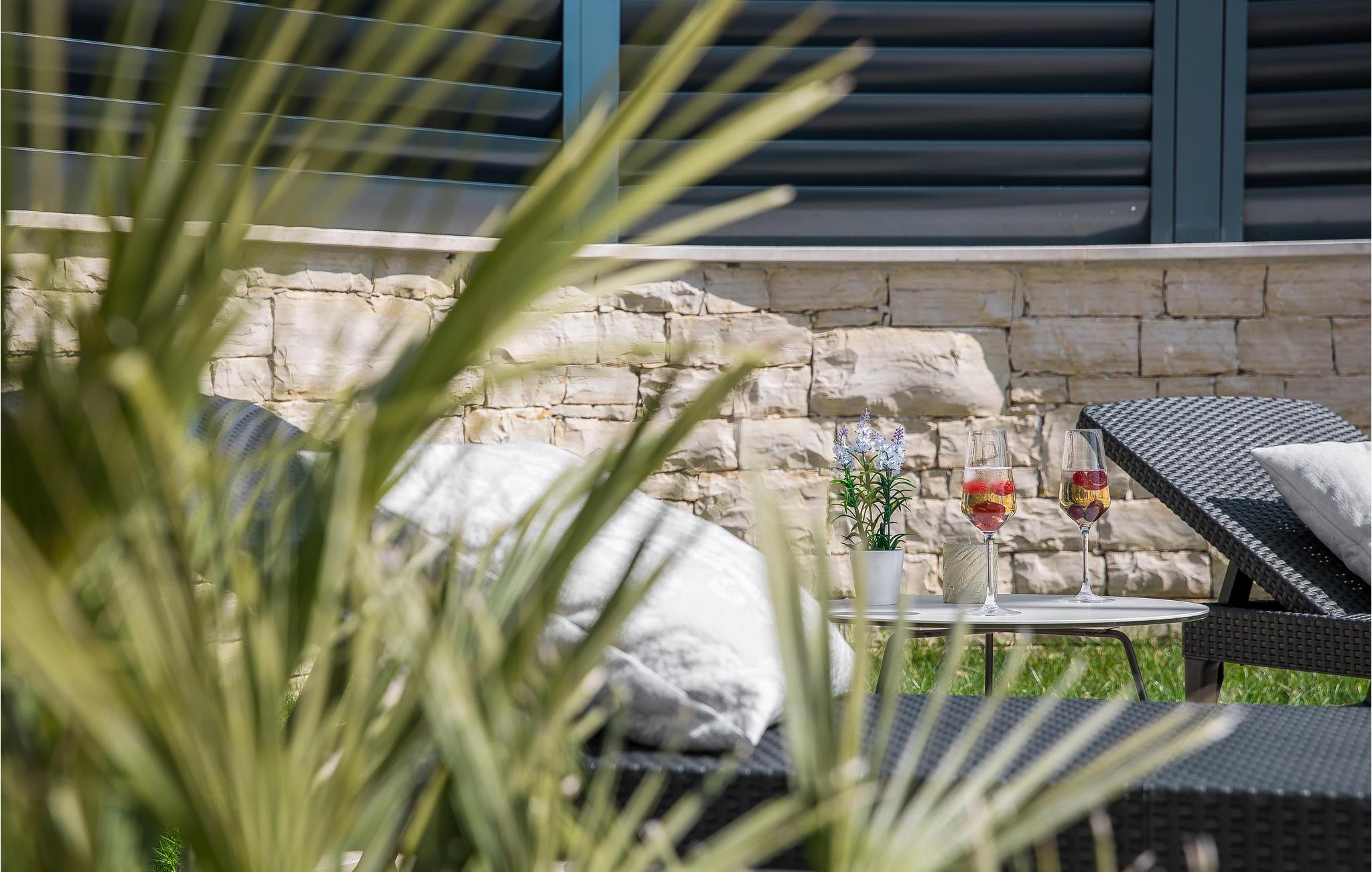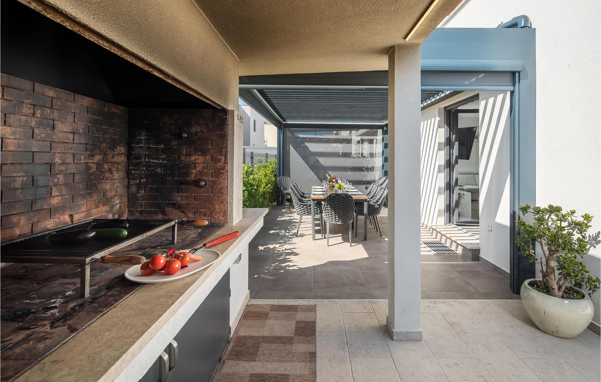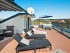 På taget er der en overdækket terrasse med jacuzzi og fænomenal havudsigt. I gården er der en swimmingpool med en overdækket terrasse og et sommerkøkken, hvor I kan trylle lækre retter frem.