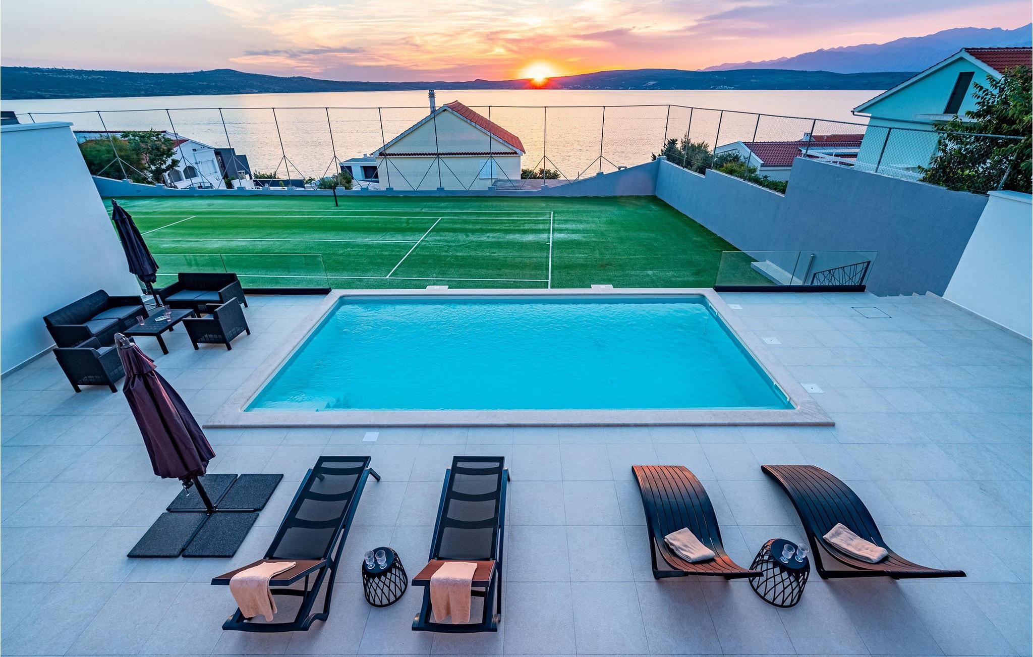 Server jeres morgenmad på terrassen, og snup en frisk dukkert i poolen. Nyd den storslåede havudsigt, lyt til bølgernes blide brusen, og find sammen til hyggelige grillaftener i værtshuset. Brug projektoren til en sommerfilmaften, spil tennis eller basketball, og lad børnene have det sjovt med PlayStation.