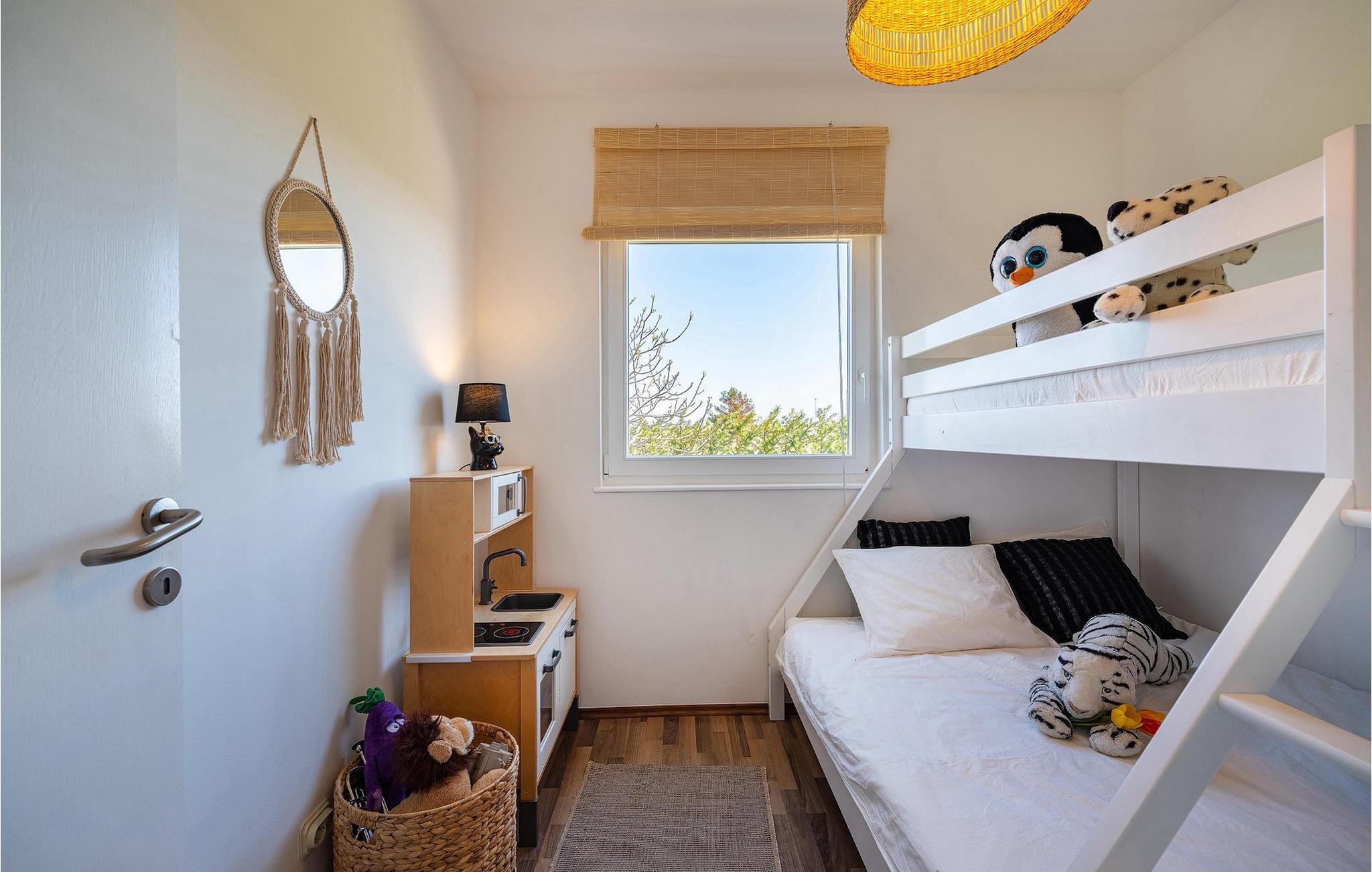 Villaen er unikt indrettet og møbleret og byder på 4 soveværelser i alt: 2 med dobbeltseng, et med 2 enkeltsenge og et med køjeseng.