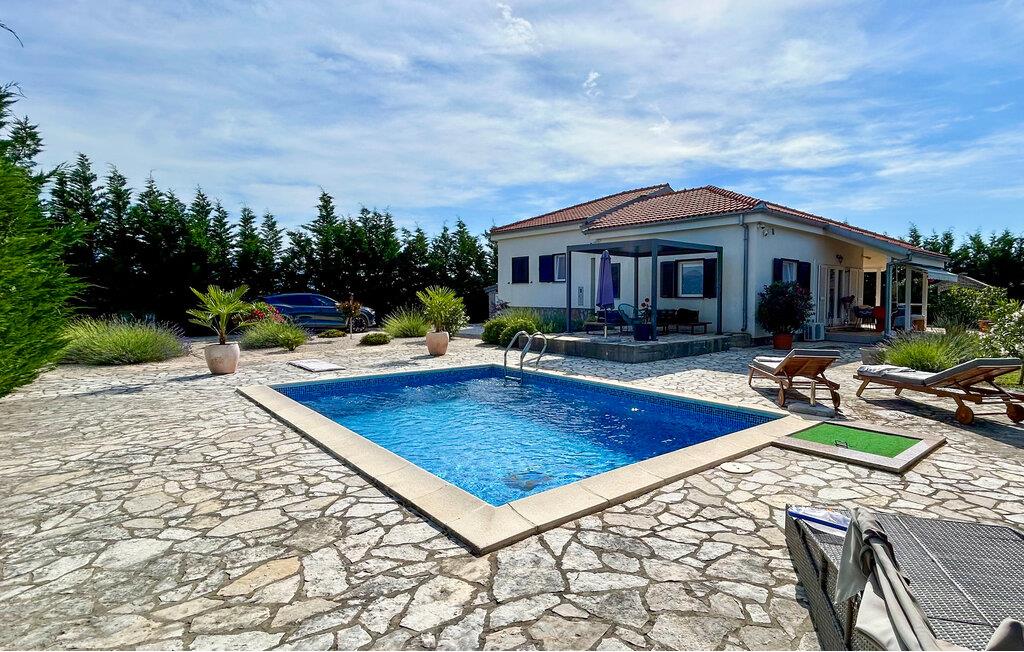 Denne smukke et-etagers villa ligger kun 3 km fra Novigrad havet og tilbyder en smuk panoramaudsigt over Velebit bjerget. Det er et sted, hvor havet og bjergene mødes, og vilde dalmatiske aromatiske urter giver en ekstra følelse af friskhed og fornøjelse.