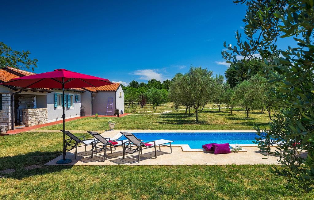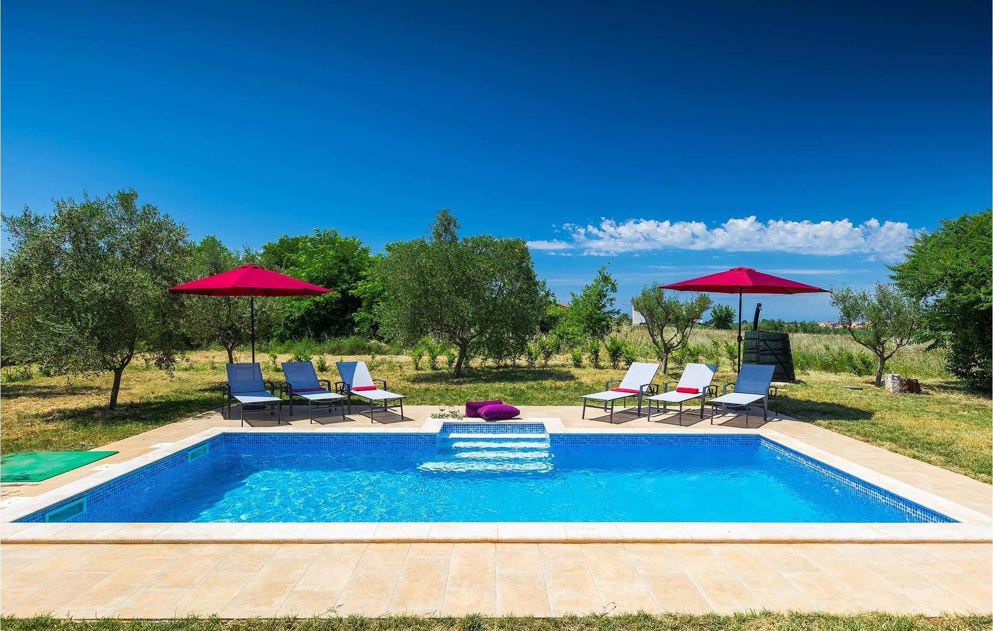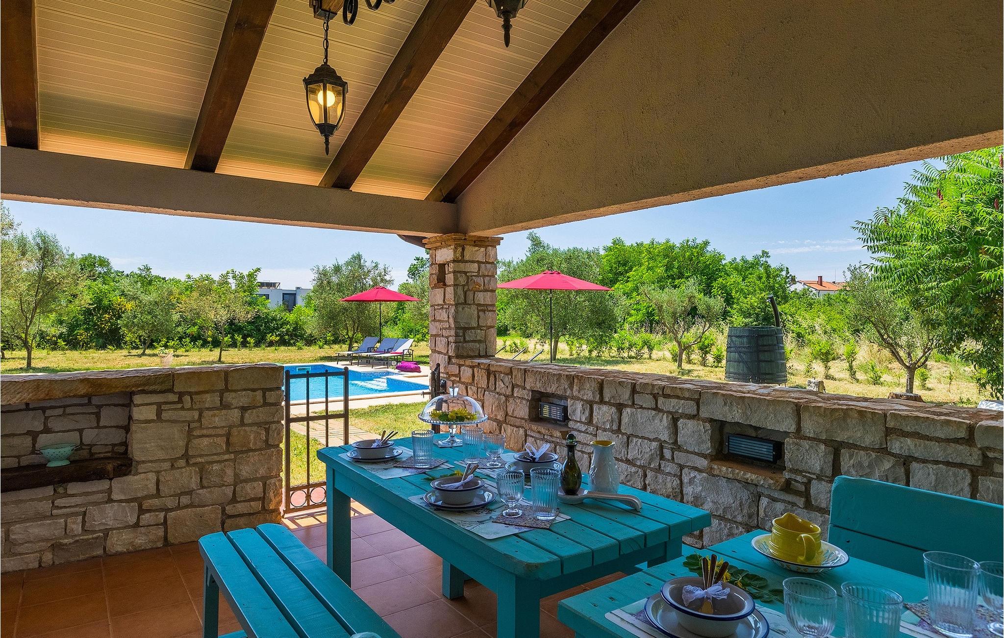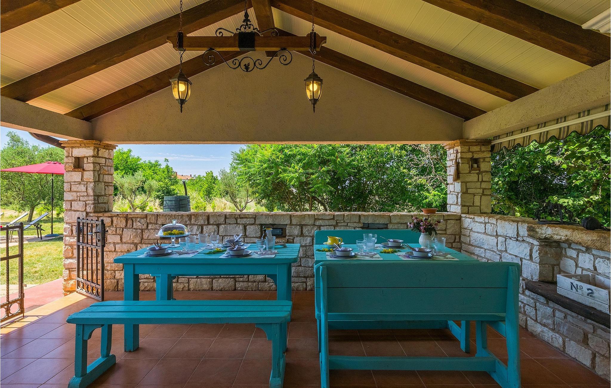 Den charmerende Villa Marco - Stancija Vinjeri ligger i den lille landsby Bužinija i Istrien. Den kan rumme op til otte personer og er ideel til en ferie med familie eller venner. Villaen består af opholdsstue, køkken og spiseplads, tre komfortable soveværelser med eget badeværelse og separat toilet og tilbyder alt hvad du behøver for en afslappende ferie. Det stilfulde interiør med antikke møbler vil fange dit øje med det samme. Udendørsområdet byder på en privat pool med liggestole, parasol og udendørs bruser - perfekt til en forfriskning på varme sommerdage. Her kan du nyde privatlivets fred! På den 40m2 overdækkede terrasse er der en grill med spiseplads. Dit kæledyr er også meget velkommen. En privat parkeringsplads og internetadgang er til din rådighed. Book Villa Marco - Stancija Vinjeri og tilbring uforglemmelige øjeblikke med dine kære og opdag Istriens skatte!Villa Marco - Stancija Vinieri ligger i den lille landsby Buzinija nær byen Novigrad i Istrien. Der vil du finde et udvalg af caféer, barer og restauranter, hvor du kan smage typiske lokale specialiteter. Oplev smukke strande med krystalklart vand. Vandlandet Istralandia ligger kun en kort køretur væk. Vi anbefaler en dagstur - sjov for hele familien er garanteret! Middelalderbyerne Motovun og Groznjan er nemme at nå og et besøg værd. I regionens hovedstad, Pula, finder du det fortryllende romerske amfiteater, hvor du kan deltage i mange filmbegivenheder men også kulturelle begivenheder og livekoncerter af verdensberømte kunstnere. Istrien byder på alt, hvad du kan ønske dig til en afslappende, men spændende ferie.