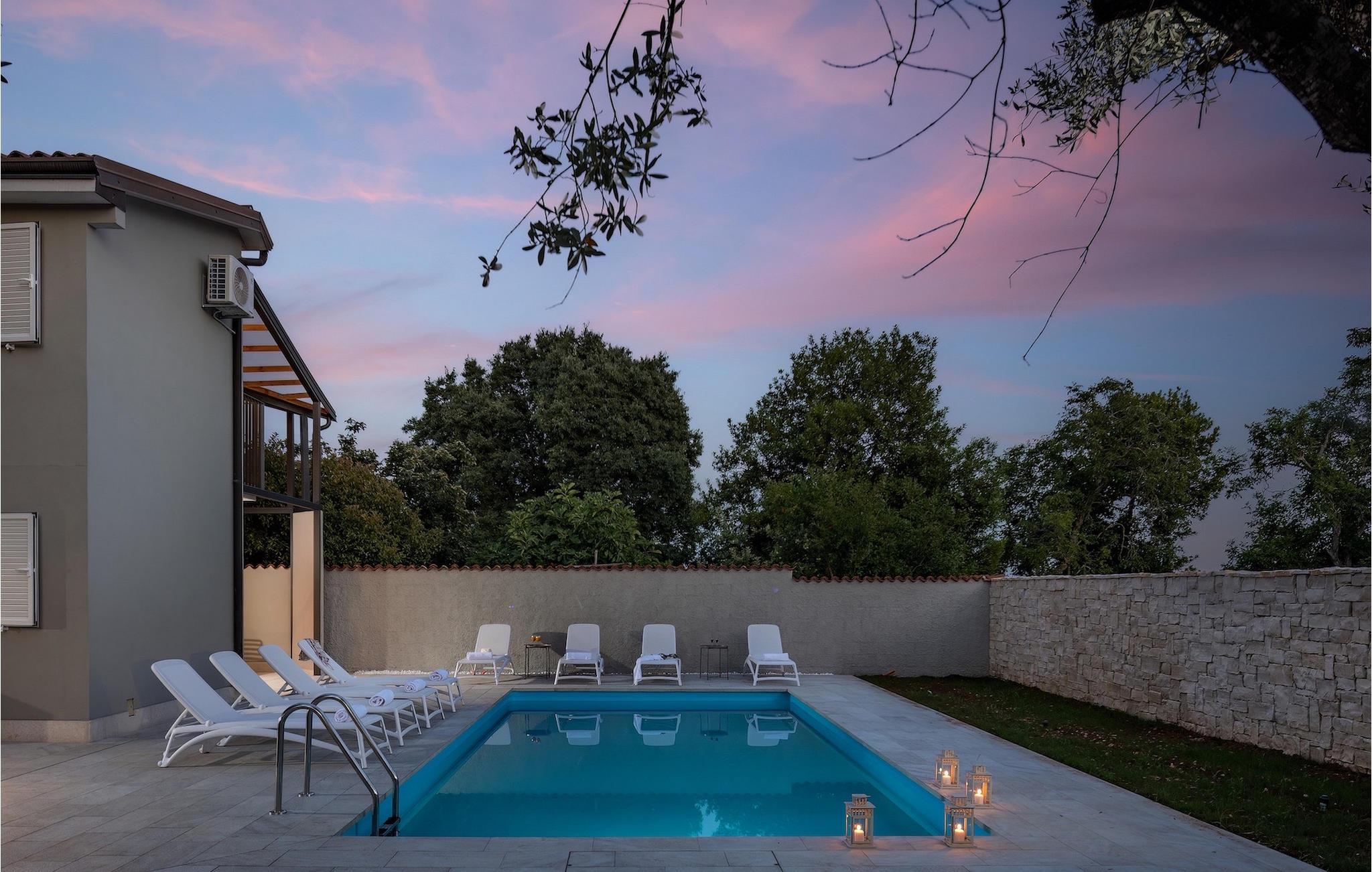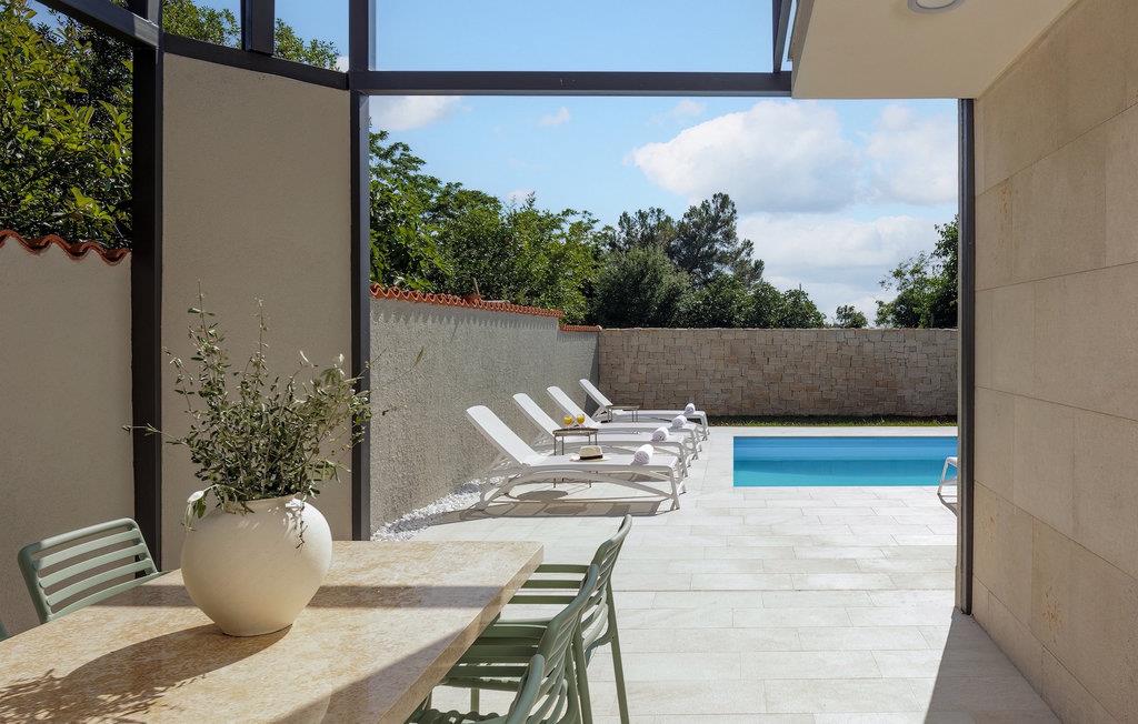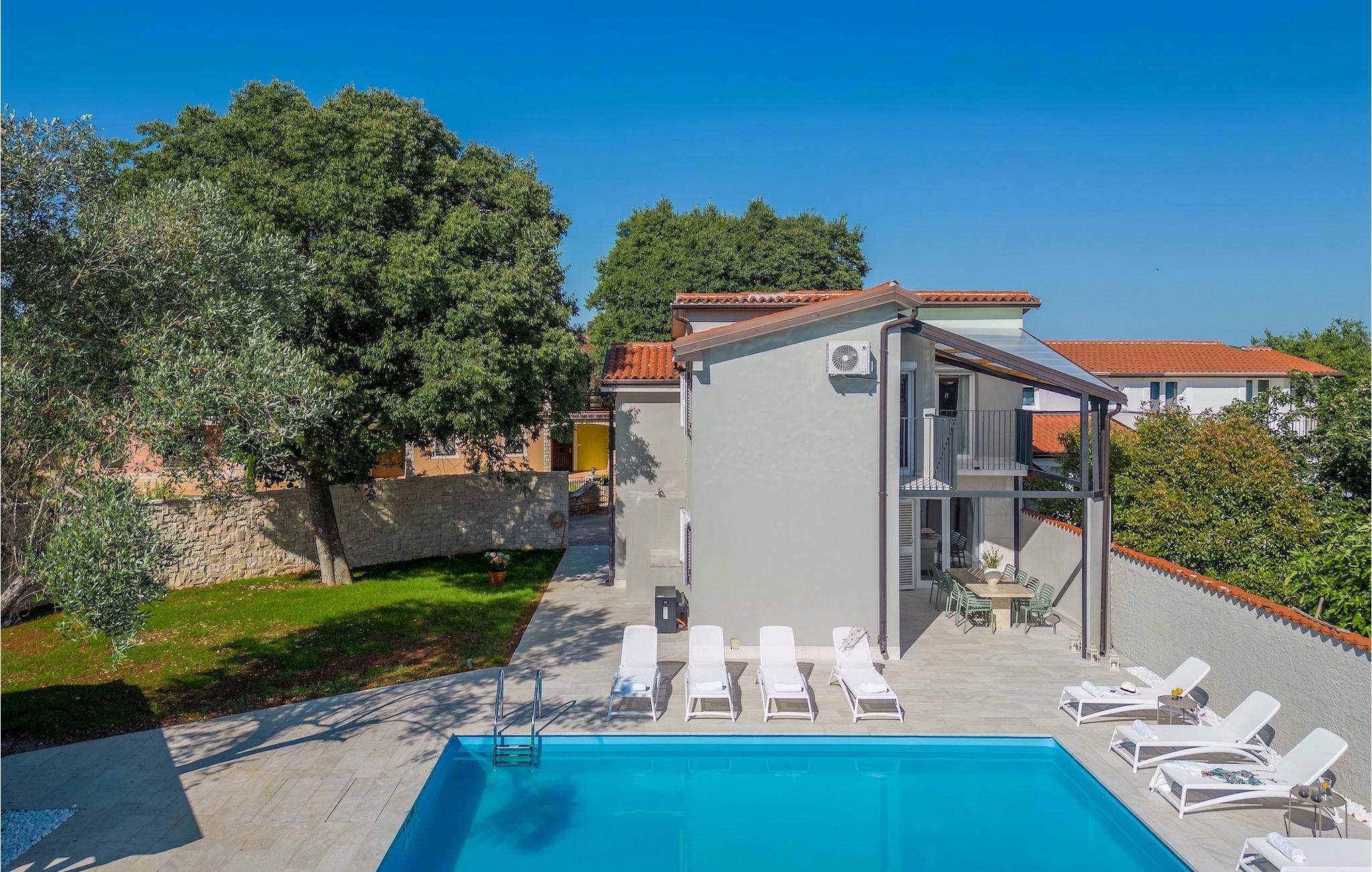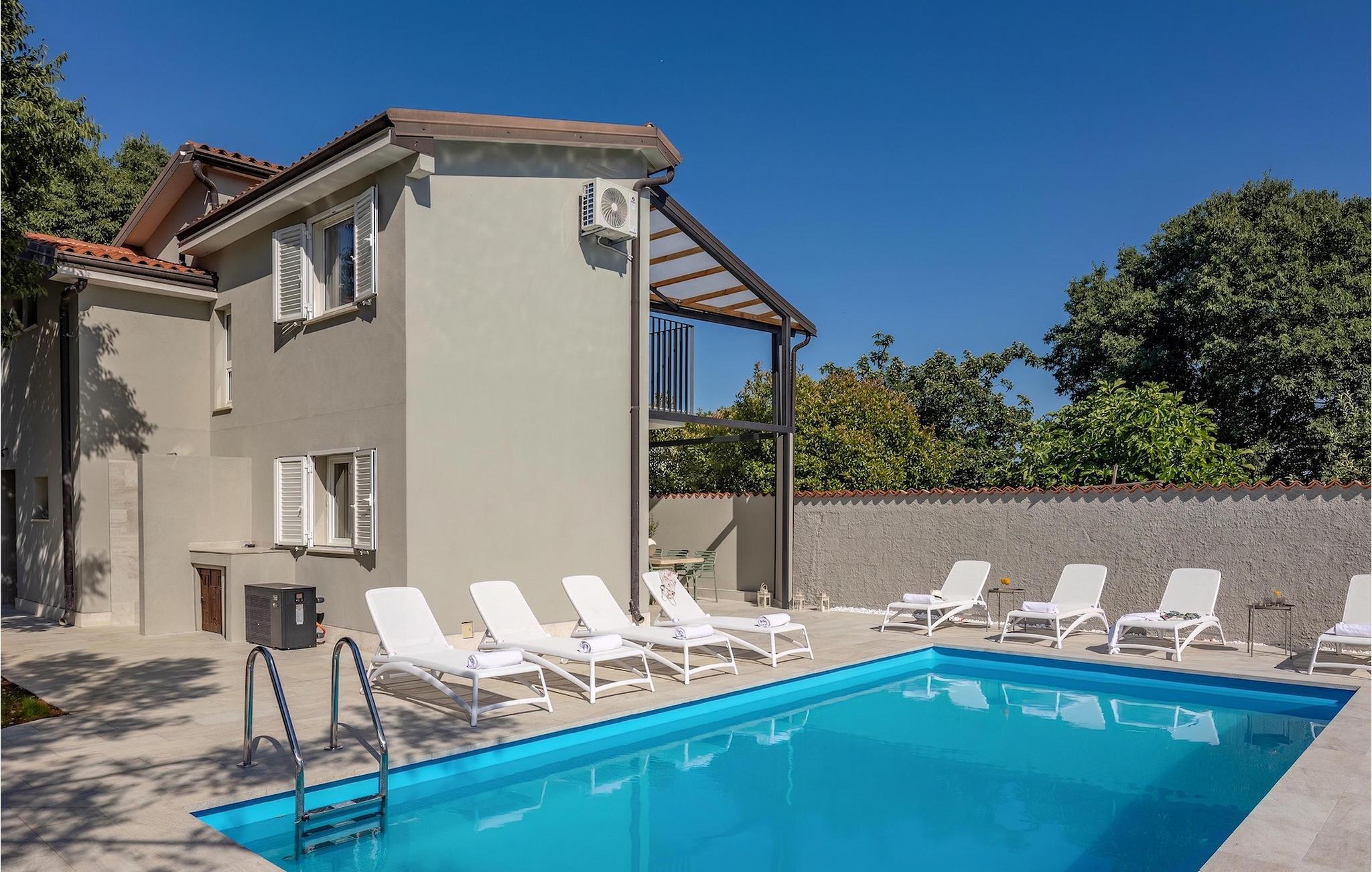 Velkommen til din egen oase af afslapning i Istrien! Denne fortryllende villa tilbyder dig en uforglemmelig ferie med en privat pool, der inviterer dig til at slappe af og køle af. Her kan du nyde solen, tage forfriskende svømmeture og skabe vidunderlige øjeblikke med familie og venner. Det rummelige udendørsområde inviterer dig til at slappe af, hvad enten du er på en af de komfortable liggestole eller i de hyggelige siddepladser i skyggen. Den private pool bliver midtpunktet i din ferie og giver et kærkomment pusterum på varme sommerdage. Derudover er der en overdækket grillplads og en spiseplads, perfekt til udendørs måltider. Inde i villaen finder du en stilfuld og behagelig atmosfære. Interiøret er omhyggeligt designet til at fremkalde en følelse af balance og afslapning. Kombinationen af neutrale farver skaber en rolig og sofistikeret atmosfære, hvor gæsterne kan føle sig godt tilpas og slappe af. I stueetagen af villaen finder du et fuldt udstyret køkken med spiseplads, en rummelig stue med udgang til terrassen, et soveværelse og et badeværelse. Ovenpå er der yderligere tre soveværelser, to badeværelser og to terrasser med en vidunderlig udsigt over omgivelserne. Villa Pietra Cattunara tilbyder dig en oplevelse uden sidestykke og er det ideelle sted for din drømmeferie. Oplev skønheden i Istrien, udforsk maleriske byer og strande, og vend tilbage til din personlige oase hver dag for at slappe af og nyde kvalitetstid med dine kære. Brtonigla er en charmerende landsby beliggende i hjertet af Istrien, en malerisk region i Kroatien. Kendt for sit fredfyldte landskab, rige historie og fremragende lokale produkter, tilbyder Brtonigla besøgende et fredeligt tilflugtssted væk fra de travle folkemængder. Omgivet af bølgende bakker og vinmarker er Brtonigla et paradis for naturelskere og udendørsentusiaster. Området er kendt for sit frodige landskab, naturskønne vandre- og cykelstier og en betagende udsigt over Adriaterhavet. At udforske landskabet giver besøgende mulighed for at fordybe sig i skønheden i Istrien, mens de nyder den friske luft og ro. Med sit idylliske landskab, historiske charme og kulinariske lækkerier tilbyder Brtonigla en virkelig uforglemmelig oplevelse. Uanset om du leder efter afslapning, kulturel udforskning eller kulinariske eventyr, har denne istriske perle noget at tilbyde alle. Temperaturen i den opvarmede swimmingpool er afhængig af eksterne faktorer, herunder vejrforhold, og som sådan kan temperaturen på vandet ikke garanteres.