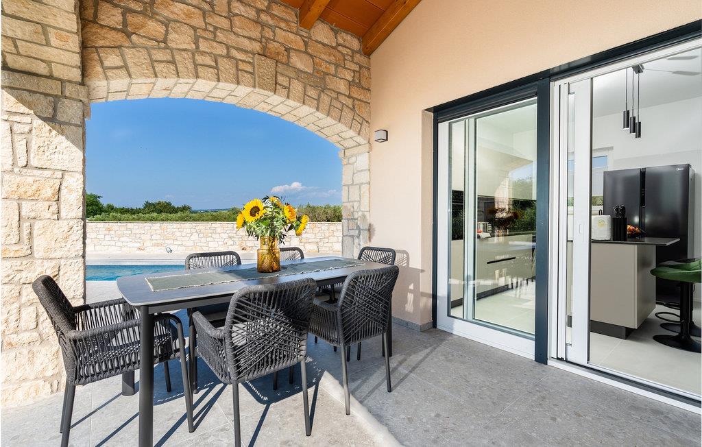 Fredelige omgivelser, nærhed til havet, en smuk privat pool, moderne interiør - alt dette og meget mere tilbydes af Villa Passiflora i nærheden af Novigrad. Villaen har 3 soveværelser med plads til op til 6 gæster, og er velegnet til en perfekt ferie med familie eller en gruppe venner, hvor dine kæledyr også er velkomne. Du vil uden tvivl tilbringe det meste af din tid i den smukke udendørs pool, hvor der er liggestole til dem, der nyder at slappe af i det varme solskin. Test dine færdigheder i at tilberede traditionelle istriske opskrifter på grillen, som villaen tilbyder. Nyd tilberedte måltider med dine kære i den udendørs overdækkede spisestue foran villaen. Villaens interiør vil glæde dig med sine nøje udvalgte detaljer og moderne design. I stueetagen af villaen er der et åbent rum med et veludstyret køkken til at tilberede lækre måltider, en komfortabel stue og en spisestue. Villaen har tre soveværelser med private badeværelser. Værelserne er udstyret med dobbeltsenge, aircondition og tv. Et soveværelse og et separat toilet er placeret i villaens stueetage, mens yderligere to soveværelser er placeret på første sal i denne smukke villa. Du kan tilbringe morgenen på balkonen på første sal i villaen. Nyd en kop kaffe omgivet af den unikke istriske atmosfære. Gå ikke glip af en afslappende ferie og find en kur mod stress og træthed hos Villa Passiflora. Villa Passiflora er beliggende nær havet i omgivelserne af smukke Novigrad. Novigrad, engang en fredelig fiskerby, er et attraktivt turistmål med charmen fra en typisk middelhavsby. En væsentlig del af Novigrads gastronomiske tilbud er bestemt smagningen af istriske produkter såsom olivenolie, honning, prosciutto og istriske trøfler, og i sommermånederne vil du have en masse sjov i denne lille by, hvis du besøger nogle af de kulturelle begivenheder . Udover at nyde de smukke strande kan du opleve Novigrads smukke gamle centrum, de romanske kirker og besøge talrige museer og gallerier. Udforsk de omkringliggende byer Umag og Porec. I Umag finder du venetianske huse og barokkirker, og i Porec vil du blive henrykt over Eufrasiusbasilikaen med byzantinske motiver. For alle elskere af sportsaktiviteter byder den rige natur i Istrien på en række cykel- og vandrestier og vandattraktioner, såsom Aquapark Istralandia. Temperaturen i den opvarmede swimmingpool er afhængig af eksterne faktorer, herunder vejrforhold, og som sådan kan temperaturen på vandet ikke garanteres.