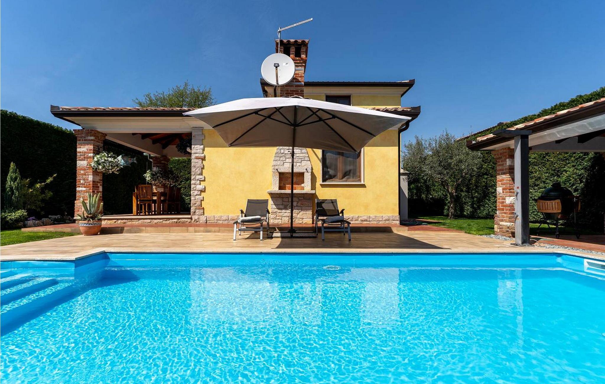 Villa Eva ligger nær Novigrad, kun 300 meter fra havet. Novigrad er en lille og rolig fiskerlandsby. I årenes løb er det blevet en attraktiv destination for turister, der regelmæssigt vender tilbage. Som en af de mest populære destinationer har Novigrad bevaret sin charme som en lille fiskerlandsby og den intime atmosfære, der er typisk for middelhavsbyer. Villa Eva tilbyder en swimmingpool, liggestole, et udendørs spisebord, et overdækket sommerkøkken med pejs, en sauna, to cykler og flere parkeringspladser i sin fuldt indhegnede og omhyggeligt vedligeholdte have. Stranden og butikkerne ligger kun få minutters gang væk, mens vandlandet ligger 8 km væk. Byen Novigrad med mange turistfaciliteter, restauranter, taverner, caféer, butikker, souvenirbutikker, historiske seværdigheder ligger kun 4 km væk. Villa Eva i Karigador består af en stueetage med stue, spisestue, fuldt udstyret køkken, et soveværelse og et badeværelse. Ovenpå er der to soveværelser med fælles balkon og badeværelse. Bemærk venligst, at denne ejendom ikke accepterer ungdomsgrupper eller polterabends. En ungdomsgruppe på denne ejendom er en gruppe bestående af personer på 26 år eller derunder. Book ikke denne ejendom, hvis du er en ungdomsgruppe eller et polterabend, da din reservation vil blive afvist efter booking, hvilket kan omfatte ved ankomst til ejendommen eller under dit ophold, og du vil ikke blive refunderet.