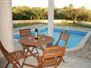 Stueetage: (Stue(dobbeltsovesofa, Fjernsyn(kabel, fladskærm, parabol)), Køkken(spisebord, elkedel, brødrister, komfur, kaffemaskine(kaffetragt), ovn, mikrobølgeovn, opvaskemaskine , køle-fryseskab), badeværelse(bruser, håndvask, toilet)) På 1. etage: (soveværelse(tilgængelig via et værelse)(enkeltseng), Soveværelse med badeværelse(dobbeltseng, badekar med bruser, håndvask, toilet, balkon), Soveværelse med badeværelse(dobbeltseng, badekar med bruser, håndvask, toilet)) patio, baggård, havemøbler, solstole, grill, parkering, swimmingpool(privat)