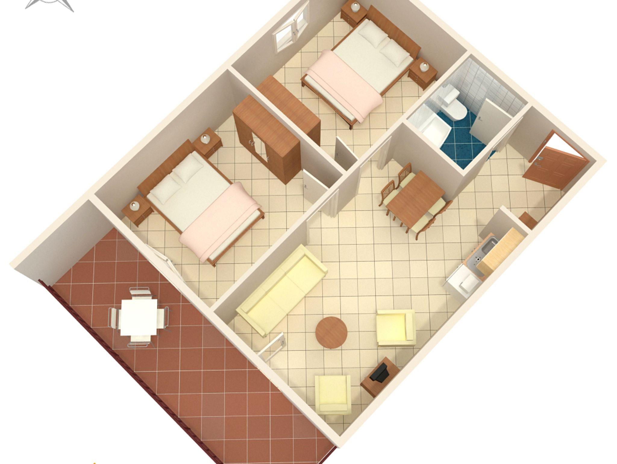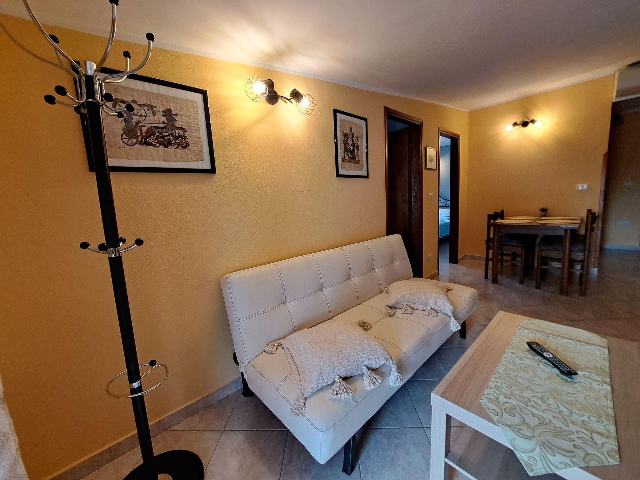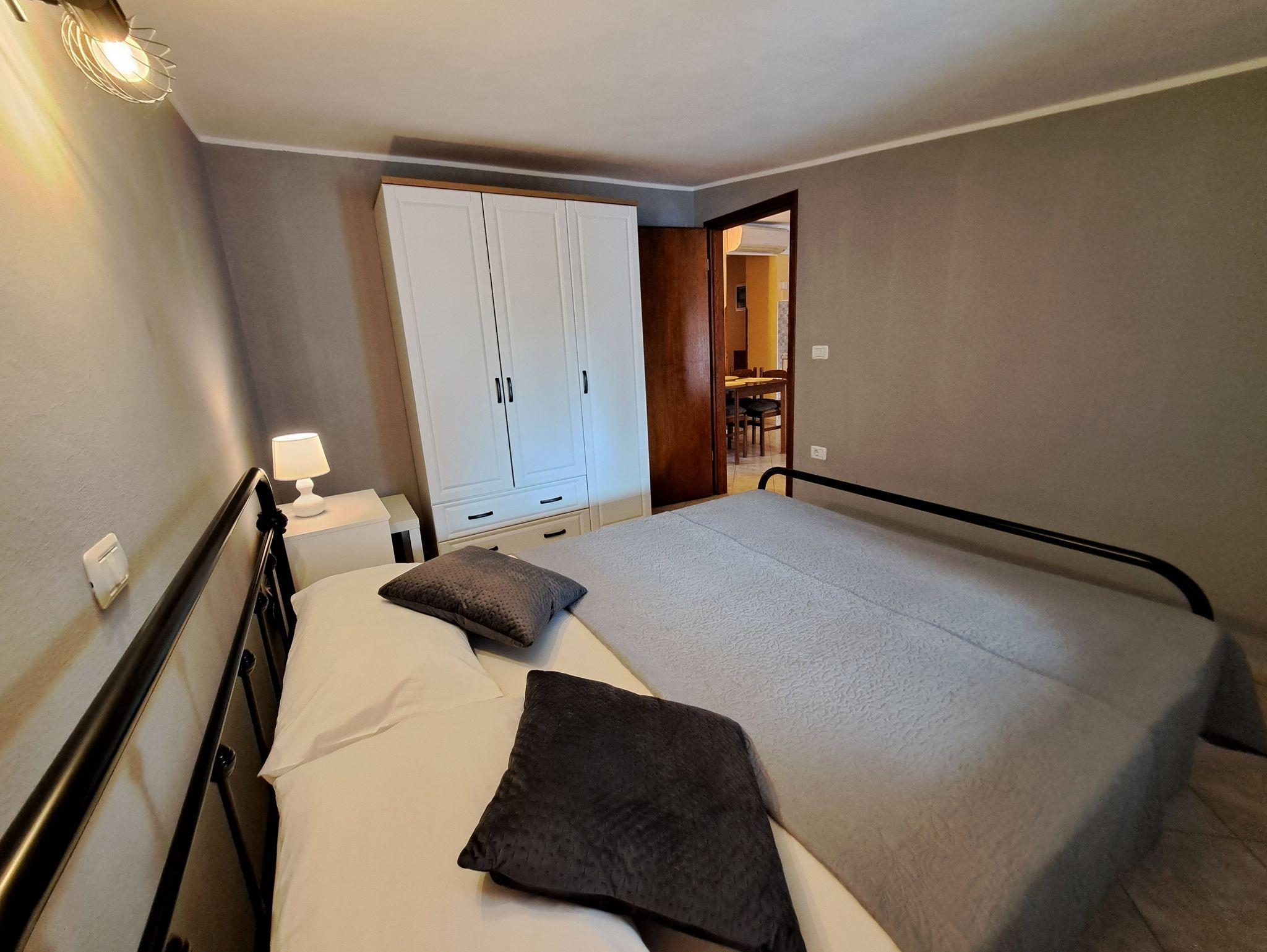 Ferienwohnung bietet Platz für 4 Gäste. Die Betten sind in Schlafzimmern, die es 2 gibt, innerhalb einer Gesamtfläche von 44m2, angeordnet. Die Gäste haben eine eigene Terrasse zur Verfügung, auf der sie in warmen Sommernächten genießen können. IM PREIS INBEGRIFFEN: Kurtaxe, Endreinigung, Klimatisierung, Parkplatz, Internet, Kinderbett, Bügeleisen, Bügelbrett, Föhn, Sonnenschirm. VERBINDLICHE ZUSÄTZLICHE KOSTEN: Aufzahlung für Kurzaufenthalte (prozentualer Zuschlag pro Nächtigungsanzahl: 30% - 1, 20% - 2, 10% - 3). UNVERBINDLICHE ZUSÄTZLICHE KOSTEN: Wäschewaschen (5,00 € Waschen), Fahrrad (25,00 € täglich (pro Stück)). Die Verfügbarkeit zusätzlicher Dienstleistungen in Ihrem reservierten Termin und die Preise derselben (falls nicht aufgeführt) müssen im Voraus überprüft werden. Zusätzliche Dienstleistungen die in der Zahlungsaufforderung nicht aufgeführt sind werden direkt beim Vermieter bezahlt, angenommen der Gast nutzt auch diese. Ermäßigung auf den Grundpreis: Gratistag 14=13 (bei einem Aufenthalt von 14 Tagen oder mehr erhalten Sie einen Gratistag für den Aufenthalt bis 31.12.26).
