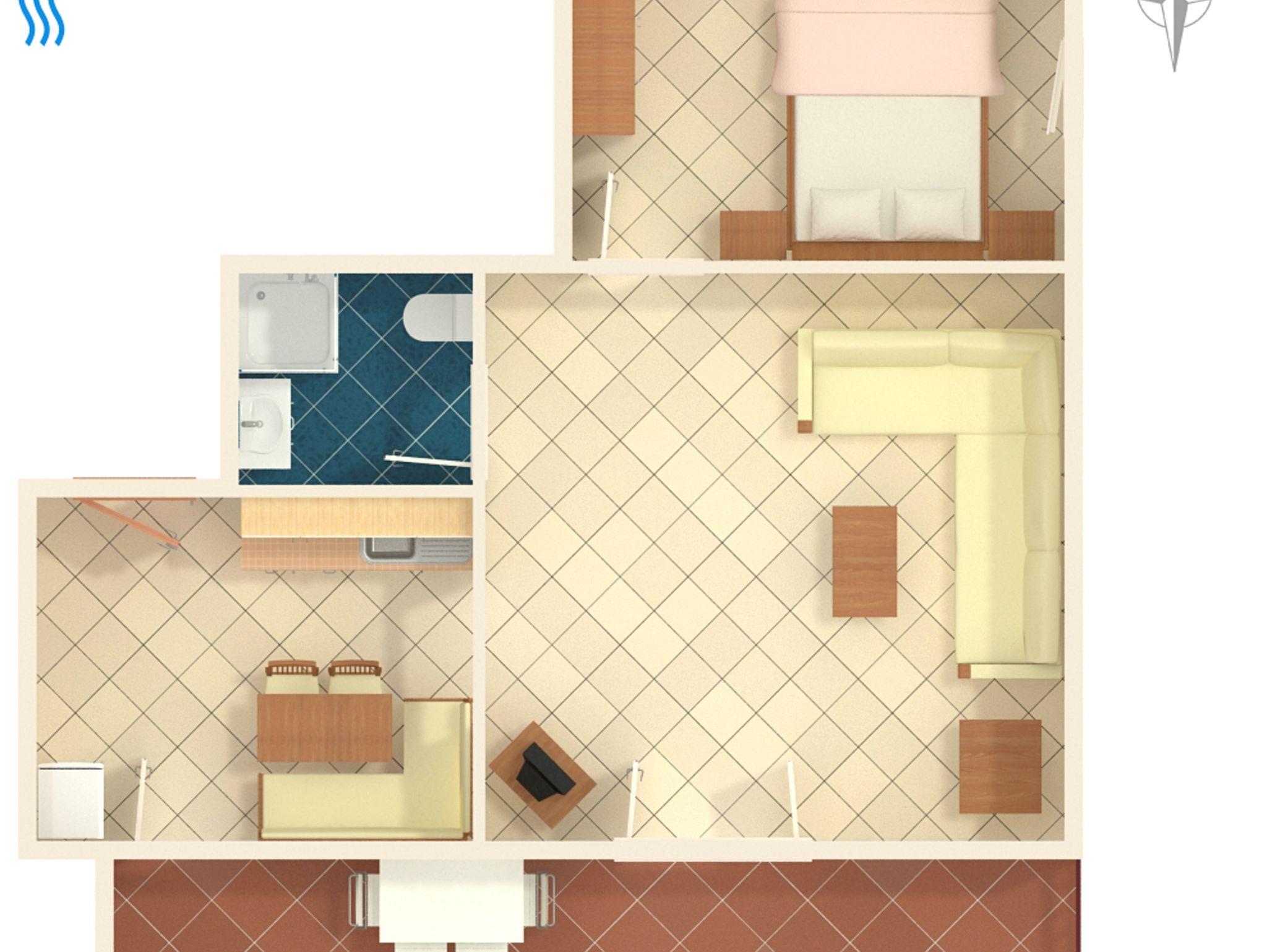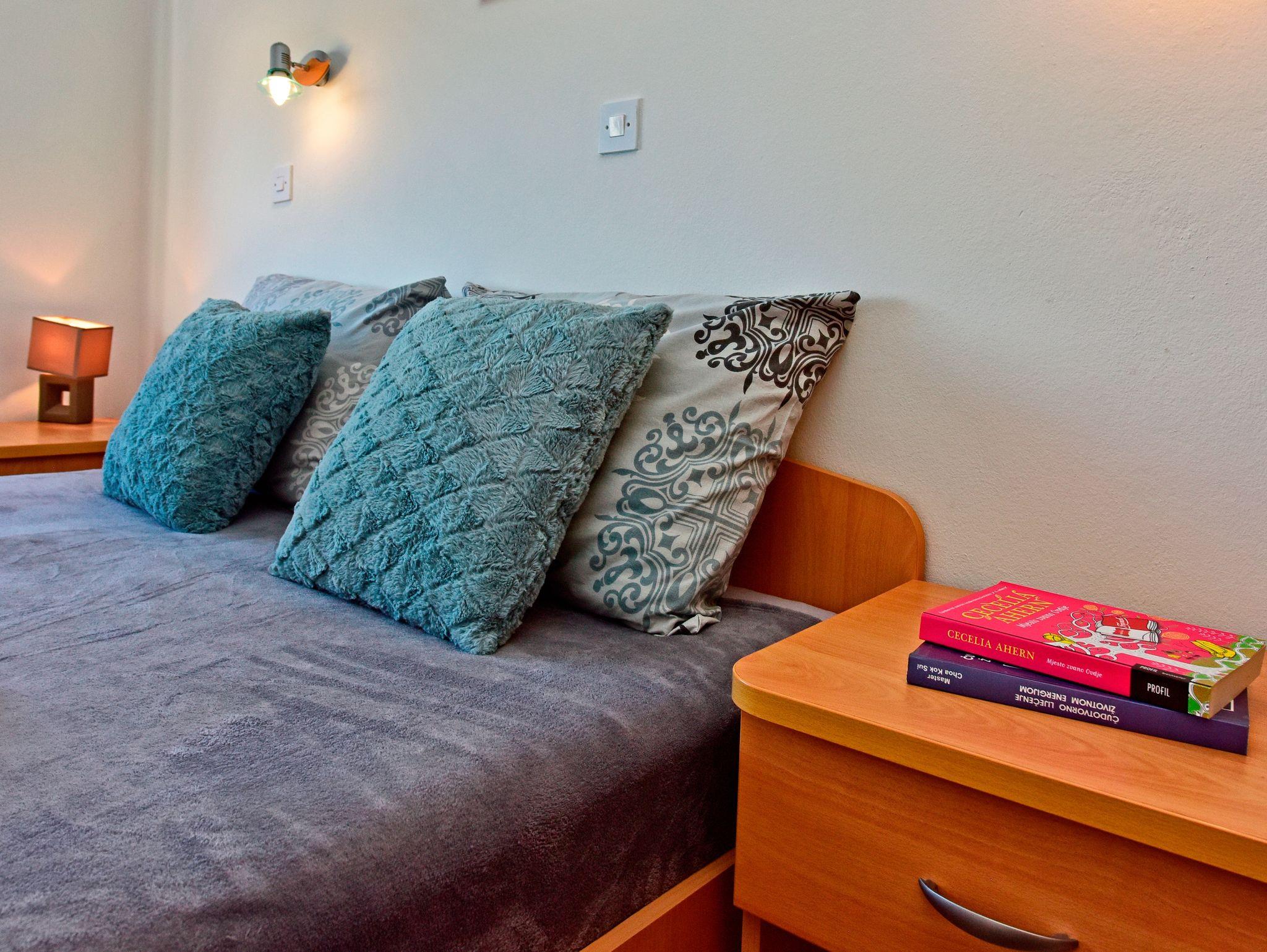 Ferienwohnung bietet Platz für 4 Gäste. Die Betten sind in Schlafzimmern, die es 1 gibt, und in Wohnzimmer, innerhalb einer Gesamtfläche von 43m2, angeordnet. Die Gäste haben eine eigene Terrasse zur Verfügung, auf der sie in warmen Sommernächten genießen können. Es ist erlaubt, Speisen auf dem Gemeinschafts-Grill vorzubereiten. Während ihres Aufenthalts können Gäste das gemeinsam zur Nutzung stehende Schwimmbad benutzen. In der gebuchten Unterkunftseinheit zahlt man am Ort ein Depositum ( der Preis ist an der Internetseite angeführt ). IM PREIS INBEGRIFFEN: Kurtaxe, Endreinigung, Pool, Parkplatz, Internet, Sonnenschirm. VERBINDLICHE ZUSÄTZLICHE KOSTEN: Kaution (100,00 € Einmalzahlung), Aufzahlung für Kurzaufenthalte (prozentualer Zuschlag pro Nächtigungsanzahl: 30% - 1, 20% - 2, 10% - 3). UNVERBINDLICHE ZUSÄTZLICHE KOSTEN: Klimatisierung (10,00 € pro Nacht). Die Verfügbarkeit zusätzlicher Dienstleistungen in Ihrem reservierten Termin und die Preise derselben (falls nicht aufgeführt) müssen im Voraus überprüft werden. Zusätzliche Dienstleistungen die in der Zahlungsaufforderung nicht aufgeführt sind werden direkt beim Vermieter bezahlt, angenommen der Gast nutzt auch diese.