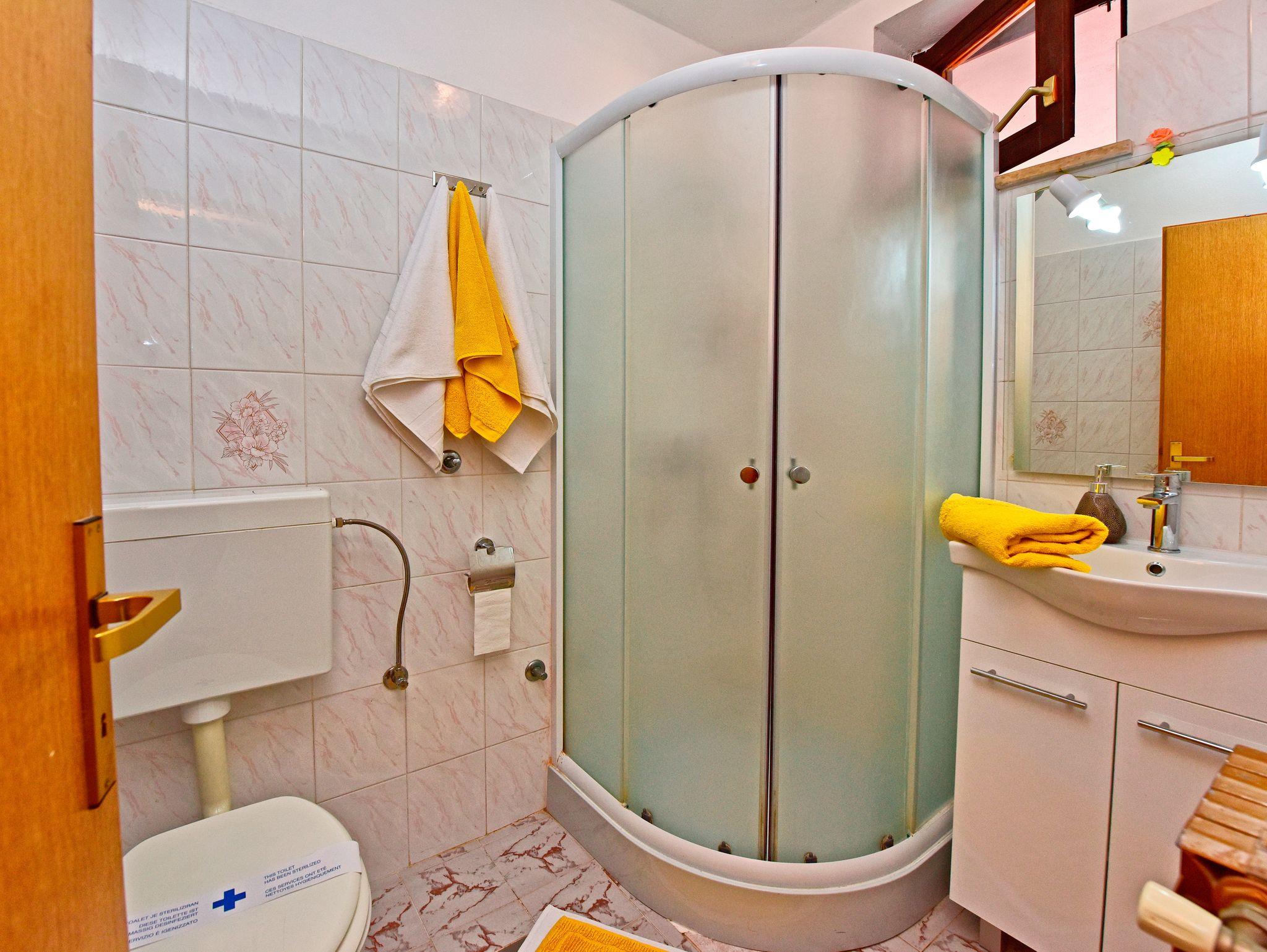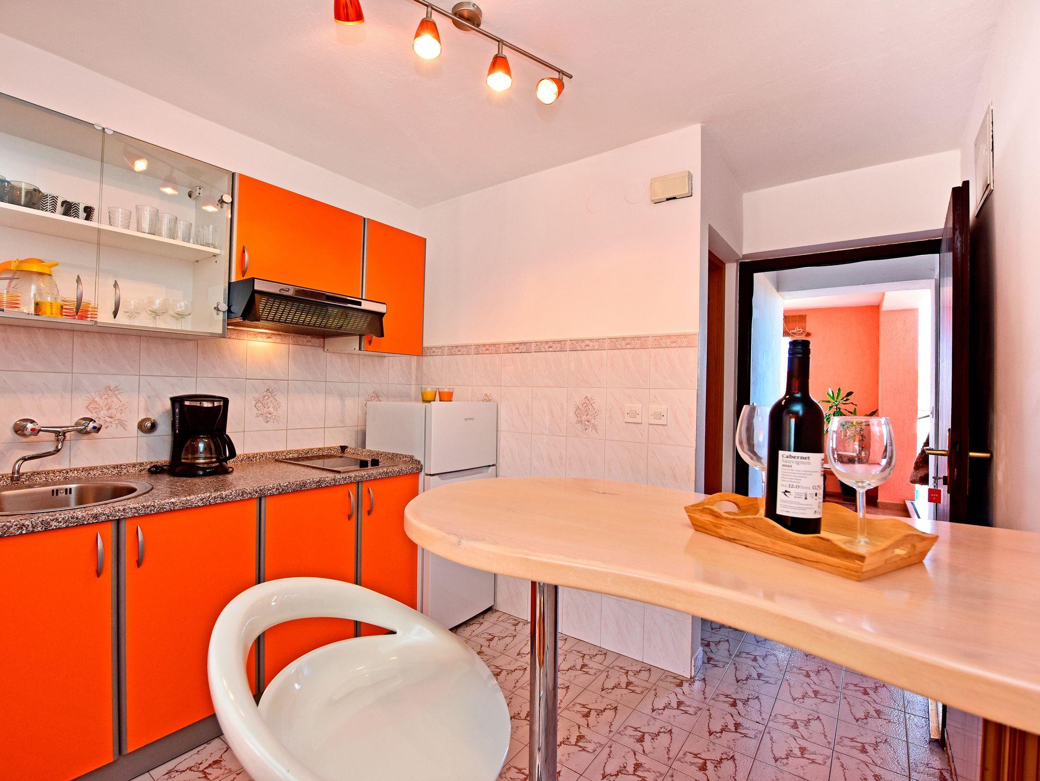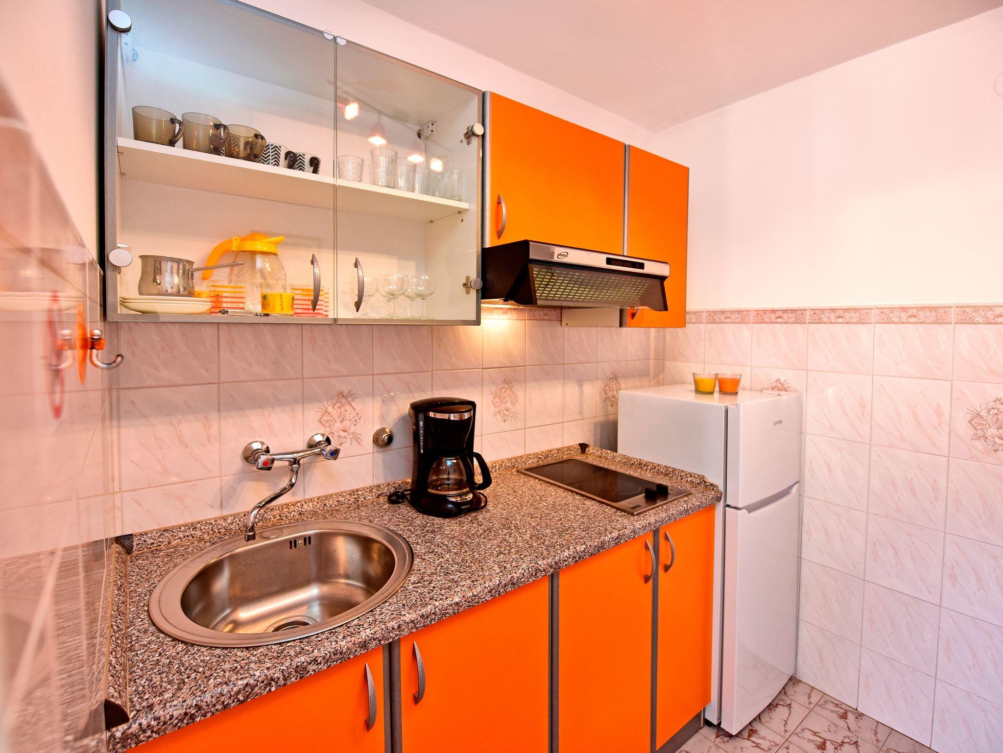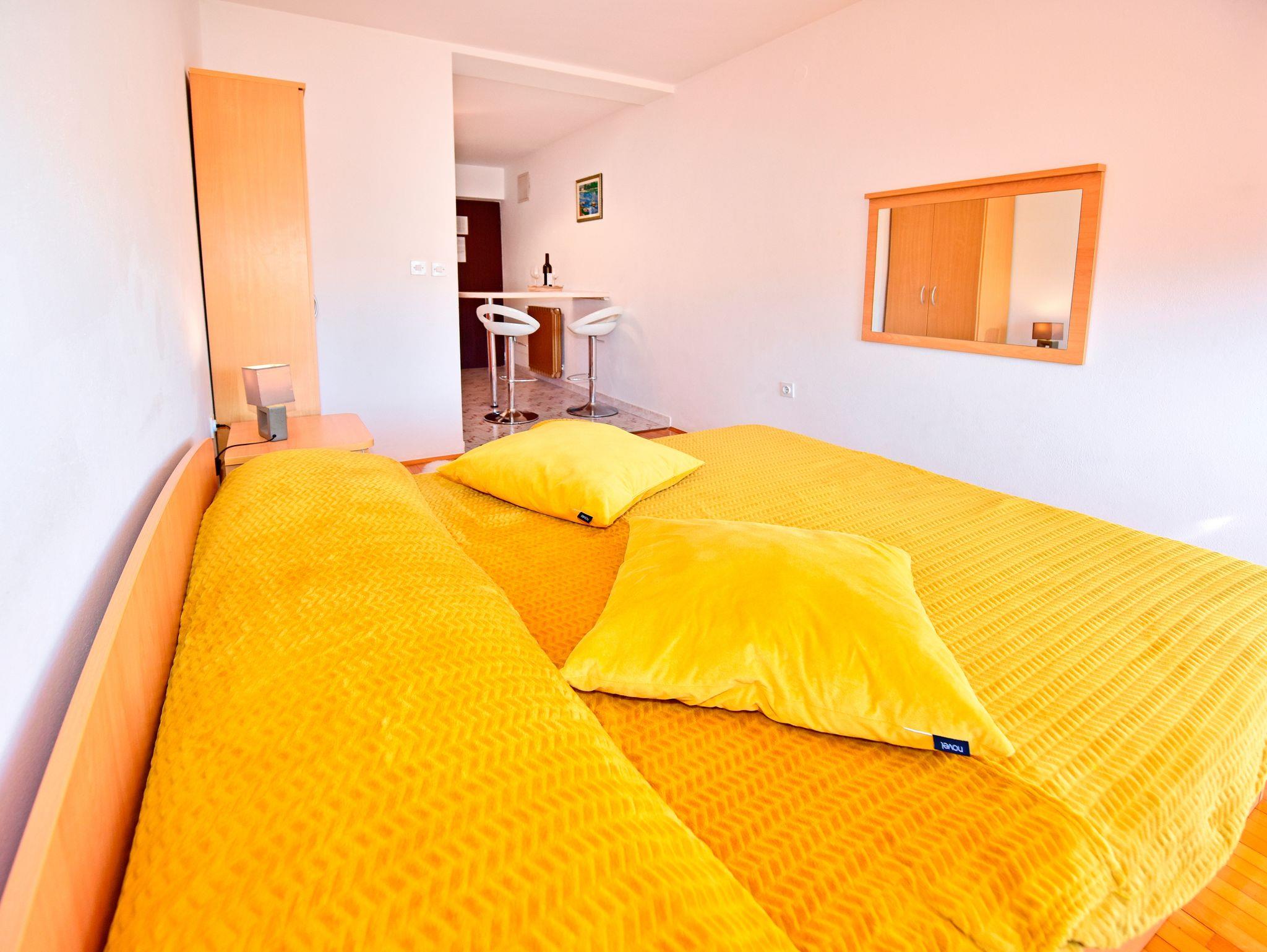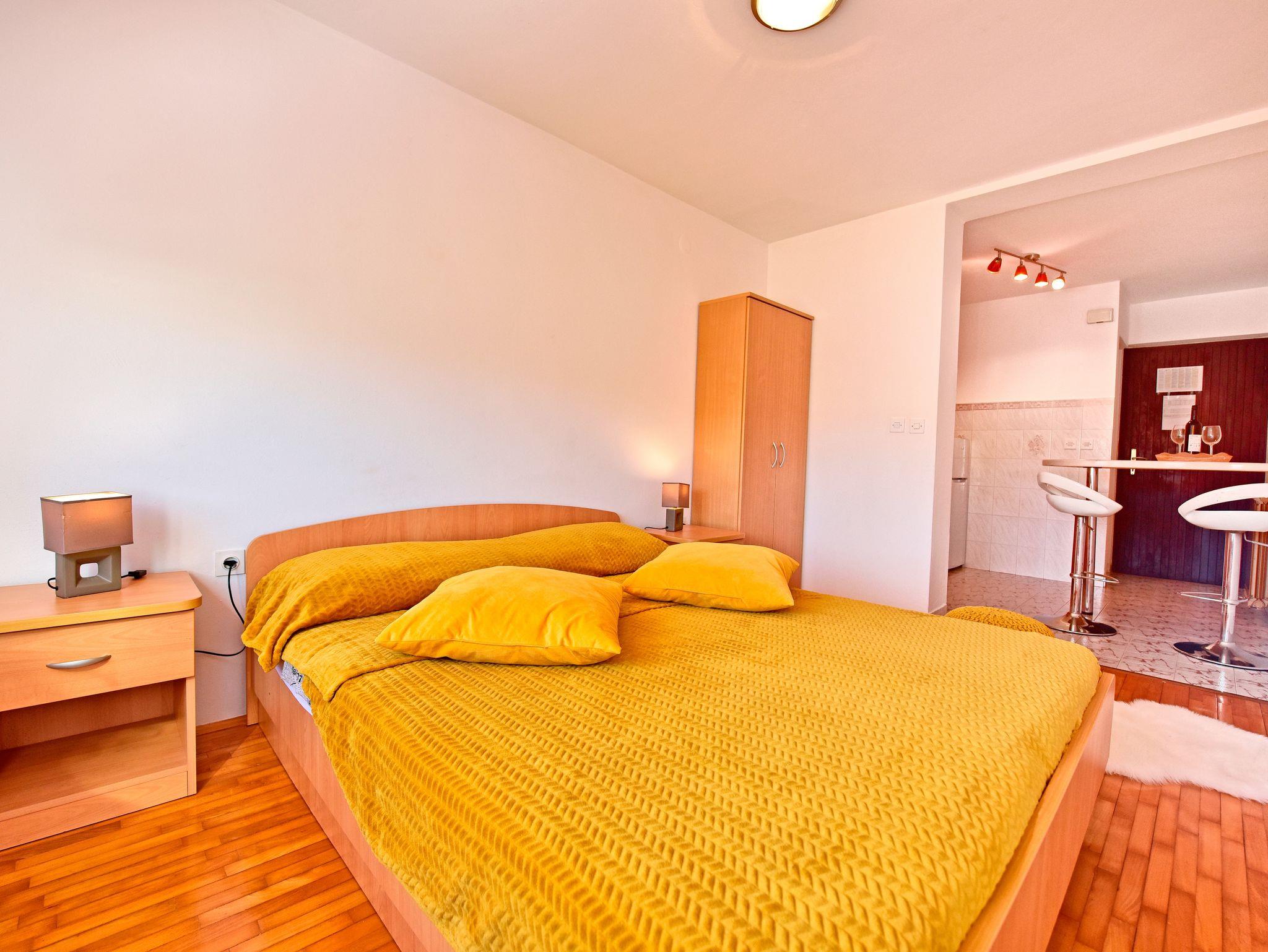 Studio bietet Platz für 2 Gäste. Die Betten sind in Schlafzimmern, die es 1 gibt, innerhalb einer Gesamtfläche von 19m2, angeordnet. Die Gäste haben eine eigene Terrasse zur Verfügung, auf der sie in warmen Sommernächten genießen können. Es ist erlaubt, Speisen auf dem Gemeinschafts-Grill vorzubereiten. Während ihres Aufenthalts können Gäste das gemeinsam zur Nutzung stehende Schwimmbad benutzen. In der gebuchten Unterkunftseinheit zahlt man am Ort ein Depositum ( der Preis ist an der Internetseite angeführt ). IM PREIS INBEGRIFFEN: Kurtaxe, Endreinigung, Pool, Parkplatz, Internet, Sonnenschirm. VERBINDLICHE ZUSÄTZLICHE KOSTEN: Kaution (100,00 € Einmalzahlung), Aufzahlung für Kurzaufenthalte (prozentualer Zuschlag pro Nächtigungsanzahl: 30% - 1, 20% - 2, 10% - 3). UNVERBINDLICHE ZUSÄTZLICHE KOSTEN: Klimatisierung (10,00 € pro Nacht). Die Verfügbarkeit zusätzlicher Dienstleistungen in Ihrem reservierten Termin und die Preise derselben (falls nicht aufgeführt) müssen im Voraus überprüft werden. Zusätzliche Dienstleistungen die in der Zahlungsaufforderung nicht aufgeführt sind werden direkt beim Vermieter bezahlt, angenommen der Gast nutzt auch diese.