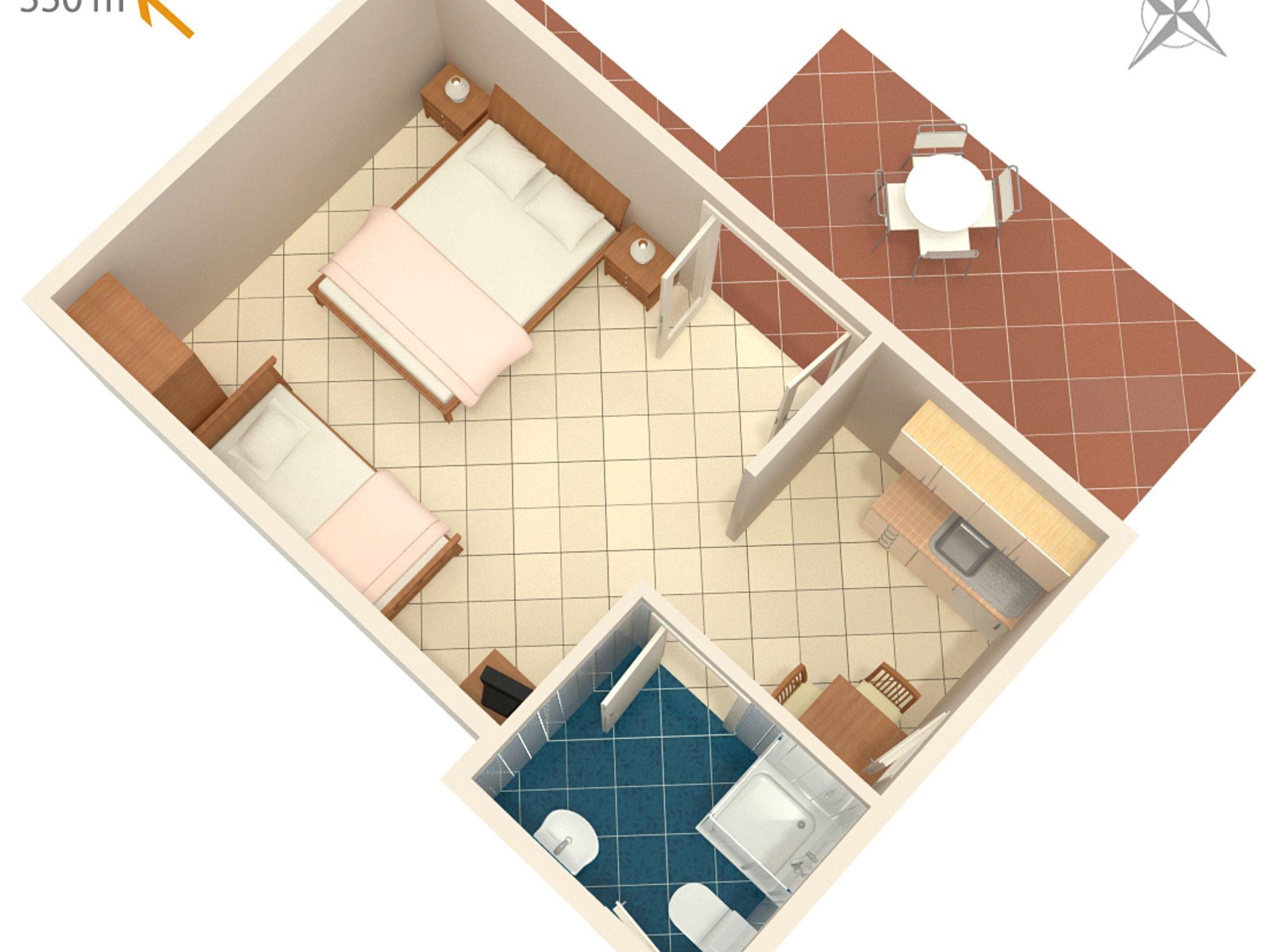Studio bietet Platz für 3 Gäste. Die Betten sind in Schlafzimmern, die es 1 gibt, innerhalb einer Gesamtfläche von 19m2, angeordnet. Die Gäste haben eine eigene Terrasse zur Verfügung, auf der sie in warmen Sommernächten genießen können. Es ist erlaubt, Speisen auf dem Gemeinschafts-Grill vorzubereiten. IM PREIS INBEGRIFFEN: Kurtaxe, Endreinigung, Klimatisierung, Parkplatz, Internet, Kinderbett, Bügeleisen, Bügelbrett, Föhn. VERBINDLICHE ZUSÄTZLICHE KOSTEN: Aufzahlung für Kurzaufenthalte (prozentualer Zuschlag pro Nächtigungsanzahl: 30% - 1, 20% - 2, 10% - 3). UNVERBINDLICHE ZUSÄTZLICHE KOSTEN: Wäschewaschen (5,00 € Waschen). Die Verfügbarkeit zusätzlicher Dienstleistungen in Ihrem reservierten Termin und die Preise derselben (falls nicht aufgeführt) müssen im Voraus überprüft werden. Zusätzliche Dienstleistungen die in der Zahlungsaufforderung nicht aufgeführt sind werden direkt beim Vermieter bezahlt, angenommen der Gast nutzt auch diese. Ermäßigung auf den Grundpreis: Gratistag 14=13 (bei einem Aufenthalt von 14 Tagen oder mehr erhalten Sie einen Gratistag für den Aufenthalt bis 31.12.26).