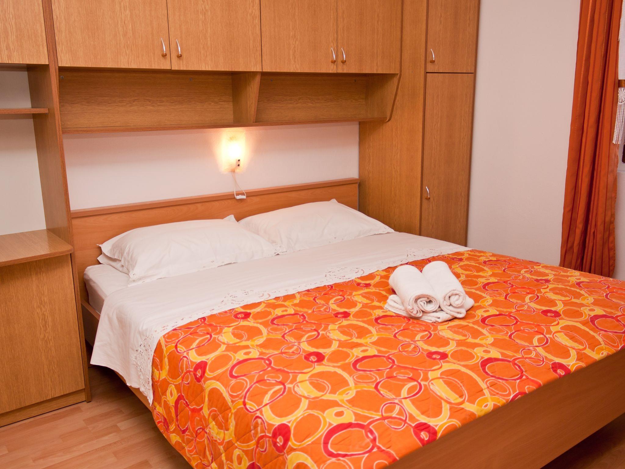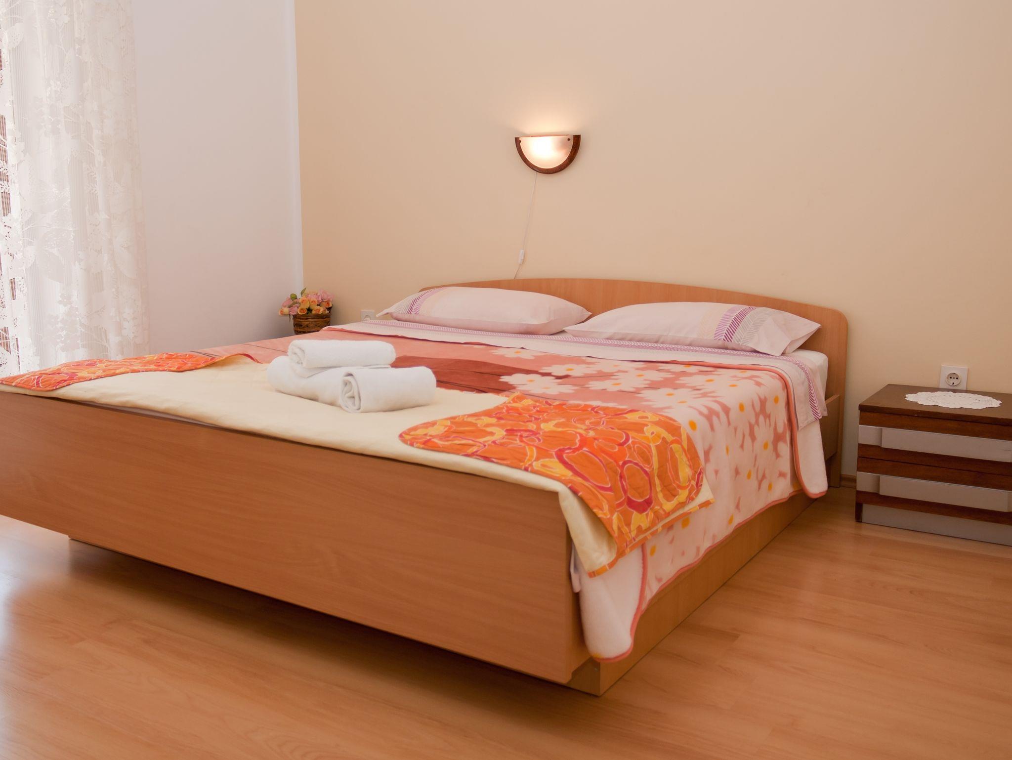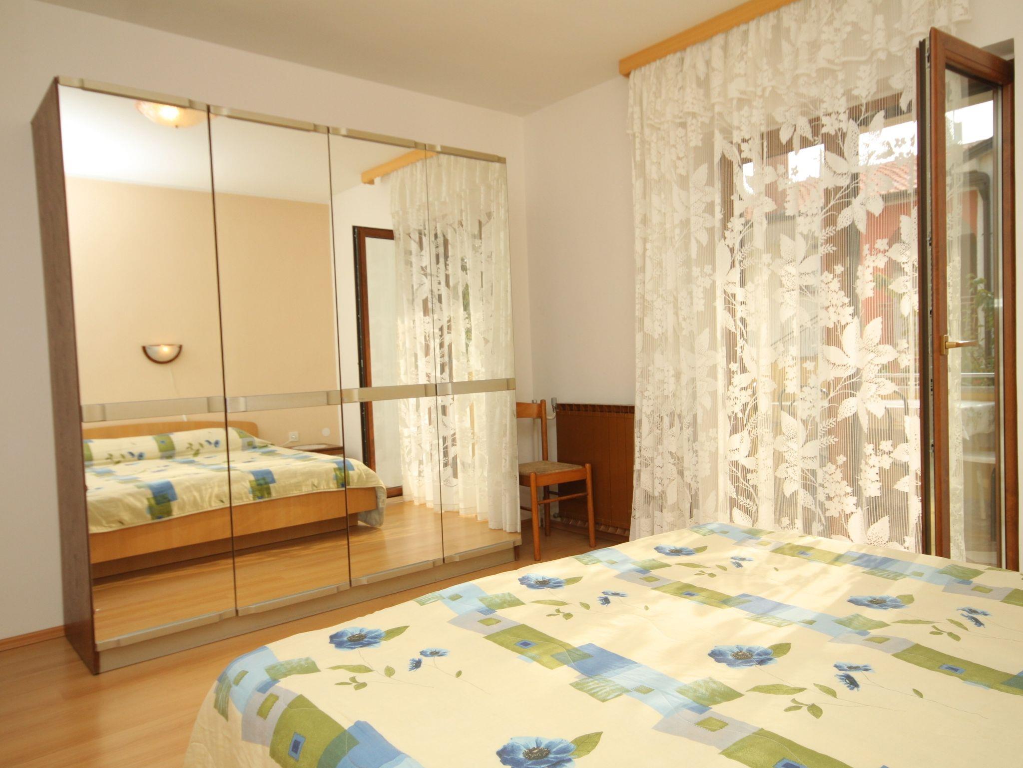 Ferienwohnung bietet Platz für 4 Gäste. Die Betten sind in Schlafzimmern, die es 2 gibt, innerhalb einer Gesamtfläche von 34m2, angeordnet. Die Gäste haben eine eigene Terrasse zur Verfügung, auf der sie in warmen Sommernächten genießen können. Es ist erlaubt, Speisen auf dem Gemeinschafts-Grill vorzubereiten. IM PREIS INBEGRIFFEN: Kurtaxe, Endreinigung, Parkplatz, Internet, Kinderbett, Bügeleisen, Bügelbrett, Föhn. VERBINDLICHE ZUSÄTZLICHE KOSTEN: Aufzahlung für Kurzaufenthalte (prozentualer Zuschlag pro Nächtigungsanzahl: 30% - 1, 20% - 2, 10% - 3). UNVERBINDLICHE ZUSÄTZLICHE KOSTEN: Klimatisierung (5,00 € pro Nacht), Wäschewaschen (5,00 € Waschen), Zusatzbett (10,00 € pro Nacht). Die Verfügbarkeit zusätzlicher Dienstleistungen in Ihrem reservierten Termin und die Preise derselben (falls nicht aufgeführt) müssen im Voraus überprüft werden. Zusätzliche Dienstleistungen die in der Zahlungsaufforderung nicht aufgeführt sind werden direkt beim Vermieter bezahlt, angenommen der Gast nutzt auch diese.