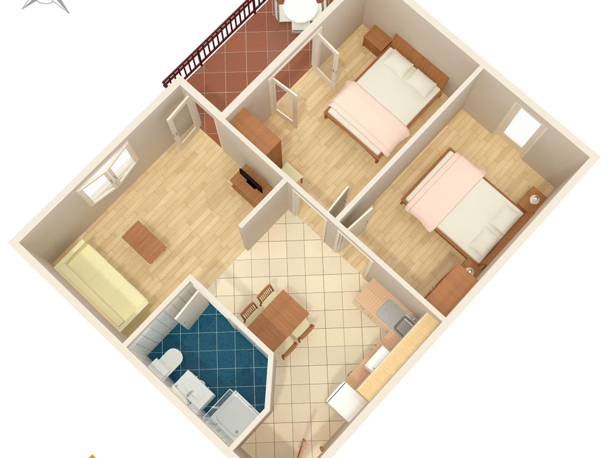 Ferienwohnung bietet Platz für 4 Gäste. Die Betten sind in Schlafzimmern, die es 2 gibt, innerhalb einer Gesamtfläche von 42m2, angeordnet. Die Gäste haben einen eigenen Balkon zur Verfügung, auf der sie in warmen Sommernächten genießen können. Es ist erlaubt, Speisen auf dem Gemeinschafts-Grill vorzubereiten. Während ihres Aufenthalts können Gäste das gemeinsam zur Nutzung stehende Schwimmbad benutzen. In der gebuchten Unterkunftseinheit zahlt man am Ort ein Depositum ( der Preis ist an der Internetseite angeführt ). IM PREIS INBEGRIFFEN: Kurtaxe, Endreinigung, Pool, Parkplatz, Internet, Sonnenschirm. VERBINDLICHE ZUSÄTZLICHE KOSTEN: Kaution (100,00 € Einmalzahlung), Aufzahlung für Kurzaufenthalte (prozentualer Zuschlag pro Nächtigungsanzahl: 30% - 1, 20% - 2, 10% - 3). UNVERBINDLICHE ZUSÄTZLICHE KOSTEN: Klimatisierung (10,00 € pro Nacht), Zusatzbett (15,00 € pro Nacht). Die Verfügbarkeit zusätzlicher Dienstleistungen in Ihrem reservierten Termin und die Preise derselben (falls nicht aufgeführt) müssen im Voraus überprüft werden. Zusätzliche Dienstleistungen die in der Zahlungsaufforderung nicht aufgeführt sind werden direkt beim Vermieter bezahlt, angenommen der Gast nutzt auch diese.