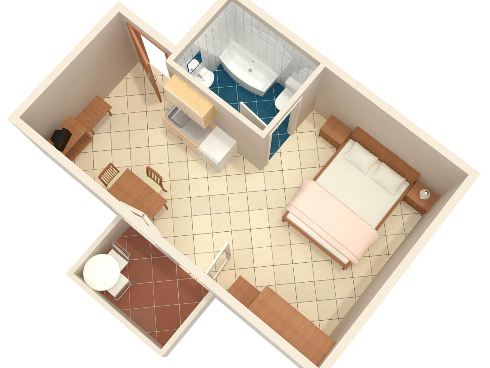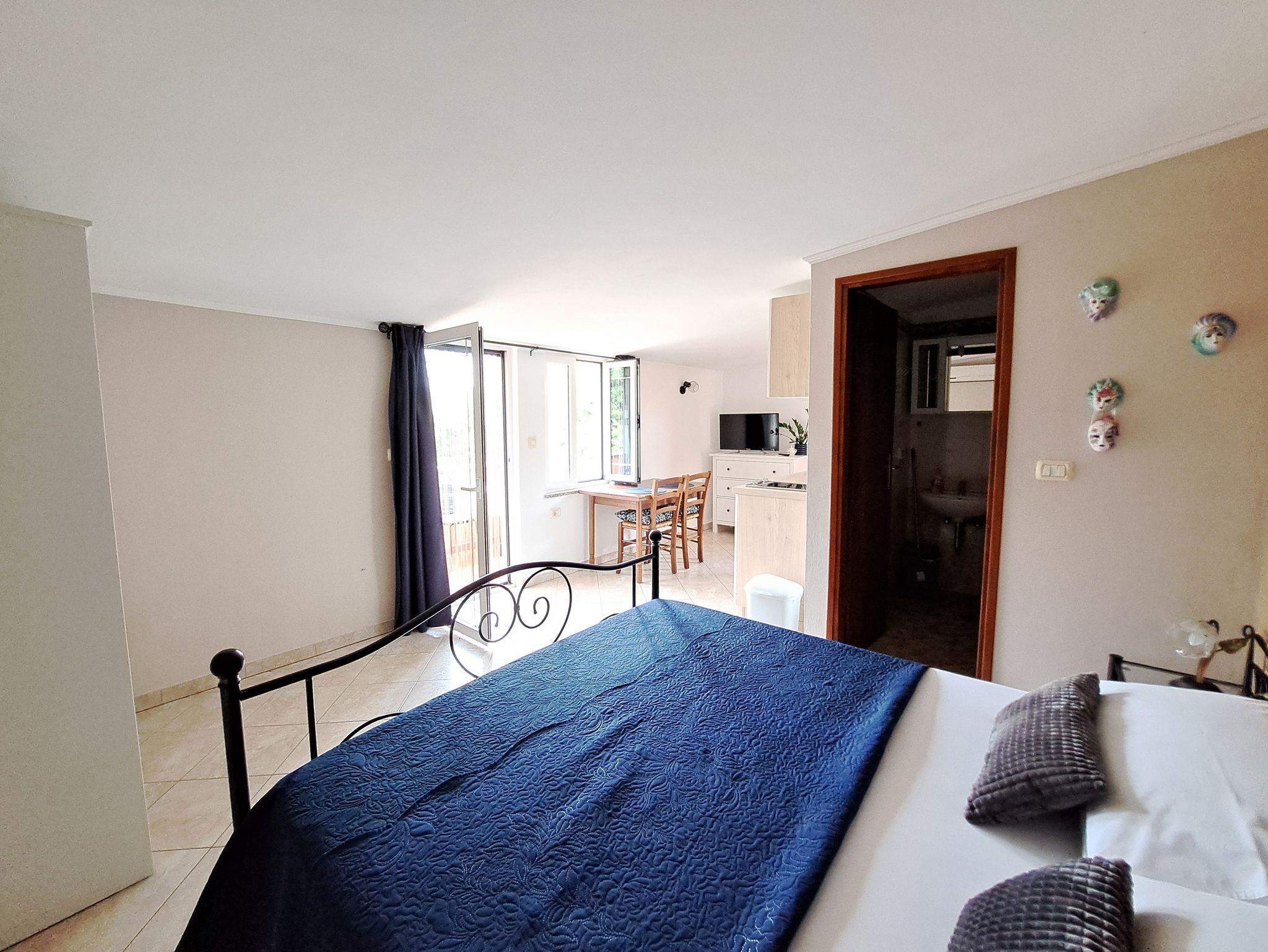 Studio bietet Platz für 2 Gäste. Die Betten sind in Schlafzimmern, die es 1 gibt, innerhalb einer Gesamtfläche von 23m2, angeordnet. Die Gäste haben einen eigenen Balkon zur Verfügung, auf der sie in warmen Sommernächten genießen können. IM PREIS INBEGRIFFEN: Kurtaxe, Endreinigung, Klimatisierung, Parkplatz, Internet, Kinderbett, Bügeleisen, Bügelbrett, Föhn, Sonnenschirm. VERBINDLICHE ZUSÄTZLICHE KOSTEN: Aufzahlung für Kurzaufenthalte (prozentualer Zuschlag pro Nächtigungsanzahl: 30% - 1, 20% - 2, 10% - 3). UNVERBINDLICHE ZUSÄTZLICHE KOSTEN: Wäschewaschen (5,00 € Waschen), Fahrrad (25,00 € täglich (pro Stück)). Die Verfügbarkeit zusätzlicher Dienstleistungen in Ihrem reservierten Termin und die Preise derselben (falls nicht aufgeführt) müssen im Voraus überprüft werden. Zusätzliche Dienstleistungen die in der Zahlungsaufforderung nicht aufgeführt sind werden direkt beim Vermieter bezahlt, angenommen der Gast nutzt auch diese. Ermäßigung auf den Grundpreis: Gratistag 14=13 (bei einem Aufenthalt von 14 Tagen oder mehr erhalten Sie einen Gratistag für den Aufenthalt bis 31.12.26).