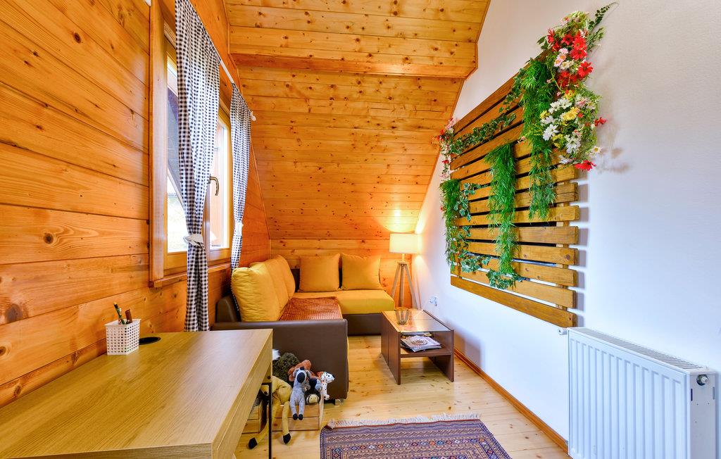 Husets praktiske indretning og gode udstyr garanterer jer et behageligt og bekymringsfrit ophold. Husets mange træelementer skaber en charmerende, nærmest hytteagtig atmosfære. Saunaen er skøn efter en aktiv dag, særligt om vinteren efter et par sjove timer ved ski- og kælkebakken.