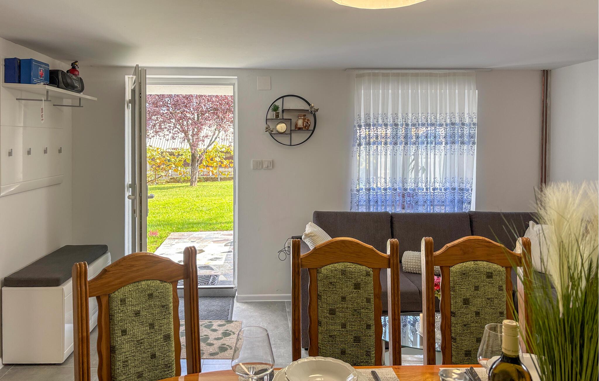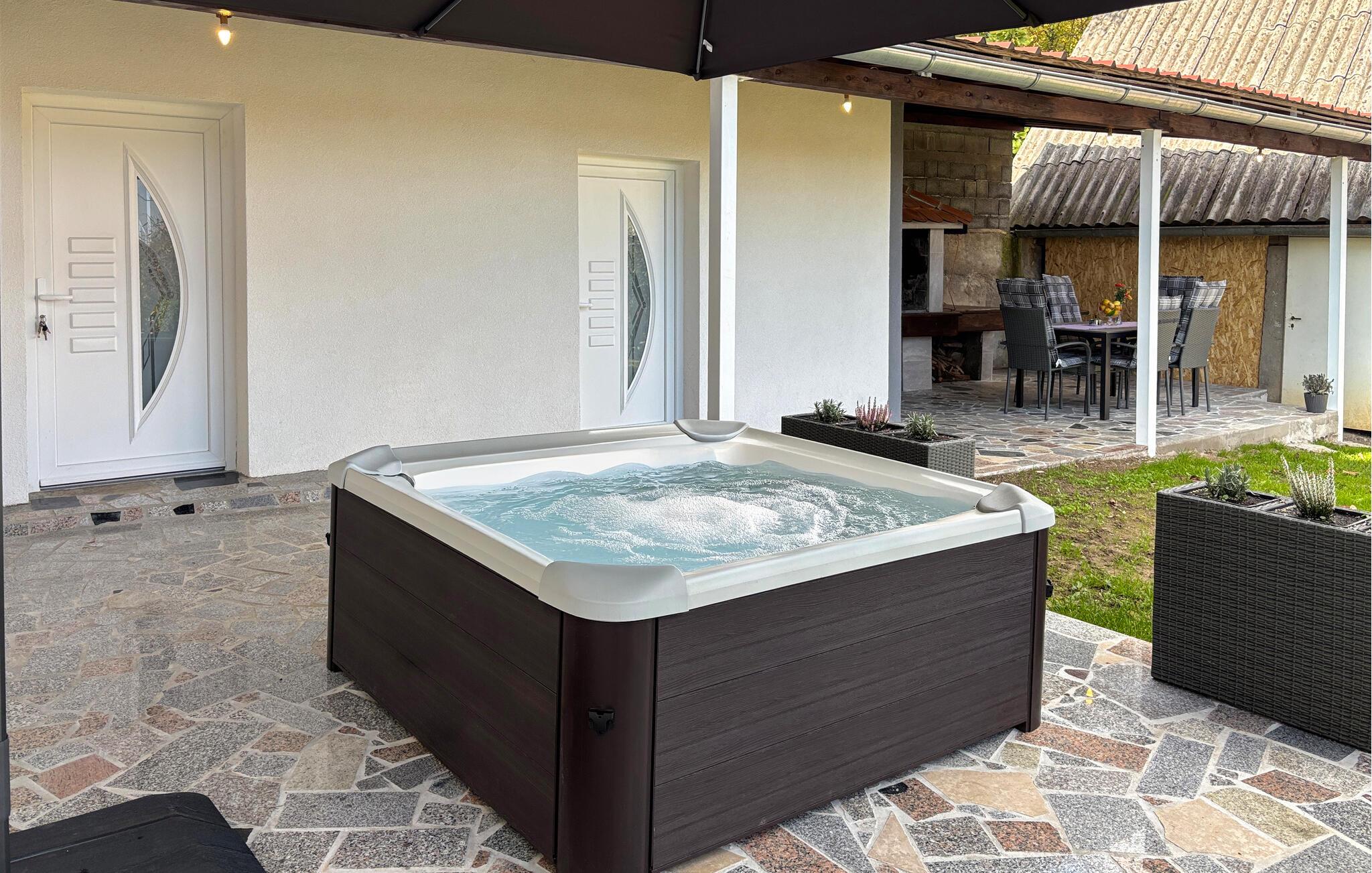 Træd udenfor ved det første solskin og nyd den dejlige have, der omgiver jer. Nyd en afslappet morgenmad på terrassen, og planlæg jeres aktiviteter for den næste dag. Hvis I ønsker det, kan I nyde fred og afslapning med et bad i spabadet. Om aftenen kan I tænde op i grillen og slappe af.