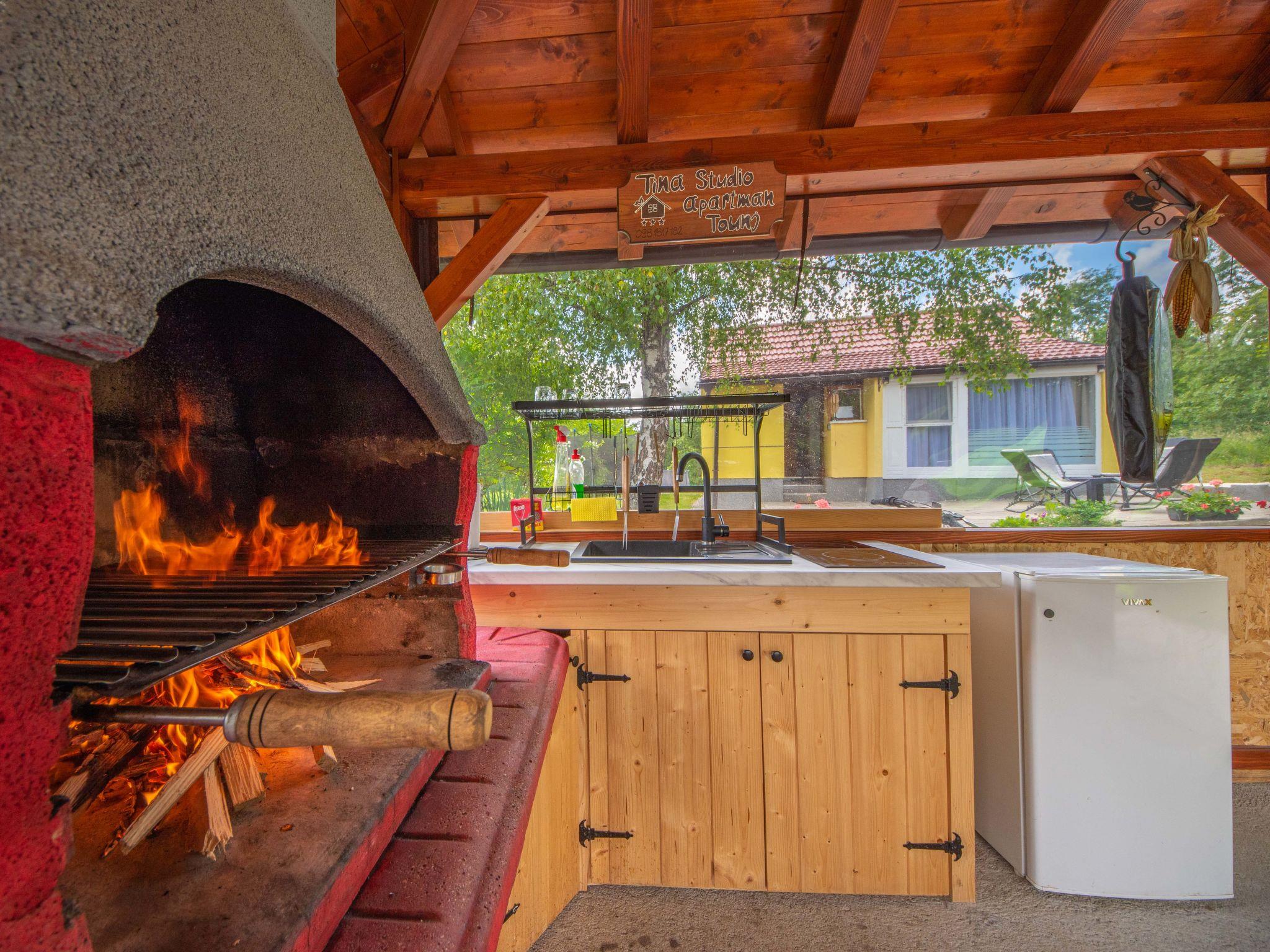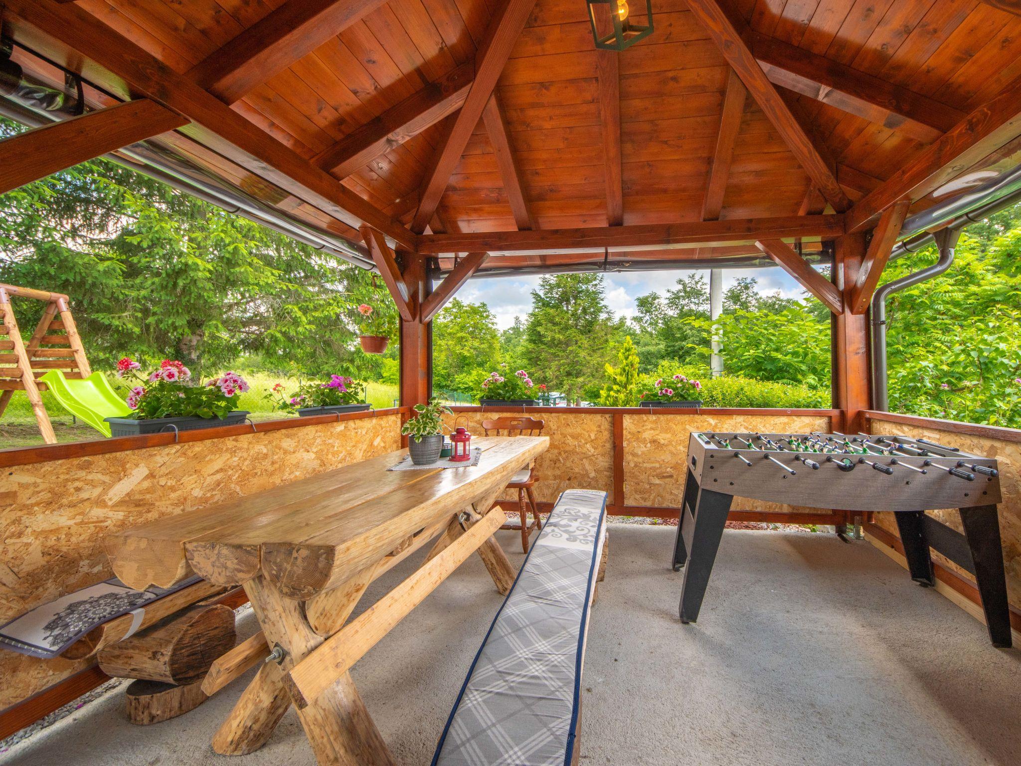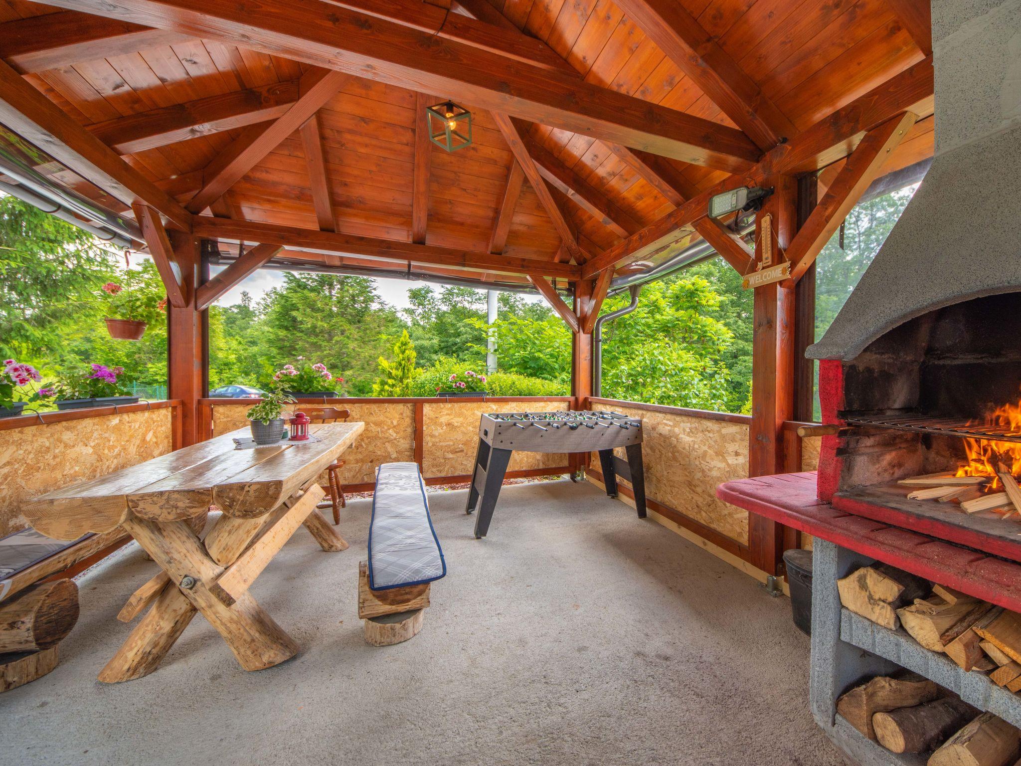 Tounj 17 km from Ogulin: Single-family house "Tina". 2 km from the centre of Tounj, in a quiet, sunny position, in the countryside. Private: property 1'200 m2 (fenced) with lawn 700 m2 trees, swimming pool (above ground) round (4.50 m diameter, depth 120 cm, seasonal availability: 01.May. - 01.Oct.). Outdoor shower, terrace (20 m2), garden furniture, barbecue, barbecue house (swing). In the house: internet access, trampoline, washing machine, bicycles available. Parking (for 4 cars) at the house on the premises. Shop 2 km, restaurant 3.5 km, bus stop 1.9 km. Well-known lakes can easily be reached: Plitvicka jezera 65 km.
