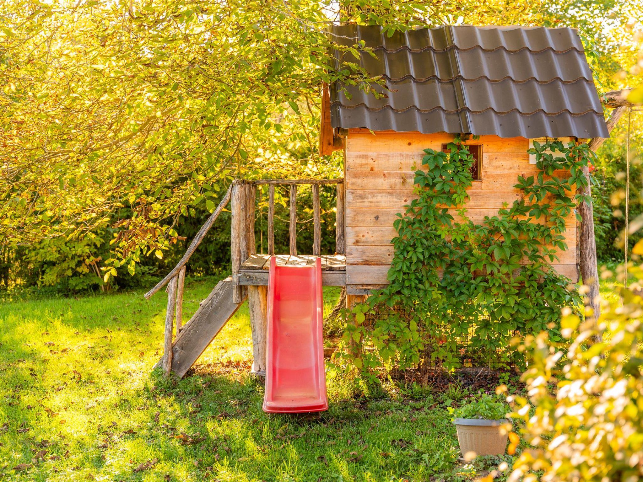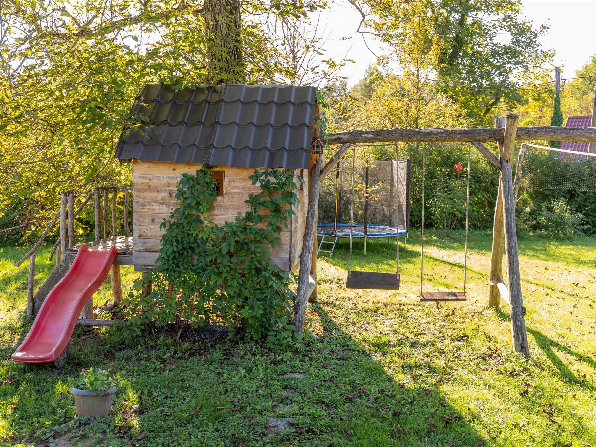 Children will enjoy the playground with a playhouse, swing, seesaw, and slide, while sports enthusiasts can use the volleyball and small soccer courts. The surrounding area offers natural attractions such as the Tounj double bridge, river, and Tounjcica cave, as well as cycling and hiking trails.