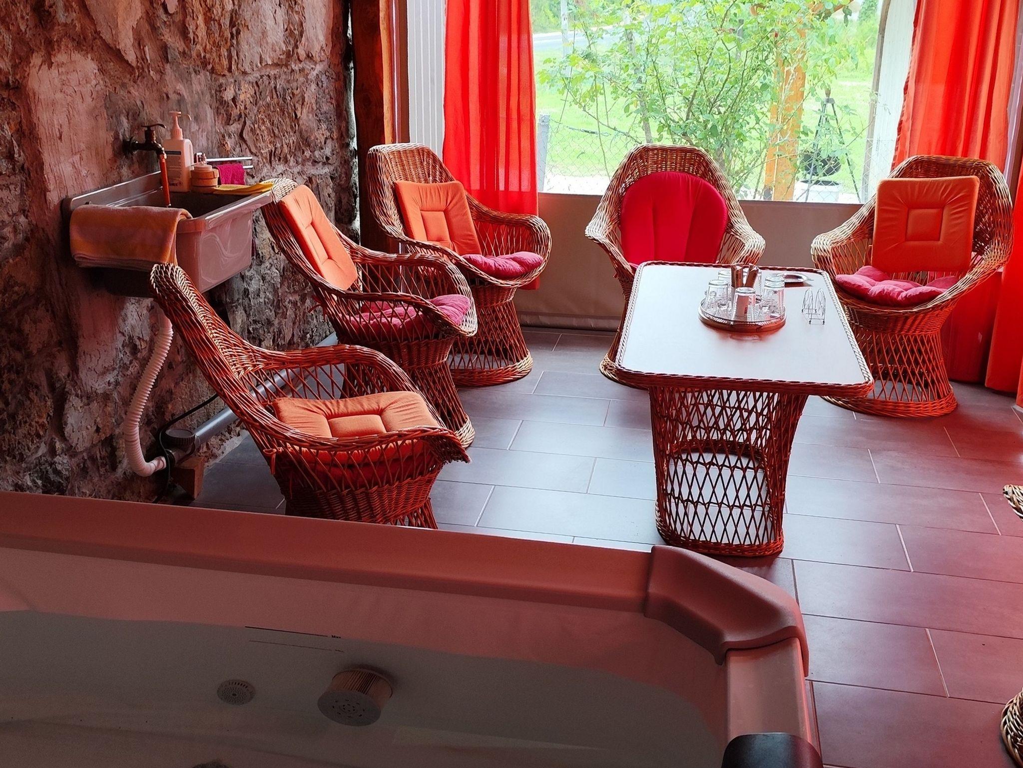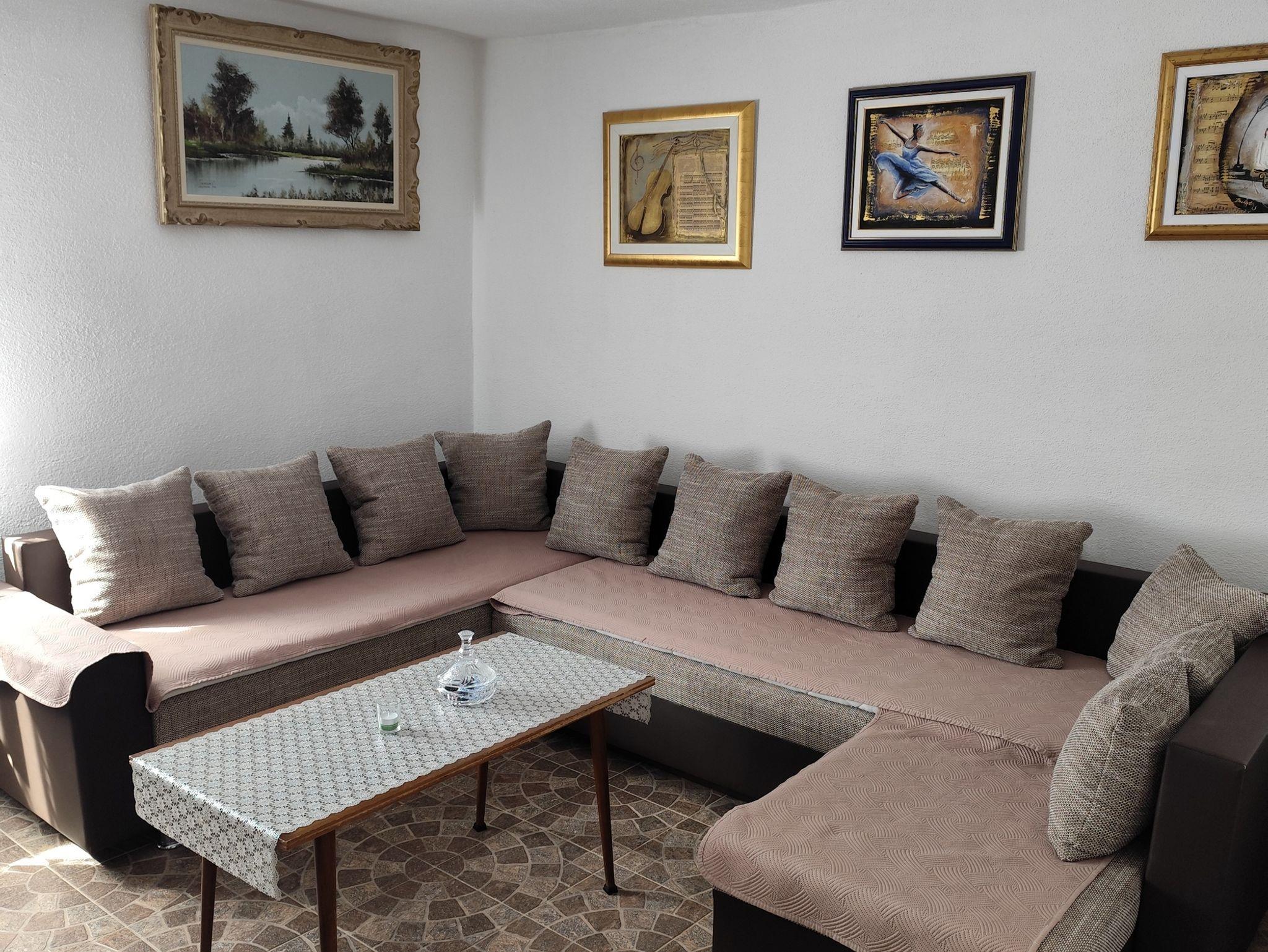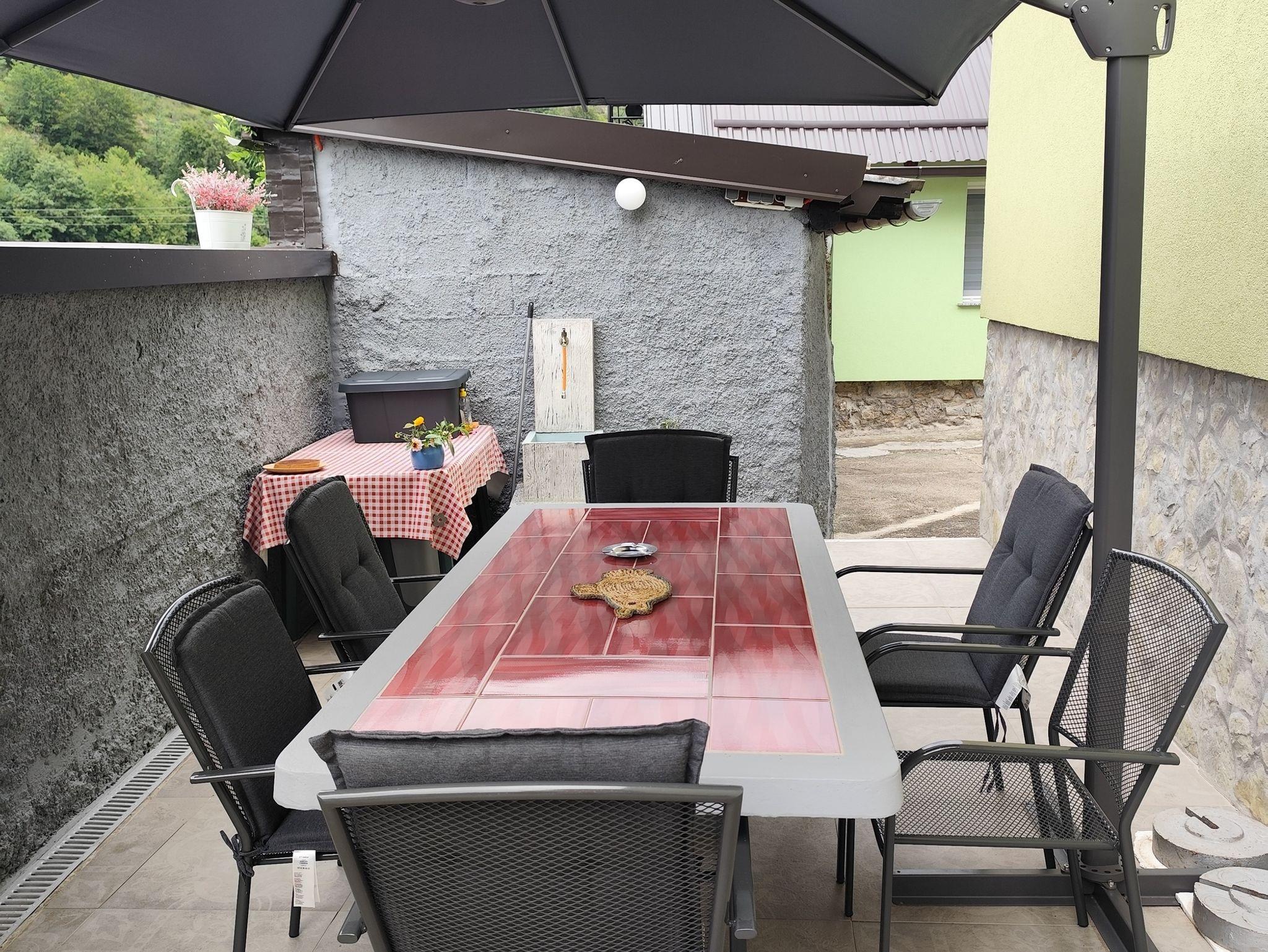 Umgebung des Objekts (Eingerichtet), Hof (1000m2, Kinderbereich, Sitzbereich), Parkplatz (Anzahl der Parkplätze: 5, Entfernung vom Objekt: im Hof), Garage, (Anzahl der Parkplätze: 1), Grill: gemeinsam, WiFi Internet, Föhn, Bügeleisen, Bügelbrett, Kinderbett
