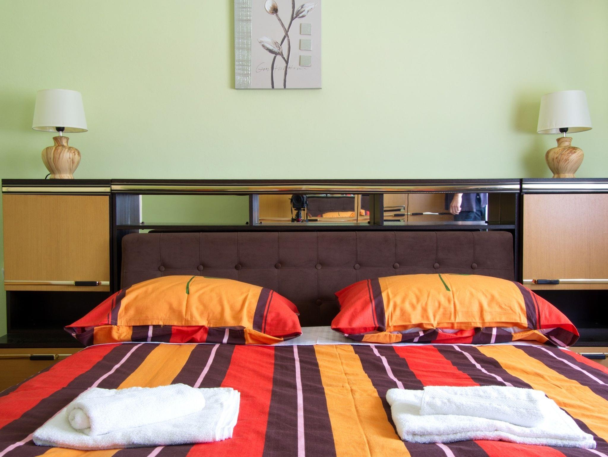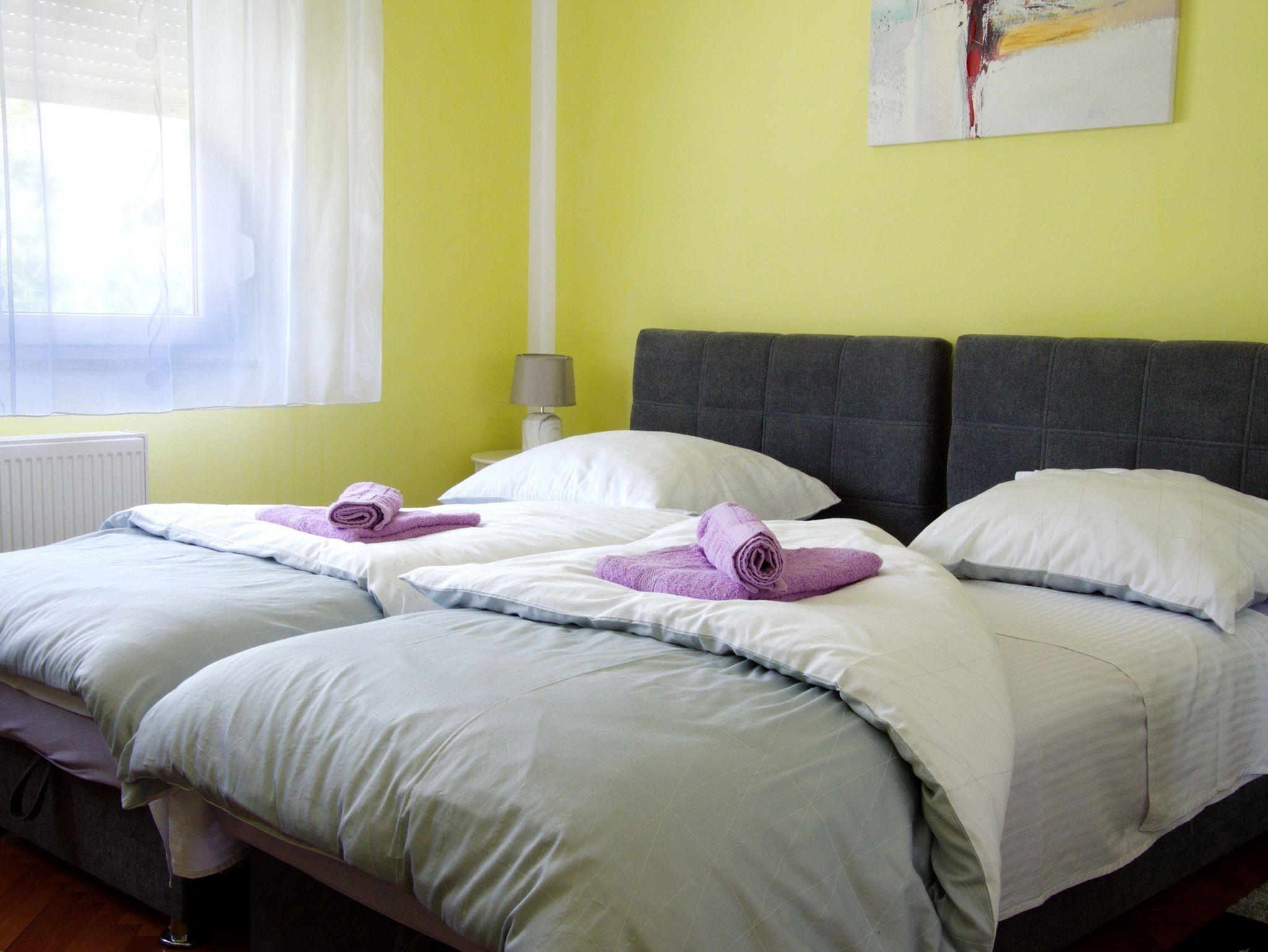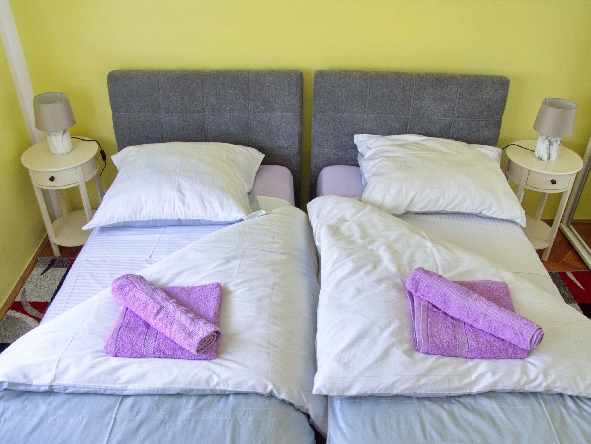Ferienwohnung bietet Platz für 6 Gäste. Die Betten sind in Schlafzimmern, die es 2 gibt, und in Wohnzimmer, innerhalb einer Gesamtfläche von 64m2, angeordnet. Die Gäste haben einen eigenen Balkon zur Verfügung, auf der sie in warmen Sommernächten genießen können. Für vollen Genuss und Entspannung gibt es einen privaten Grill für Gäste dieser Unterkunft. IM PREIS INBEGRIFFEN: Kurtaxe, Endreinigung, Zentralheizung, Parkplatz, Internet, Kinderbett, Bügeleisen, Bügelbrett, Föhn. Die Verfügbarkeit zusätzlicher Dienstleistungen in Ihrem reservierten Termin und die Preise derselben (falls nicht aufgeführt) müssen im Voraus überprüft werden. Zusätzliche Dienstleistungen die in der Zahlungsaufforderung nicht aufgeführt sind werden direkt beim Vermieter bezahlt, angenommen der Gast nutzt auch diese. Ermäßigung auf den Grundpreis: Gratistag 14=13 (bei einem Aufenthalt von 14 Tagen oder mehr erhalten Sie einen Gratistag für den Aufenthalt bis 31.12.26).
