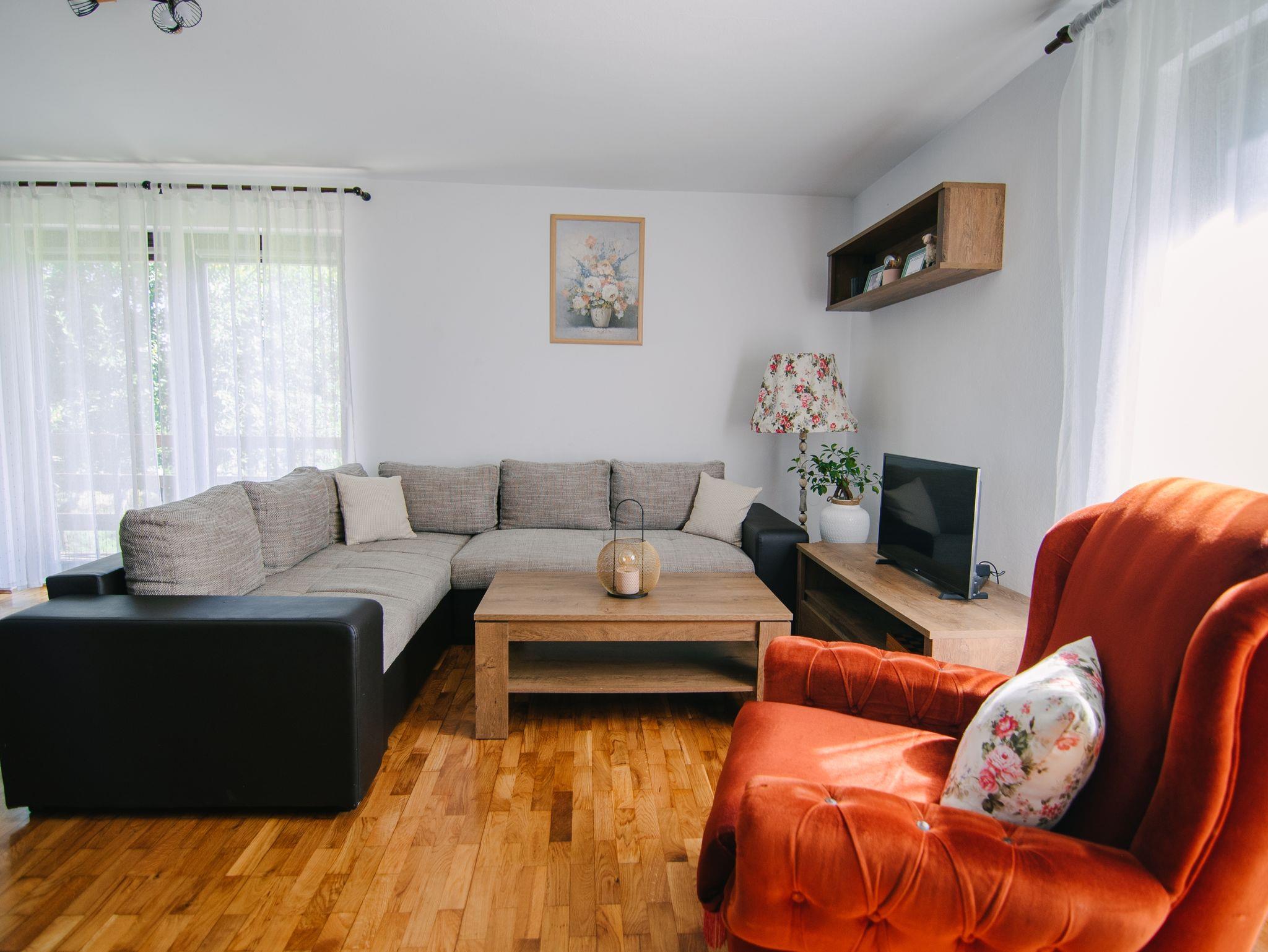 Haus bietet Platz für 8 Gäste. Die Betten sind in Schlafzimmern, die es 2 gibt, und in Wohnzimmer, innerhalb einer Gesamtfläche von 71m2, angeordnet. Die Gäste haben eine eigene Terrasse zur Verfügung, auf der sie in warmen Sommernächten genießen können. Für vollen Genuss und Entspannung gibt es einen privaten Grill für Gäste dieser Unterkunft. In der Unterkunftseinheit besteht die Möglichkeit des Mitbringens von Haustieren gegen Aufpreis. IM PREIS INBEGRIFFEN: Kurtaxe, Endreinigung, Zentralheizung, Parkplatz, Internet, Kinderbett, Bügeleisen, Föhn. VERBINDLICHE ZUSÄTZLICHE KOSTEN: Aufzahlung für Kurzaufenthalte (prozentualer Zuschlag pro Nächtigungsanzahl: 30% - 1, 20% - 2, 10% - 3). UNVERBINDLICHE ZUSÄTZLICHE KOSTEN: Haustiere (5,00 € pro Nacht). Die Verfügbarkeit zusätzlicher Dienstleistungen in Ihrem reservierten Termin und die Preise derselben (falls nicht aufgeführt) müssen im Voraus überprüft werden. Zusätzliche Dienstleistungen die in der Zahlungsaufforderung nicht aufgeführt sind werden direkt beim Vermieter bezahlt, angenommen der Gast nutzt auch diese. Ermäßigung auf den Grundpreis: Gratistag 14=13 (bei einem Aufenthalt von 14 Tagen oder mehr erhalten Sie einen Gratistag für den Aufenthalt bis 31.12.26).