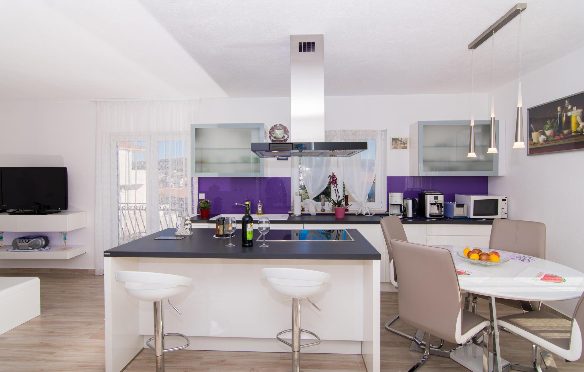 Nyd en dejlig pause i denne komfortable ferielejlighed med havudsigt nær stranden.