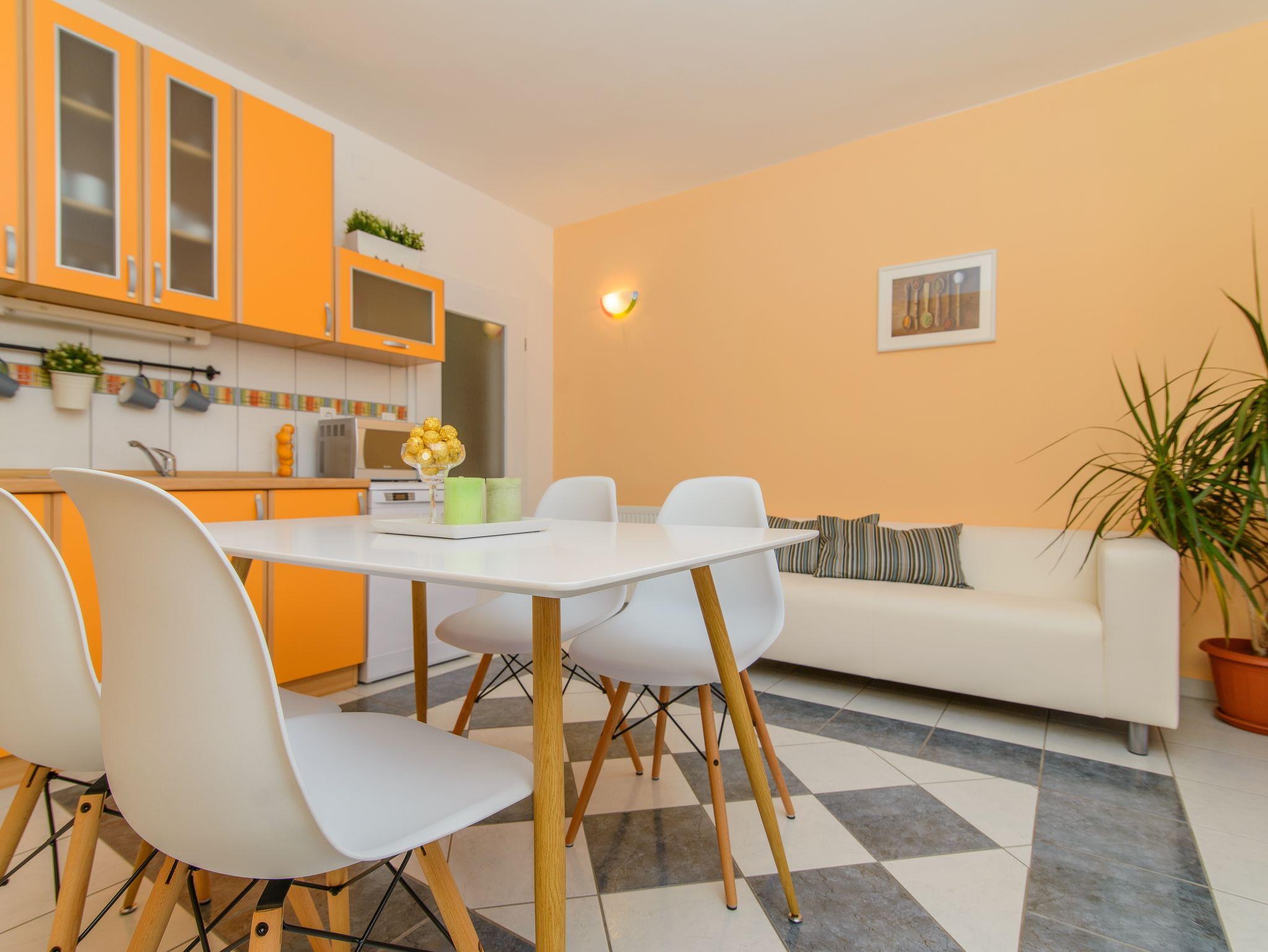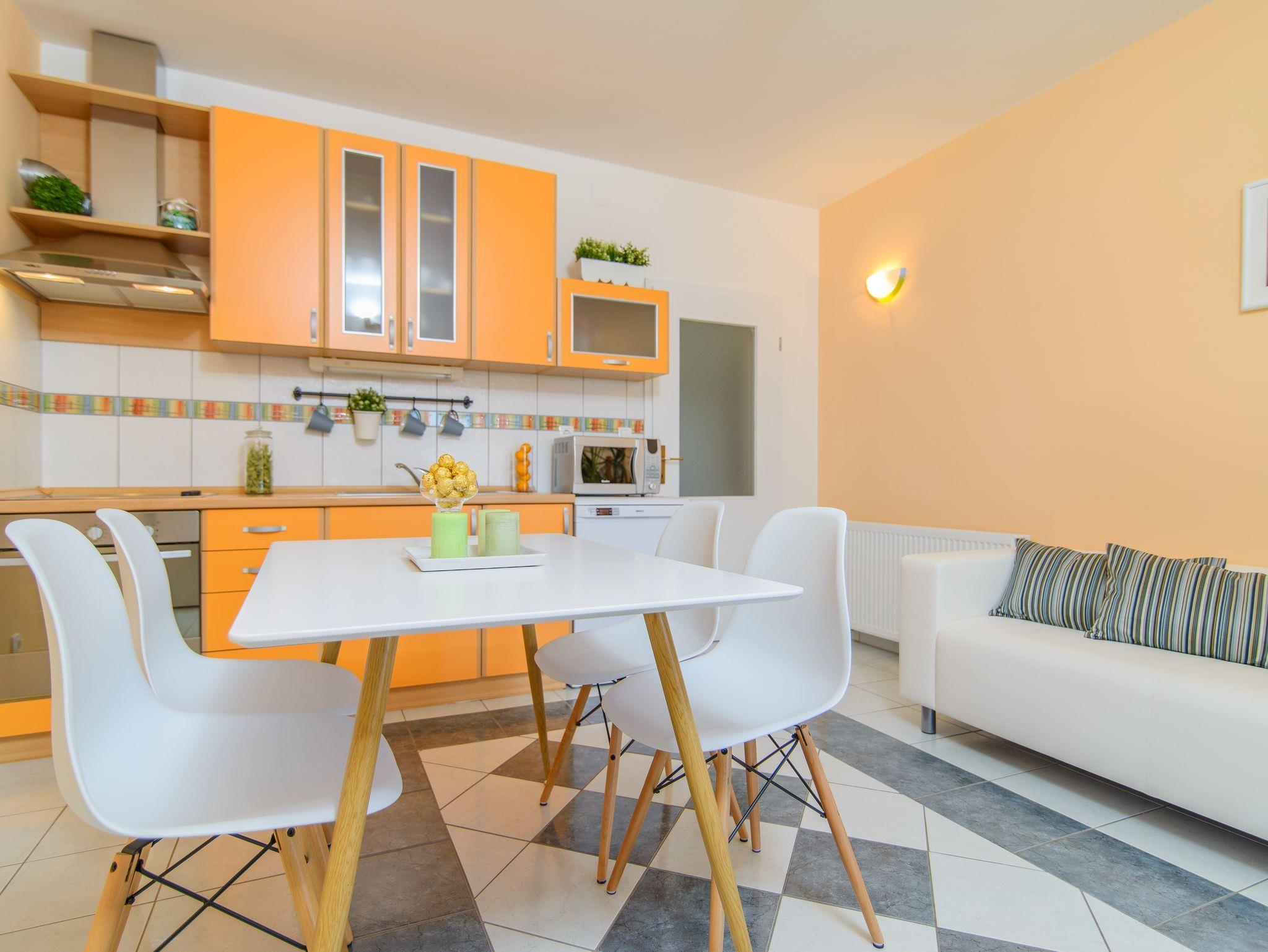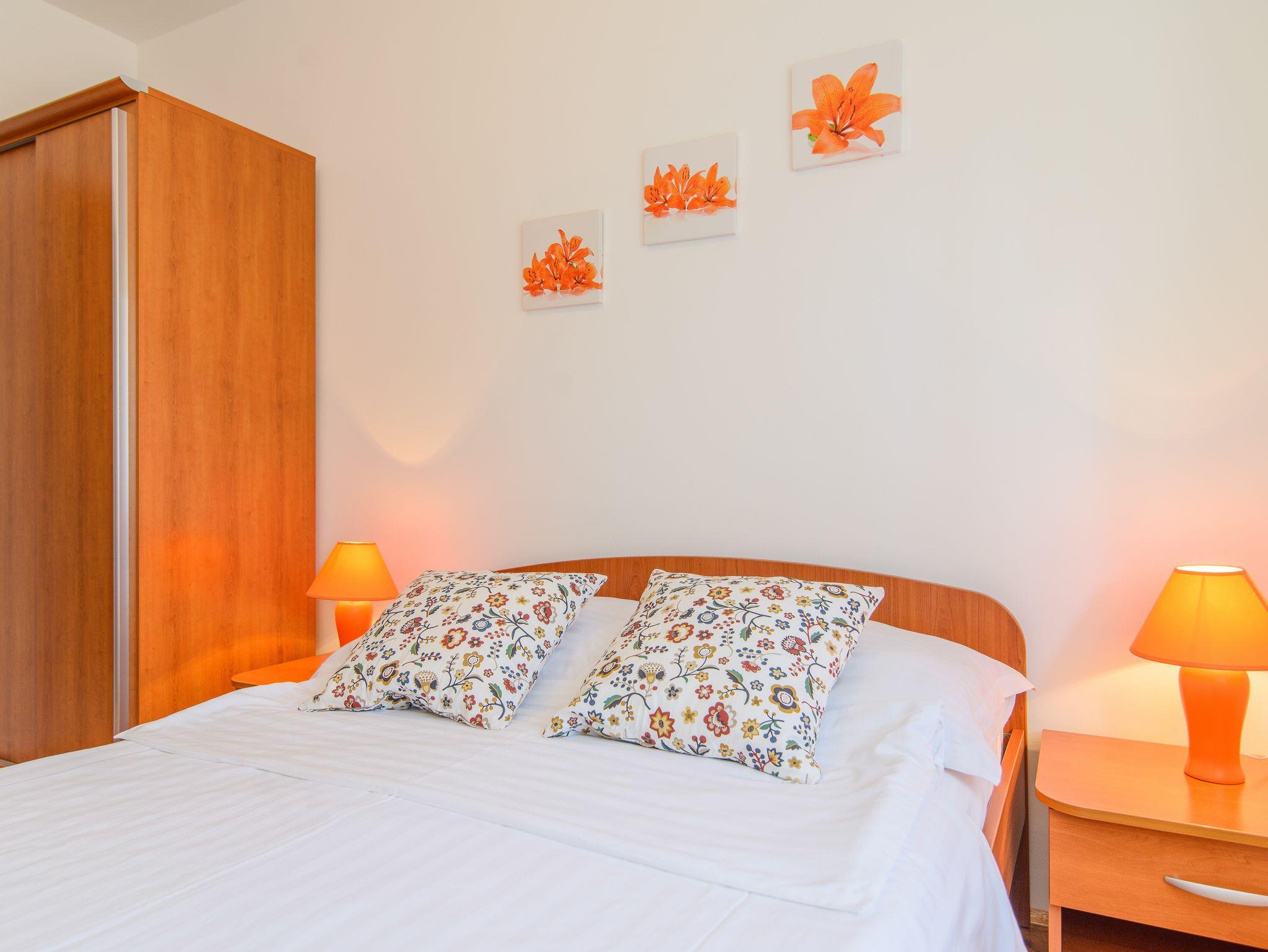 Ferienwohnung bietet Platz für 5 Gäste. Die Betten sind in Schlafzimmern, die es 2 gibt, innerhalb einer Gesamtfläche von 44m2, angeordnet. Die Gäste haben eine eigene Terrasse zur Verfügung, auf der sie in warmen Sommernächten genießen können. Das Apartment bietet Meerblick. Es ist erlaubt, Speisen auf dem Gemeinschafts-Grill vorzubereiten. Während ihres Aufenthalts können Gäste das gemeinsam zur Nutzung stehende Schwimmbad benutzen. IM PREIS INBEGRIFFEN: Kurtaxe, Endreinigung, Klimatisierung, Zentralheizung, Pool, Parkplatz, Internet, Kinderbett, Bügeleisen, Bügelbrett, Föhn. Die Verfügbarkeit zusätzlicher Dienstleistungen in Ihrem reservierten Termin und die Preise derselben (falls nicht aufgeführt) müssen im Voraus überprüft werden. Zusätzliche Dienstleistungen die in der Zahlungsaufforderung nicht aufgeführt sind werden direkt beim Vermieter bezahlt, angenommen der Gast nutzt auch diese.