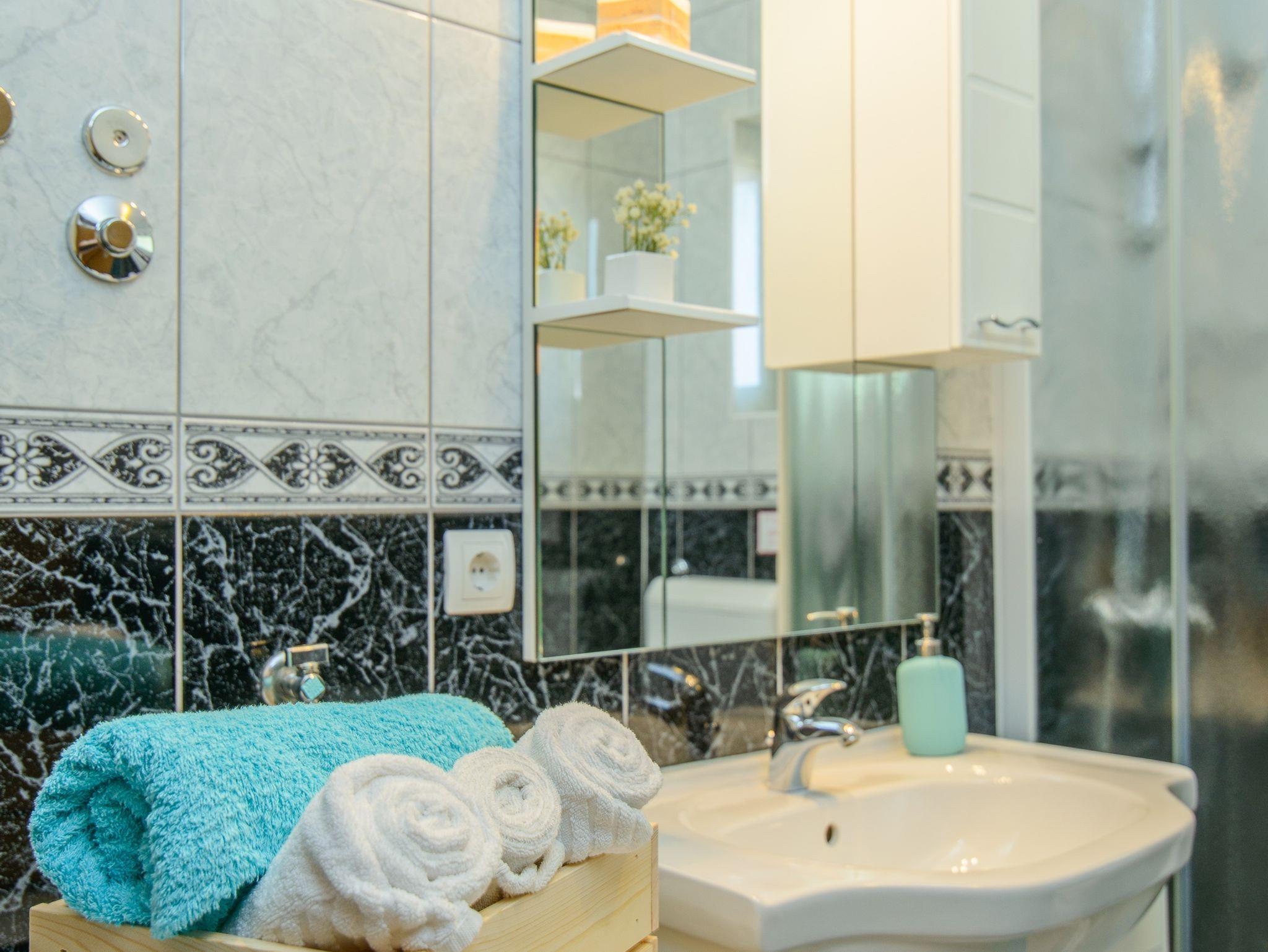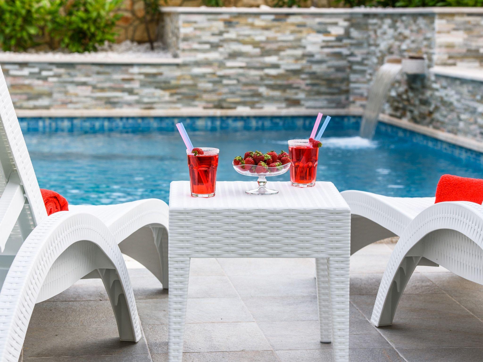 Umgebung des Objekts (Eingerichtet), Hof (700m2, Kinderbereich, Sitzbereich), Parkplatz (Anzahl der Parkplätze: 5, Entfernung vom Objekt: im Hof), Pool: gemeinsam, Dimensionen: 6.5m x 4m x 1.6m, Wassertyp: Salzwasser, Heizung: Ja, Grill: gemeinsam, WiFi Internet, Föhn, Bügeleisen, Bügelbrett, Kinderbett