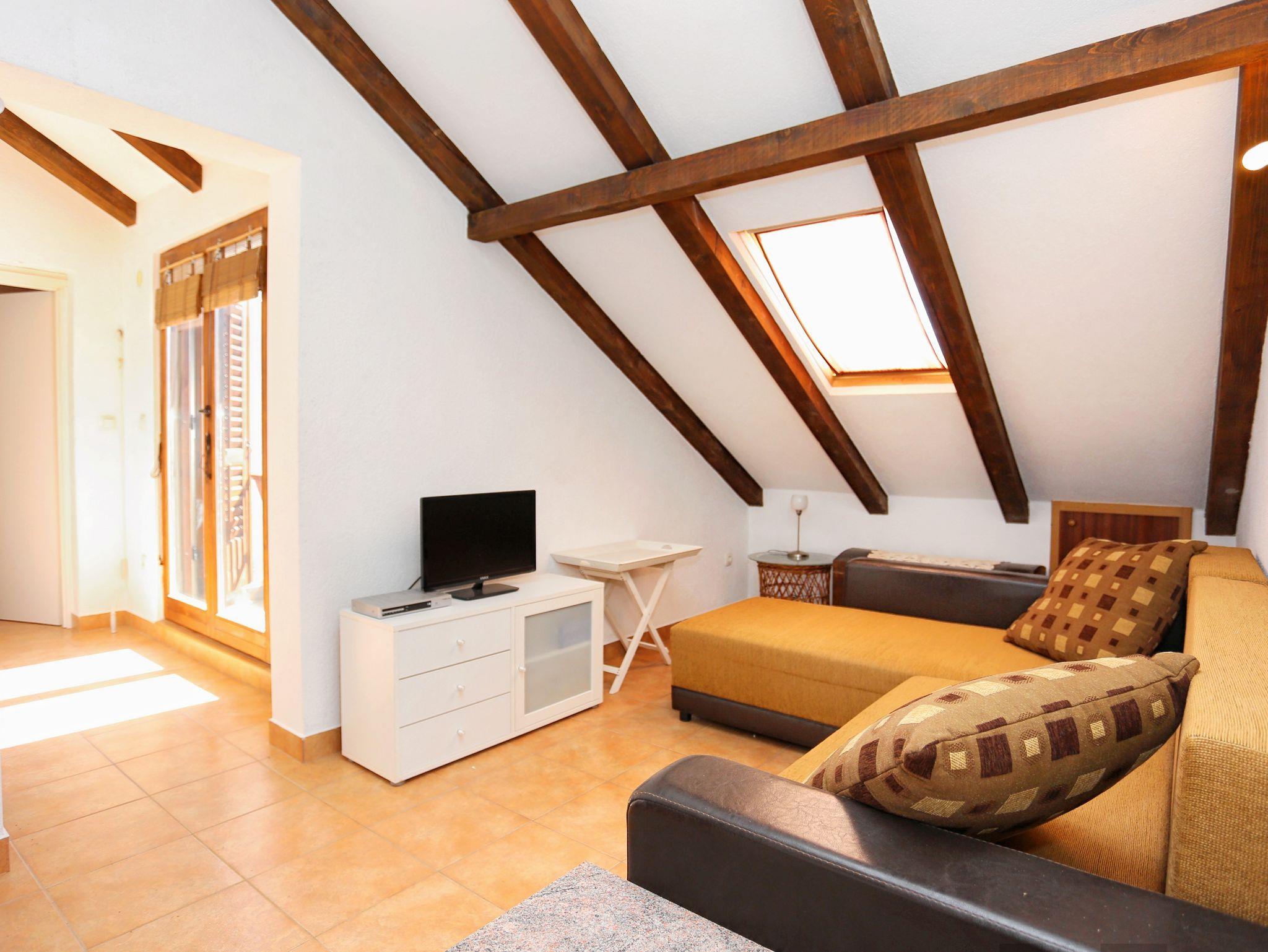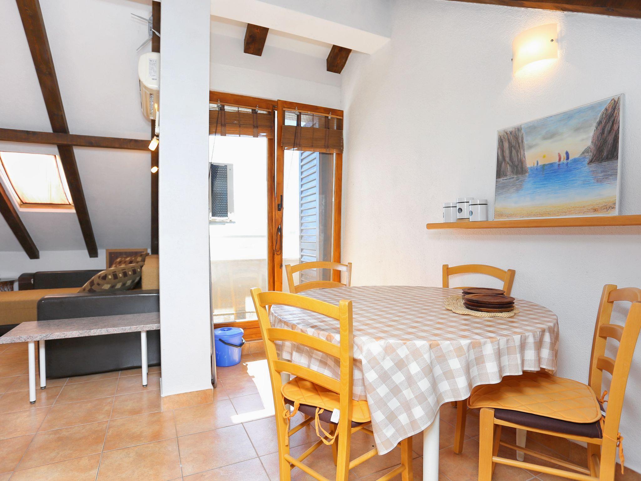 Ferienwohnung bietet Platz für 3 Gäste. Die Betten sind in Schlafzimmern, die es 1 gibt, innerhalb einer Gesamtfläche von 44m2, angeordnet. Die Gäste haben eine eigene Terrasse zur Verfügung, auf der sie in warmen Sommernächten genießen können. Das Apartment bietet Meerblick. IM PREIS INBEGRIFFEN: Kurtaxe, Endreinigung, Klimatisierung, Internet, Wäschewaschen, Kinderbett, Bügeleisen, Bügelbrett, Föhn, Liegestühle. VERBINDLICHE ZUSÄTZLICHE KOSTEN: Aufzahlung für Kurzaufenthalte (prozentualer Zuschlag pro Nächtigungsanzahl: 30% - 1, 20% - 2, 10% - 3). Die Verfügbarkeit zusätzlicher Dienstleistungen in Ihrem reservierten Termin und die Preise derselben (falls nicht aufgeführt) müssen im Voraus überprüft werden. Zusätzliche Dienstleistungen die in der Zahlungsaufforderung nicht aufgeführt sind werden direkt beim Vermieter bezahlt, angenommen der Gast nutzt auch diese.