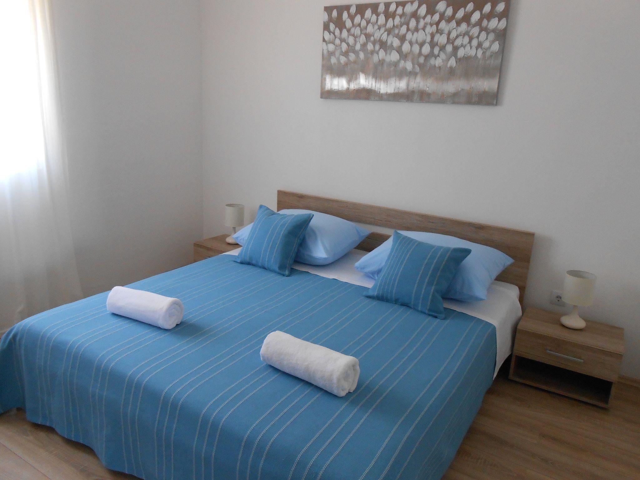 Ferienwohnung bietet Platz für 4 Gäste. Die Betten sind in Schlafzimmern, die es 2 gibt, innerhalb einer Gesamtfläche von 43m2, angeordnet. Die Gäste haben eine eigene Terrasse zur Verfügung, auf der sie in warmen Sommernächten genießen können. Das Apartment bietet Meerblick. Es ist erlaubt, Speisen auf dem Gemeinschafts-Grill vorzubereiten. IM PREIS INBEGRIFFEN: Kurtaxe, Endreinigung, Klimatisierung, Parkplatz, Internet, Wäschewaschen, Bügeleisen, Bügelbrett, Föhn, Sonnenschirm. Die Verfügbarkeit zusätzlicher Dienstleistungen in Ihrem reservierten Termin und die Preise derselben (falls nicht aufgeführt) müssen im Voraus überprüft werden. Zusätzliche Dienstleistungen die in der Zahlungsaufforderung nicht aufgeführt sind werden direkt beim Vermieter bezahlt, angenommen der Gast nutzt auch diese. Ermäßigung auf den Grundpreis: Gratistag 14=13 (bei einem Aufenthalt von 14 Tagen oder mehr erhalten Sie einen Gratistag für den Aufenthalt bis 31.12.26).