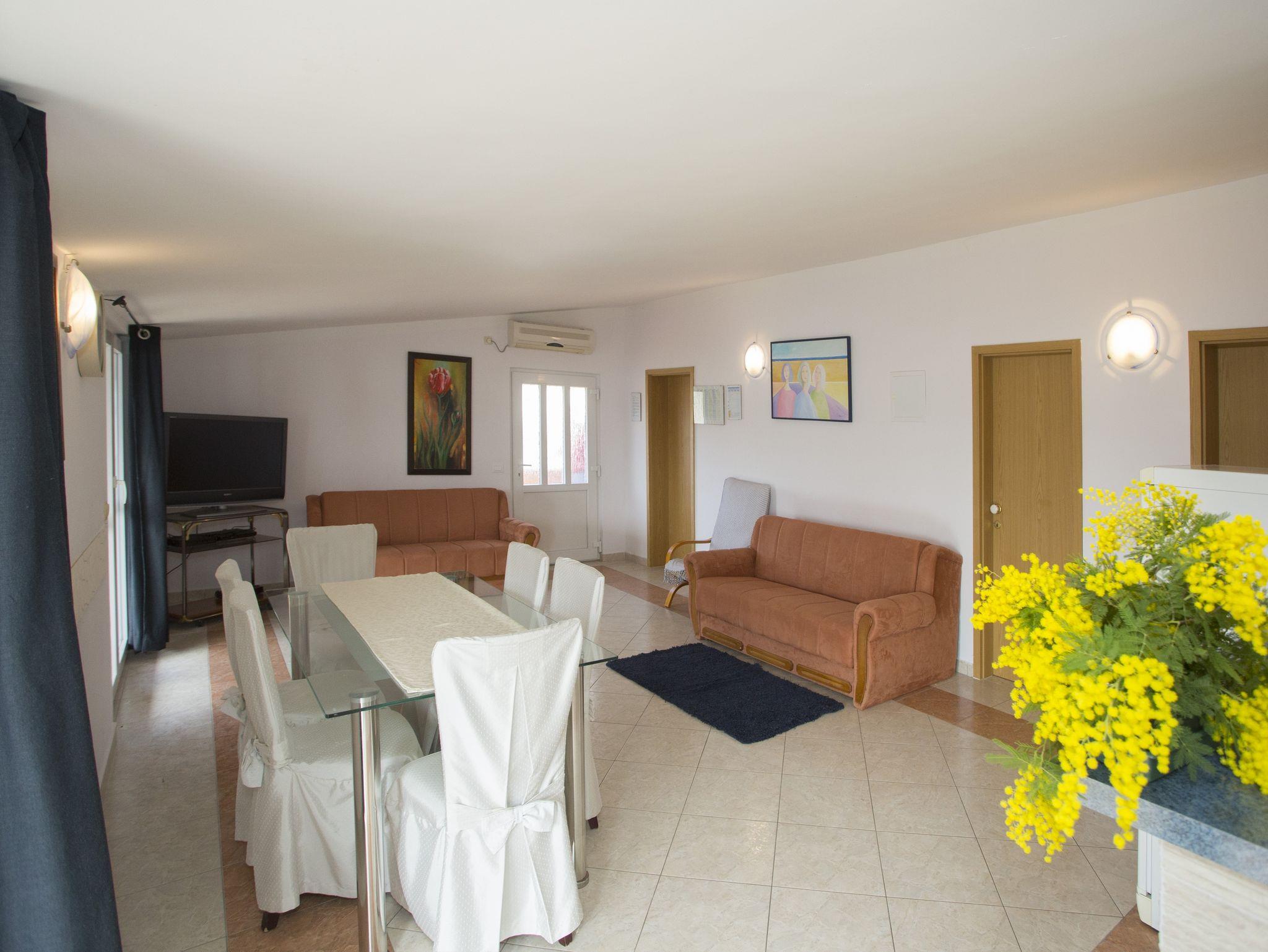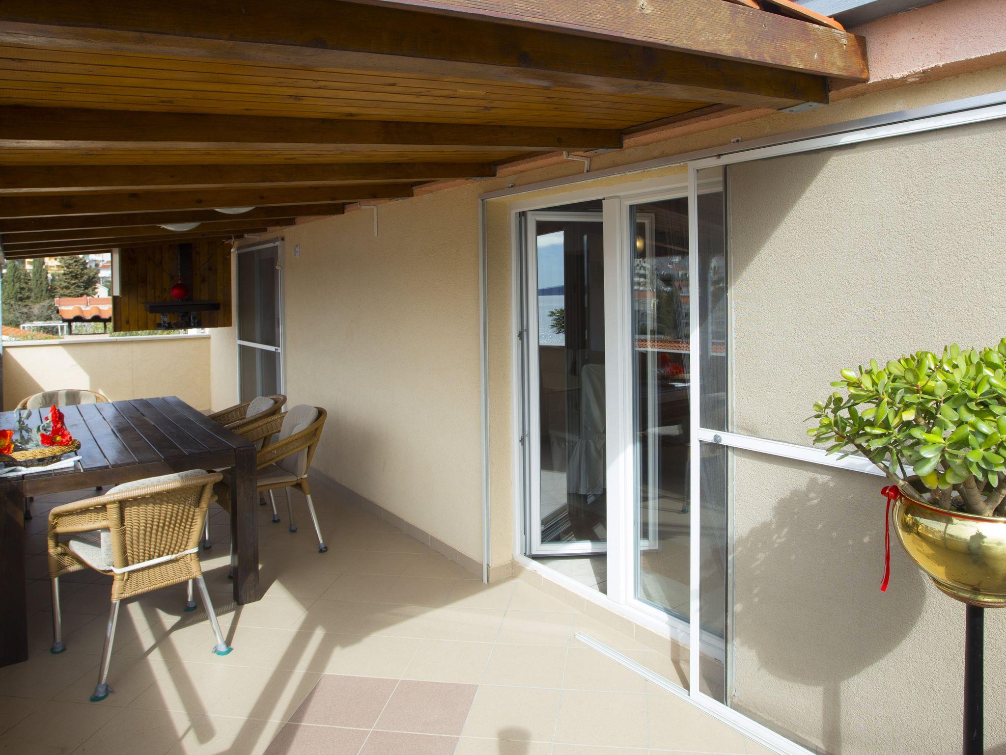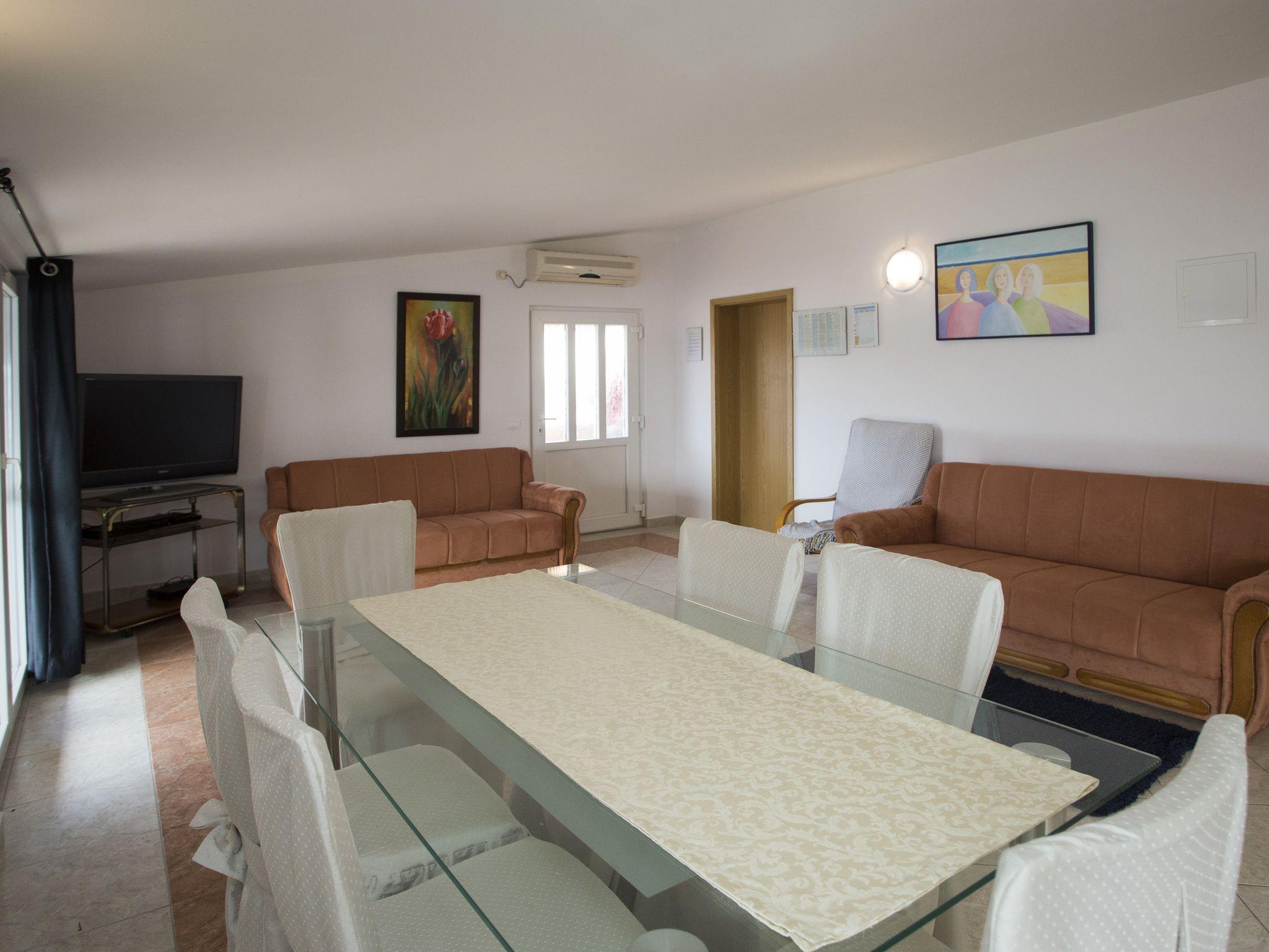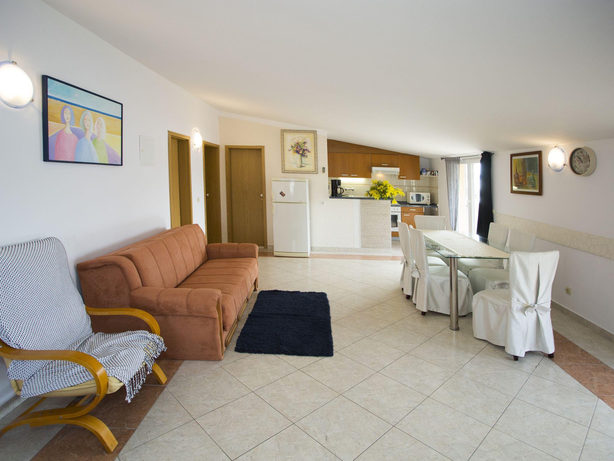 Ferienwohnung bietet Platz für 6 Gäste. Die Betten sind in Schlafzimmern, die es 2 gibt, und in Wohnzimmer, innerhalb einer Gesamtfläche von 52m2, angeordnet. Die Gäste haben eine eigene Terrasse zur Verfügung, auf der sie in warmen Sommernächten genießen können. Das Apartment bietet Meerblick. Es ist erlaubt, Speisen auf dem Gemeinschafts-Grill vorzubereiten. IM PREIS INBEGRIFFEN: Kurtaxe, Endreinigung, Klimatisierung, Parkplatz, Internet, Kinderbett, Bügeleisen, Bügelbrett, Föhn. VERBINDLICHE ZUSÄTZLICHE KOSTEN: Aufzahlung für Kurzaufenthalte (prozentualer Zuschlag pro Nächtigungsanzahl: 30% - 1, 20% - 2, 10% - 3). UNVERBINDLICHE ZUSÄTZLICHE KOSTEN: Bootsanlegeplatz (10,00 € pro Nacht). Die Verfügbarkeit zusätzlicher Dienstleistungen in Ihrem reservierten Termin und die Preise derselben (falls nicht aufgeführt) müssen im Voraus überprüft werden. Zusätzliche Dienstleistungen die in der Zahlungsaufforderung nicht aufgeführt sind werden direkt beim Vermieter bezahlt, angenommen der Gast nutzt auch diese. Ermäßigung auf den Grundpreis: Gratistag 14=13 (bei einem Aufenthalt von 14 Tagen oder mehr erhalten Sie einen Gratistag für den Aufenthalt bis 31.12.26).