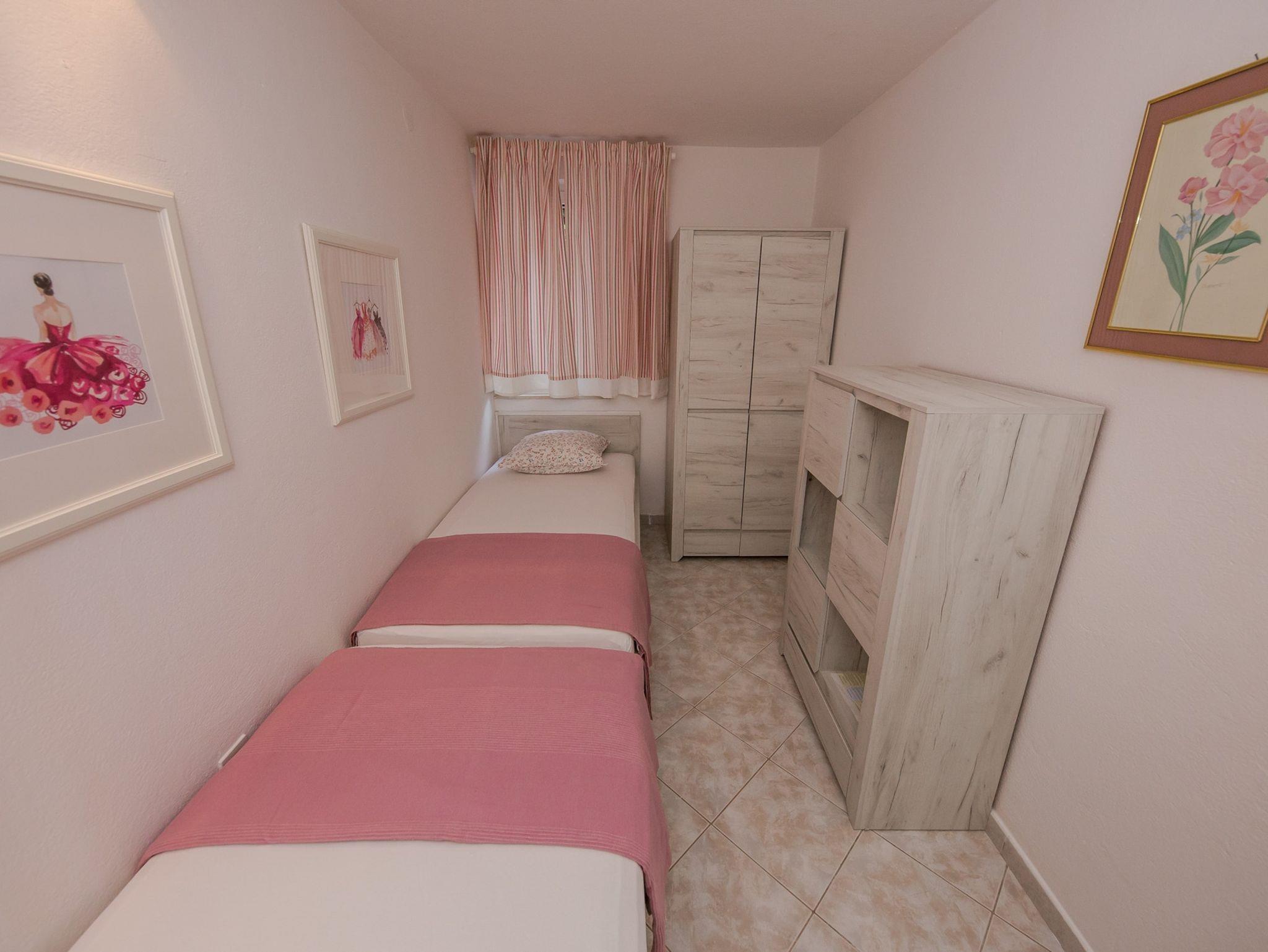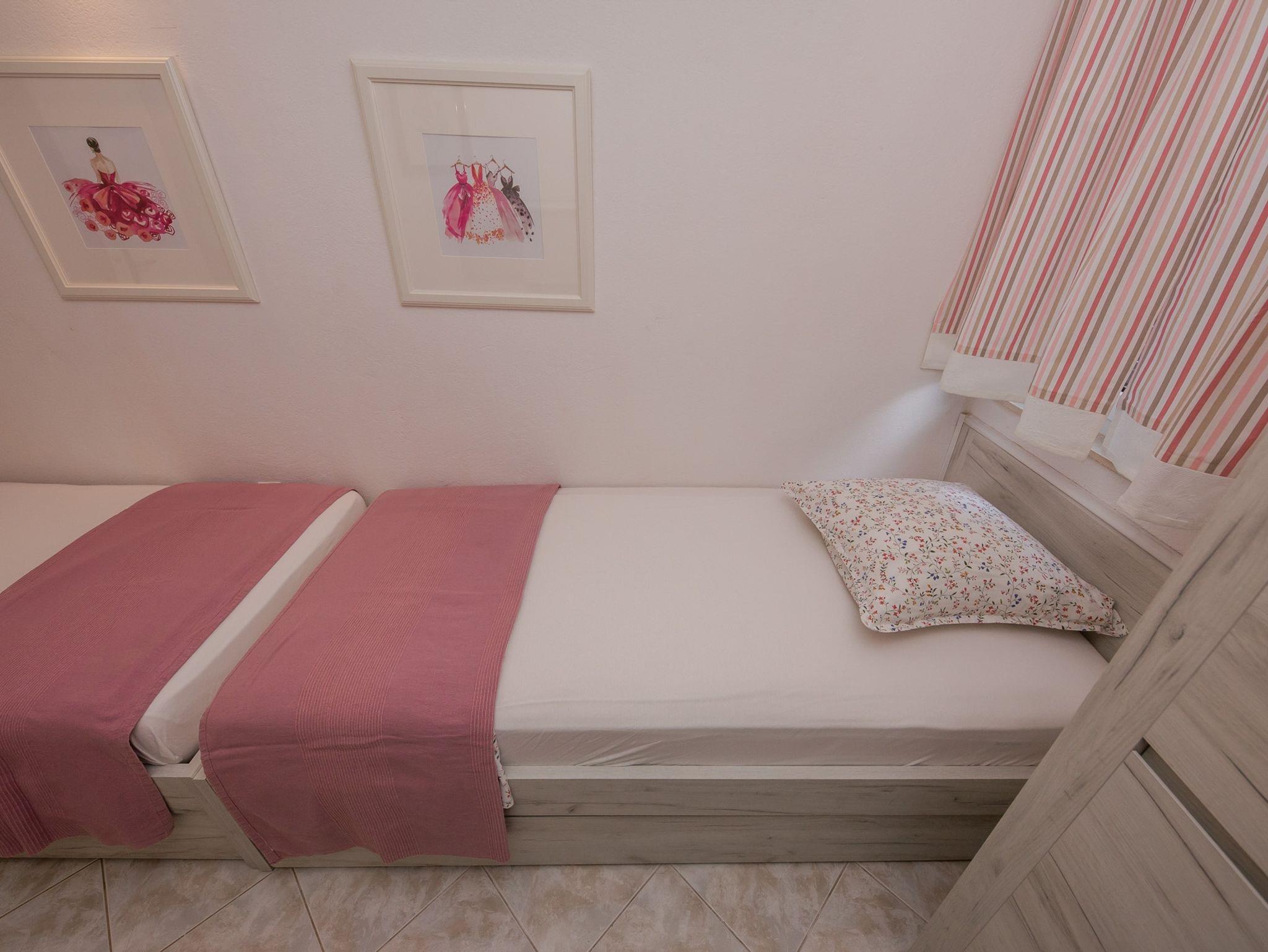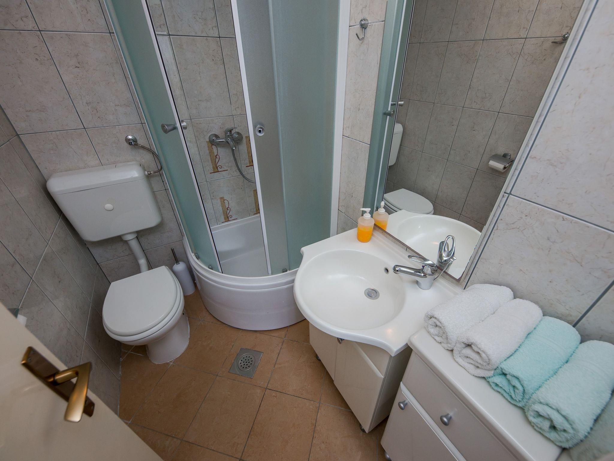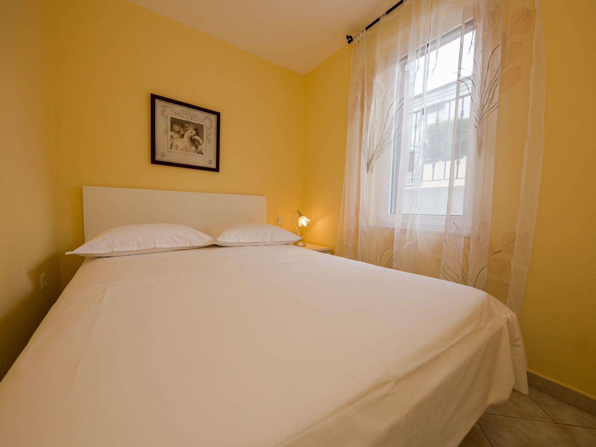 Ferienwohnung bietet Platz für 4 Gäste. Die Betten sind in Schlafzimmern, die es 2 gibt, innerhalb einer Gesamtfläche von 42m2, angeordnet. Die Gäste haben eine eigene Terrasse zur Verfügung, auf der sie in warmen Sommernächten genießen können. Das Apartment bietet Meerblick. Es ist erlaubt, Speisen auf dem Gemeinschafts-Grill vorzubereiten. IM PREIS INBEGRIFFEN: Kurtaxe, Endreinigung, Klimatisierung, Parkplatz, Internet, Bügeleisen, Bügelbrett, Föhn, Liegestühle. VERBINDLICHE ZUSÄTZLICHE KOSTEN: Aufzahlung für Kurzaufenthalte (prozentualer Zuschlag pro Nächtigungsanzahl: 30% - 1, 20% - 2, 10% - 3). Die Verfügbarkeit zusätzlicher Dienstleistungen in Ihrem reservierten Termin und die Preise derselben (falls nicht aufgeführt) müssen im Voraus überprüft werden. Zusätzliche Dienstleistungen die in der Zahlungsaufforderung nicht aufgeführt sind werden direkt beim Vermieter bezahlt, angenommen der Gast nutzt auch diese.