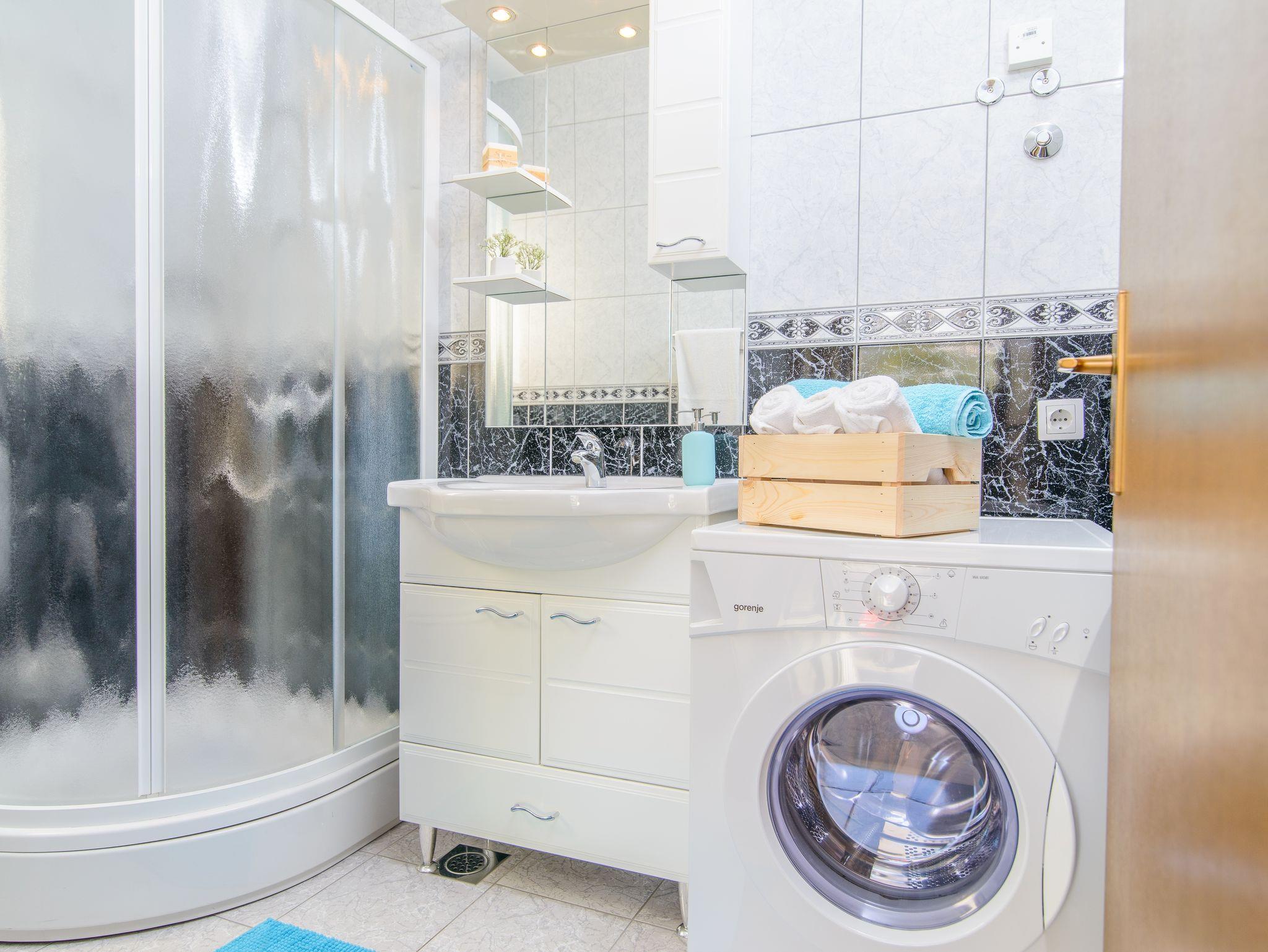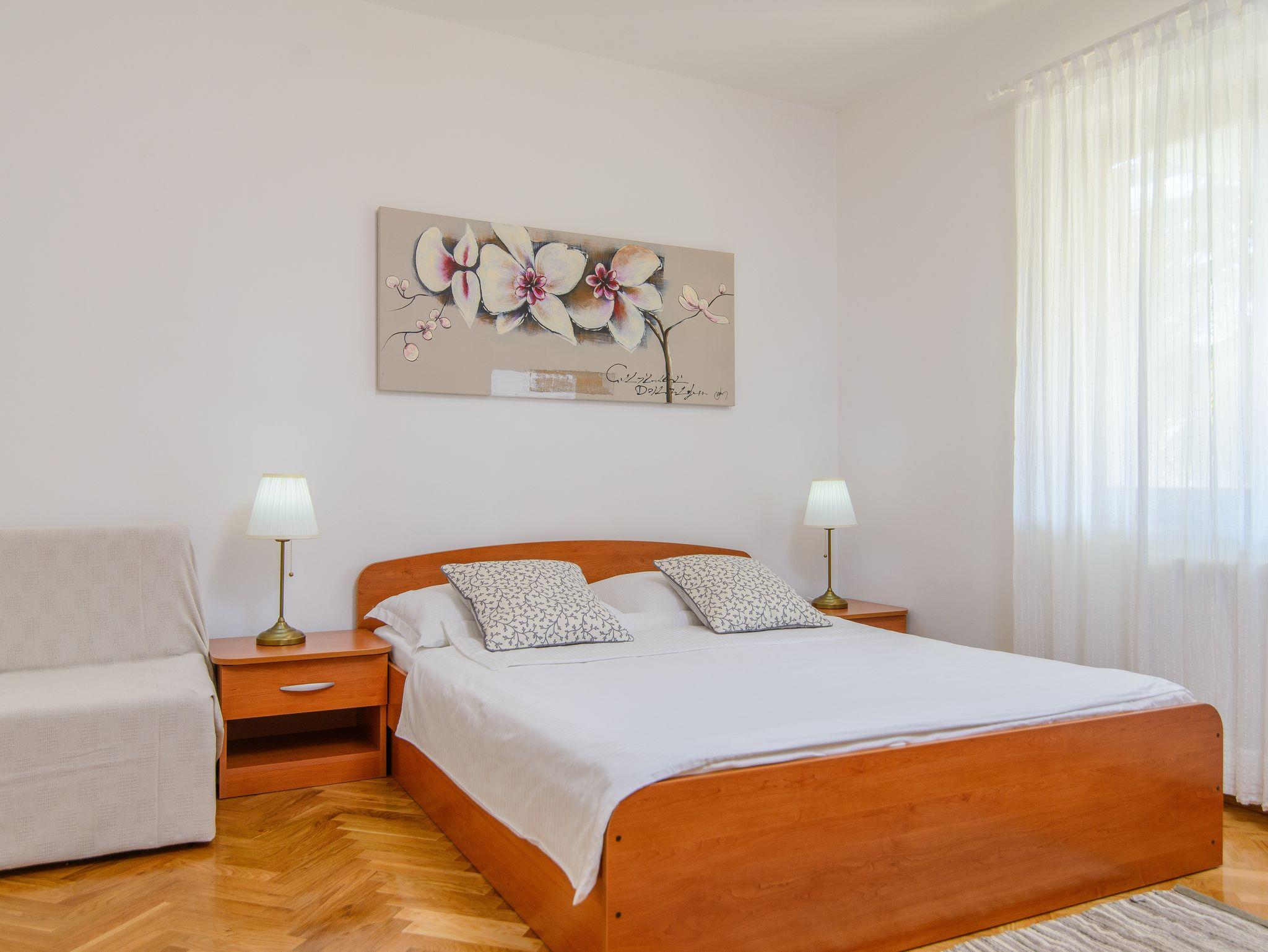 Ferienwohnung bietet Platz für 6 Gäste. Die Betten sind in Schlafzimmern, die es 2 gibt, und in Wohnzimmer, innerhalb einer Gesamtfläche von 68m2, angeordnet. Die Gäste haben eine eigene Terrasse zur Verfügung, auf der sie in warmen Sommernächten genießen können. Das Apartment bietet Meerblick. Es ist erlaubt, Speisen auf dem Gemeinschafts-Grill vorzubereiten. Während ihres Aufenthalts können Gäste das gemeinsam zur Nutzung stehende Schwimmbad benutzen. IM PREIS INBEGRIFFEN: Kurtaxe, Endreinigung, Klimatisierung, Zentralheizung, Pool, Parkplatz, Internet, Kinderbett, Bügeleisen, Bügelbrett, Föhn. Die Verfügbarkeit zusätzlicher Dienstleistungen in Ihrem reservierten Termin und die Preise derselben (falls nicht aufgeführt) müssen im Voraus überprüft werden. Zusätzliche Dienstleistungen die in der Zahlungsaufforderung nicht aufgeführt sind werden direkt beim Vermieter bezahlt, angenommen der Gast nutzt auch diese.