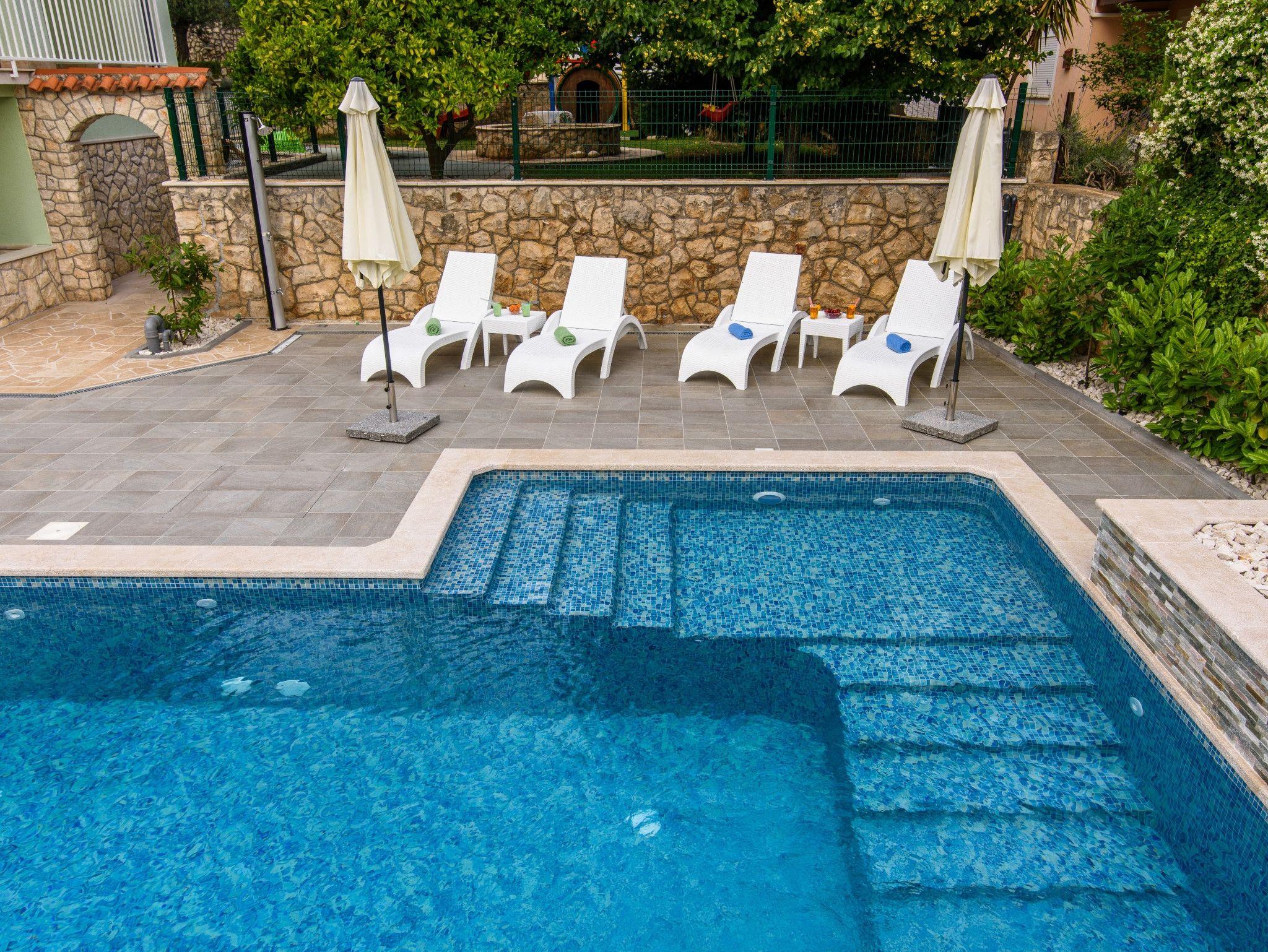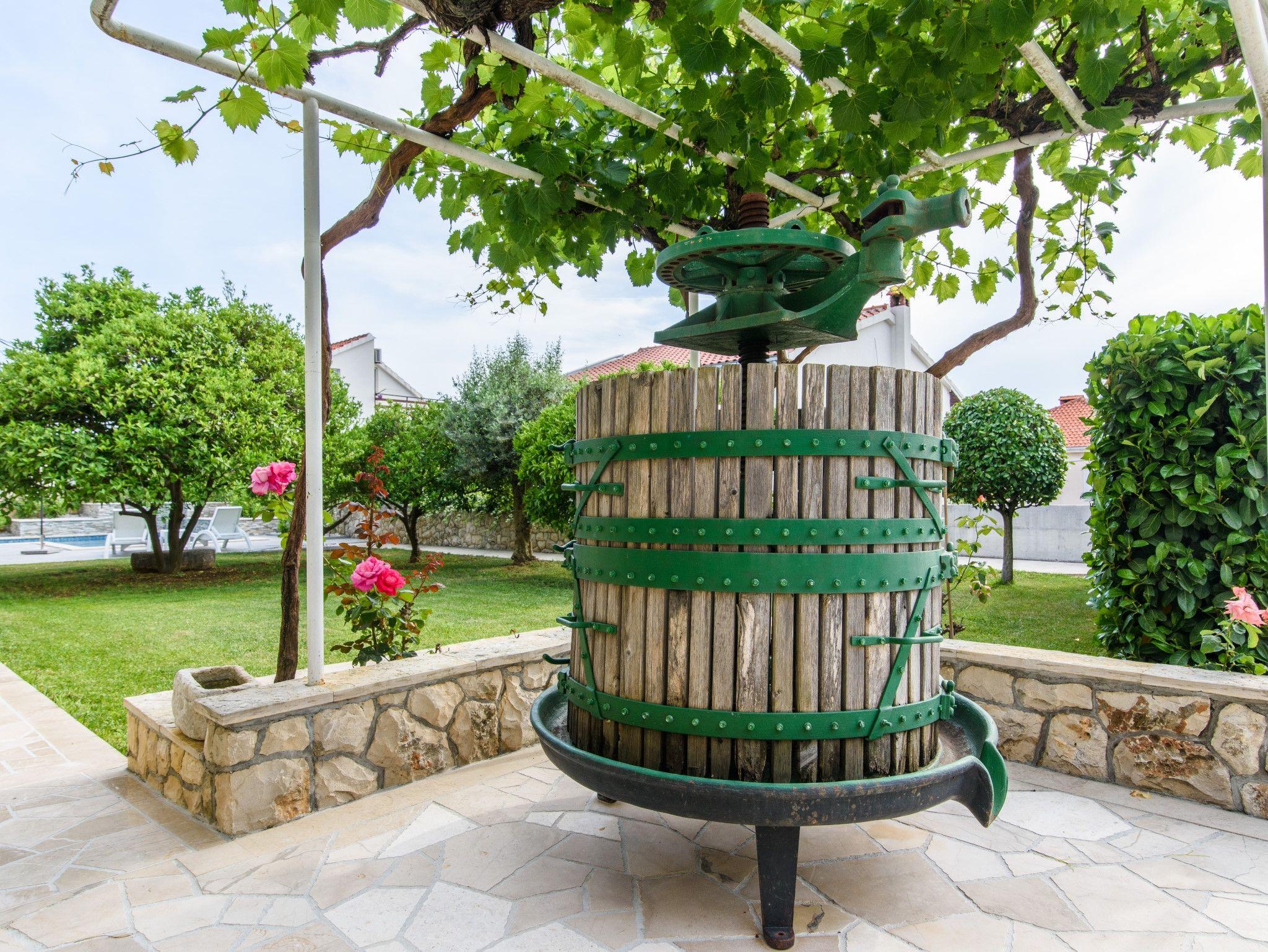 Umgebung des Objekts (Eingerichtet), Hof (700m2, Kinderbereich, Sitzbereich), Parkplatz (Anzahl der Parkplätze: 5, Entfernung vom Objekt: im Hof), Pool: gemeinsam, Dimensionen: 6.5m x 4m x 1.6m, Wassertyp: Salzwasser, Heizung: Ja, Grill: gemeinsam, WiFi Internet, Föhn, Bügeleisen, Bügelbrett, Kinderbett