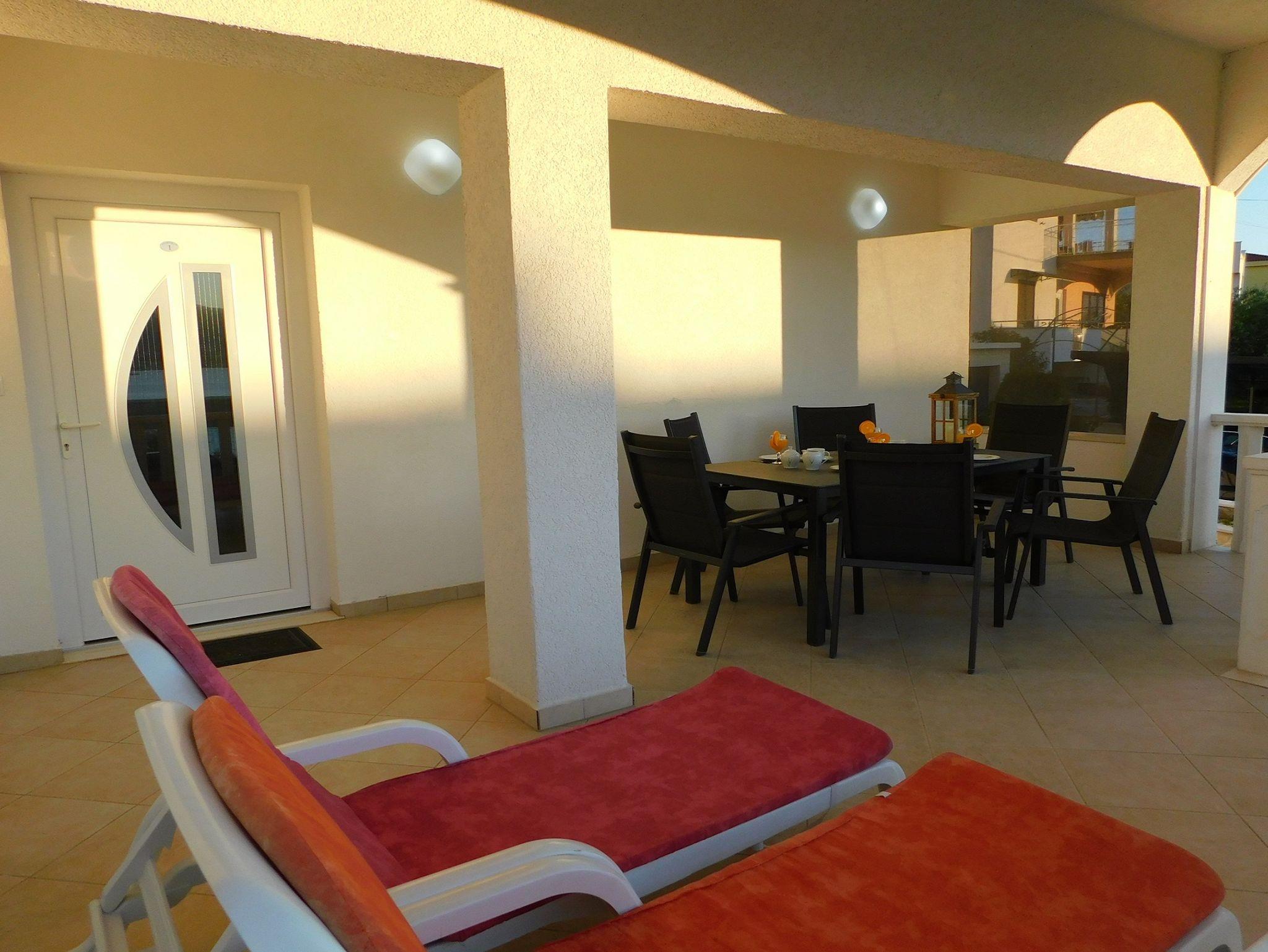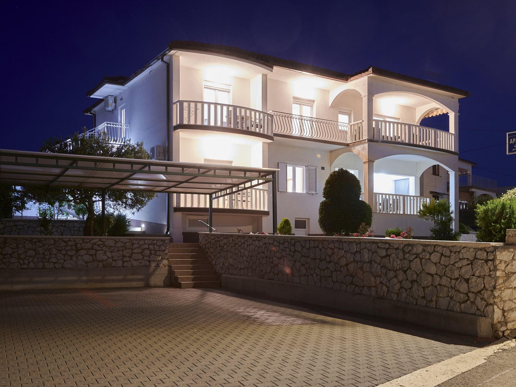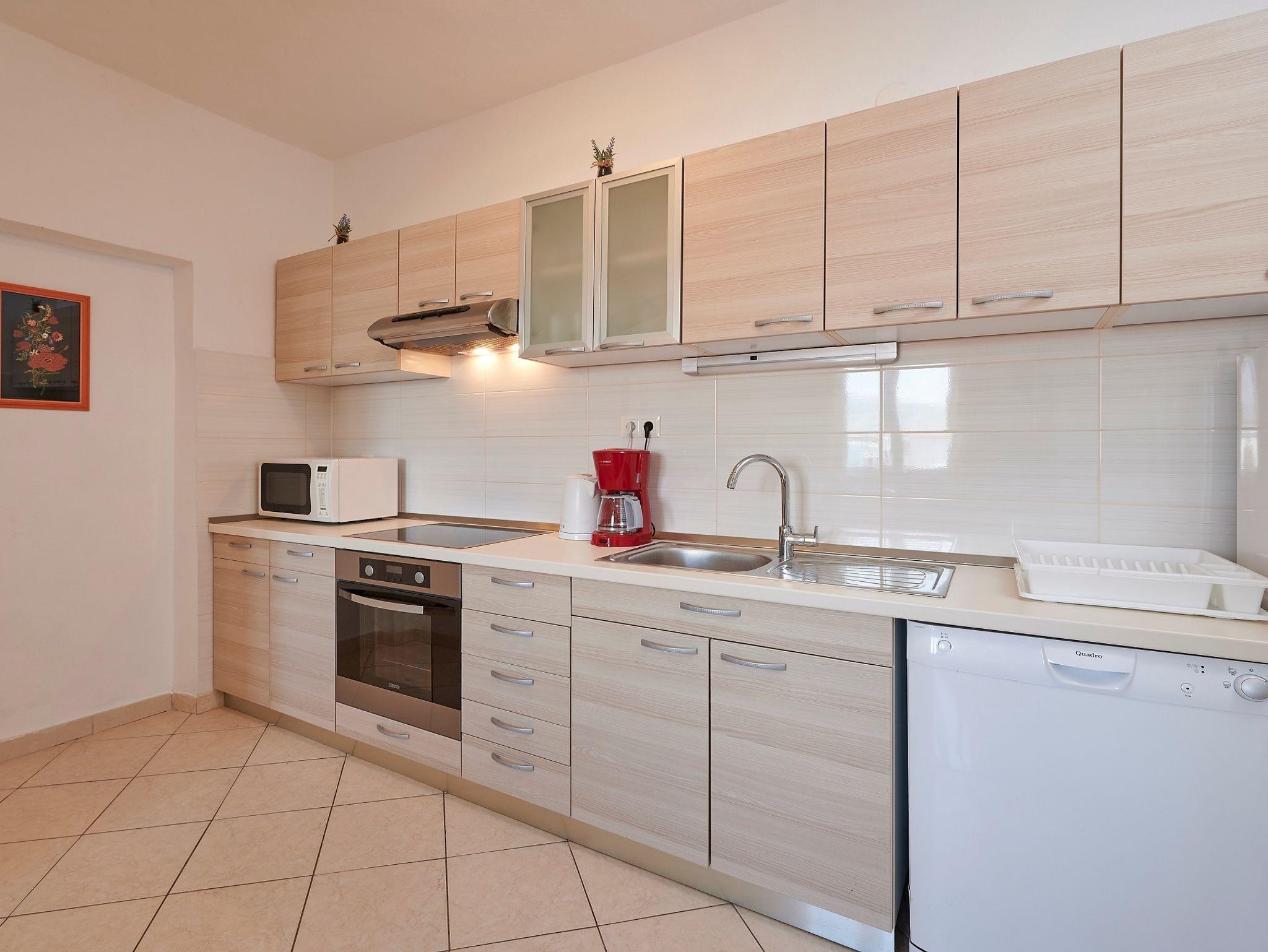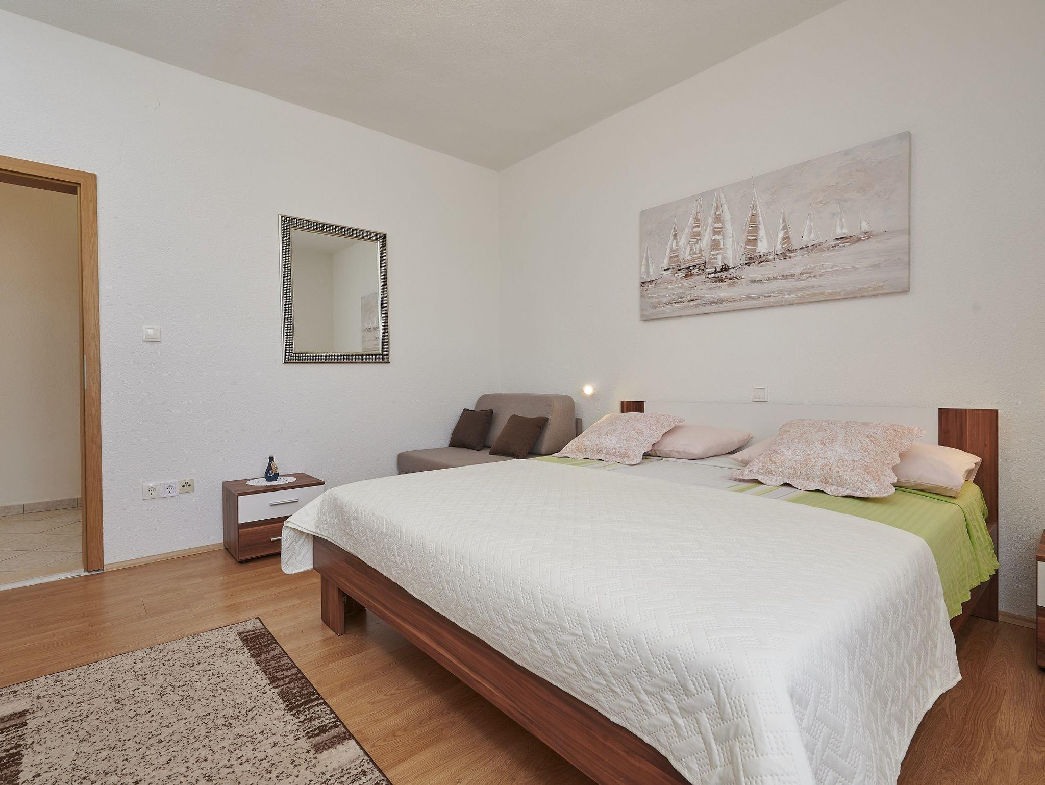 Ferienwohnung bietet Platz für 5 Gäste. Die Betten sind in Schlafzimmern, die es 2 gibt, und in Wohnzimmer, innerhalb einer Gesamtfläche von 43m2, angeordnet. Die Gäste haben eine eigene Terrasse zur Verfügung, auf der sie in warmen Sommernächten genießen können. Das Apartment bietet Meerblick. Es ist erlaubt, Speisen auf dem Gemeinschafts-Grill vorzubereiten. IM PREIS INBEGRIFFEN: Kurtaxe, Endreinigung, Klimatisierung, Parkplatz, Internet, Kinderbett, Bügeleisen, Bügelbrett, Föhn. VERBINDLICHE ZUSÄTZLICHE KOSTEN: Aufzahlung für Kurzaufenthalte (prozentualer Zuschlag pro Nächtigungsanzahl: 30% - 1, 20% - 2, 10% - 3). Die Verfügbarkeit zusätzlicher Dienstleistungen in Ihrem reservierten Termin und die Preise derselben (falls nicht aufgeführt) müssen im Voraus überprüft werden. Zusätzliche Dienstleistungen die in der Zahlungsaufforderung nicht aufgeführt sind werden direkt beim Vermieter bezahlt, angenommen der Gast nutzt auch diese.
