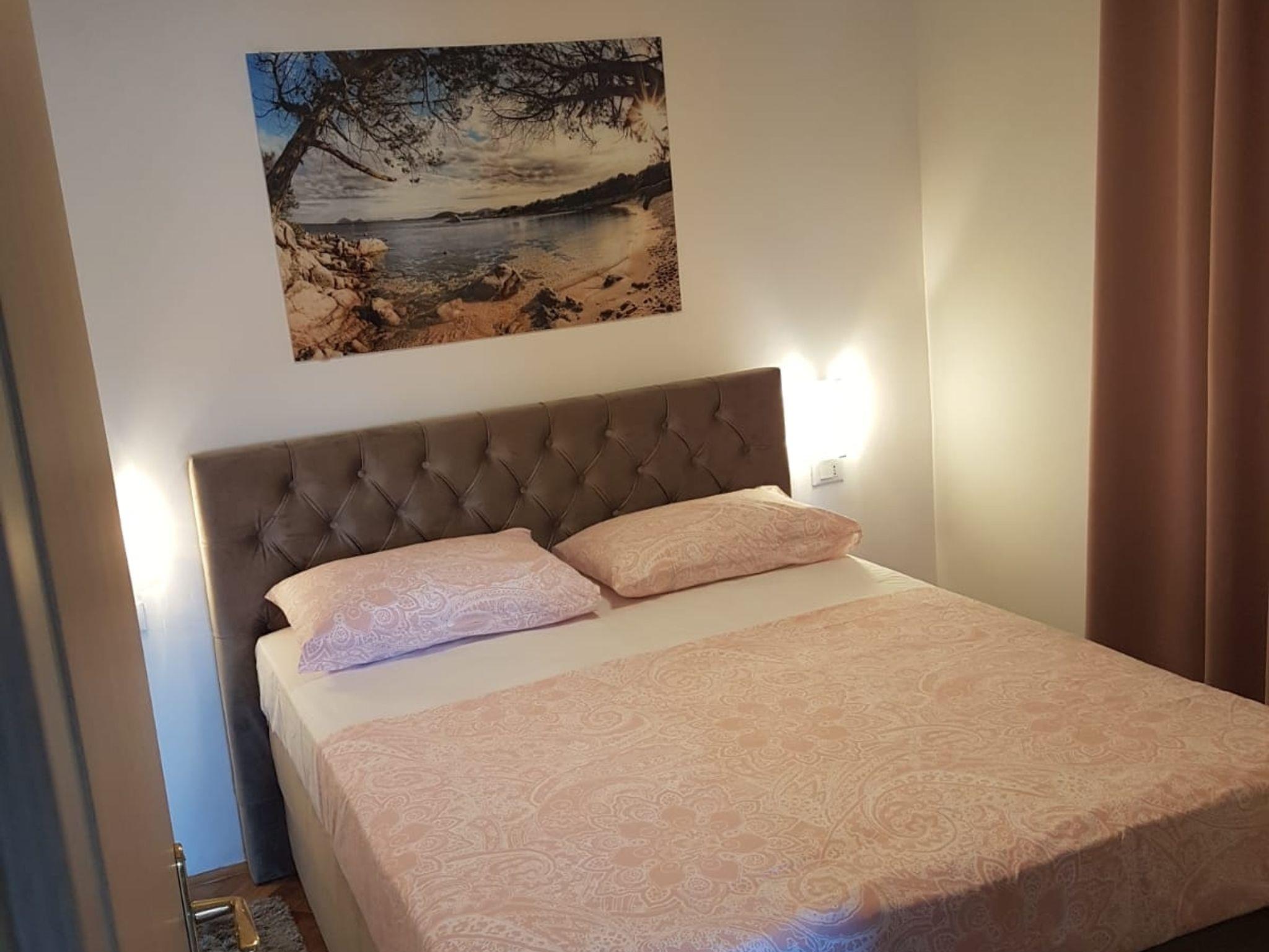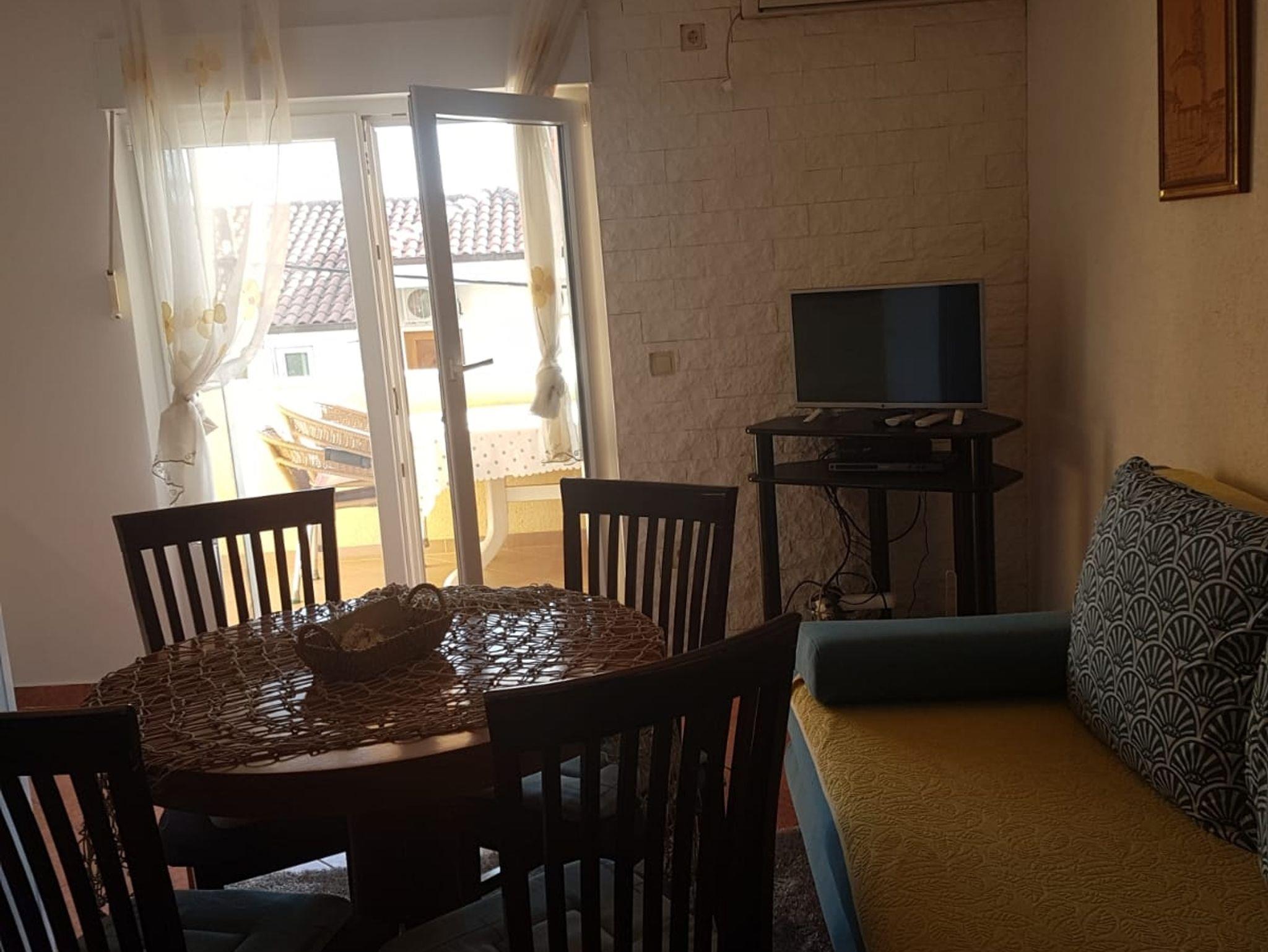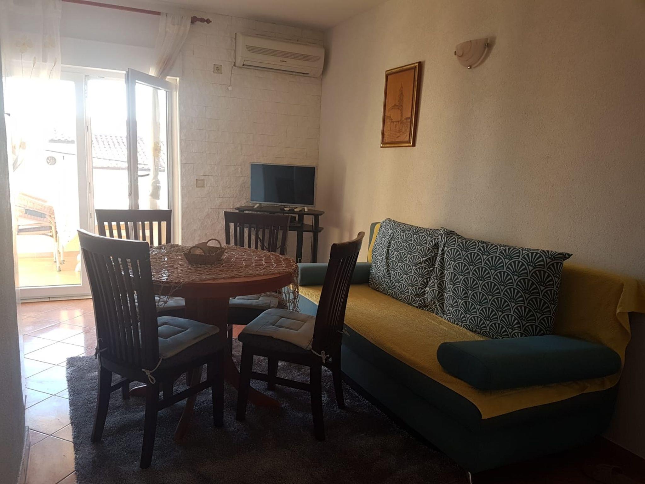 Ferienwohnung bietet Platz für 4 Gäste. Die Betten sind in Schlafzimmern, die es 1 gibt, und in Esszimmer, innerhalb einer Gesamtfläche von 32m2, angeordnet. Die Gäste haben eine eigene Terrasse zur Verfügung, auf der sie in warmen Sommernächten genießen können. Das Apartment bietet Meerblick. Es ist erlaubt, Speisen auf dem Gemeinschafts-Grill vorzubereiten. IM PREIS INBEGRIFFEN: Kurtaxe, Endreinigung, Klimatisierung, Parkplatz, Internet, Kinderbett, Bügeleisen, Bügelbrett, Föhn. VERBINDLICHE ZUSÄTZLICHE KOSTEN: Aufzahlung für Kurzaufenthalte (prozentualer Zuschlag pro Nächtigungsanzahl: 30% - 1, 20% - 2, 10% - 3). UNVERBINDLICHE ZUSÄTZLICHE KOSTEN: Bootsanlegeplatz (10,00 € pro Nacht). Die Verfügbarkeit zusätzlicher Dienstleistungen in Ihrem reservierten Termin und die Preise derselben (falls nicht aufgeführt) müssen im Voraus überprüft werden. Zusätzliche Dienstleistungen die in der Zahlungsaufforderung nicht aufgeführt sind werden direkt beim Vermieter bezahlt, angenommen der Gast nutzt auch diese. Ermäßigung auf den Grundpreis: Gratistag 14=13 (bei einem Aufenthalt von 14 Tagen oder mehr erhalten Sie einen Gratistag für den Aufenthalt bis 31.12.26).