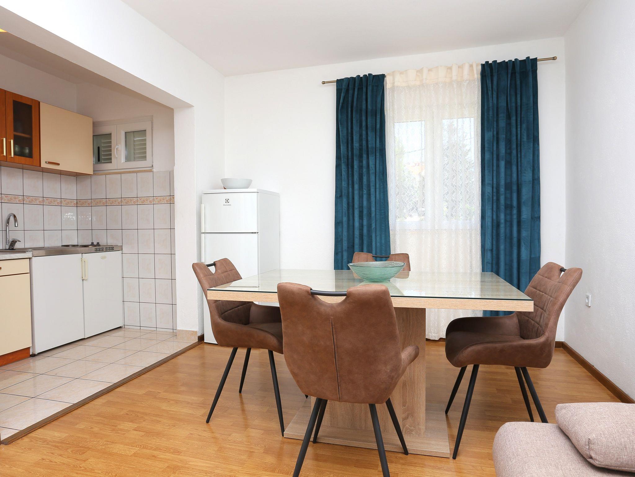 Ferienwohnung bietet Platz für 4 Gäste. Die Betten sind in Schlafzimmern, die es 2 gibt, innerhalb einer Gesamtfläche von 57m2, angeordnet. Die Gäste haben eine eigene Terrasse zur Verfügung, auf der sie in warmen Sommernächten genießen können. Das Apartment bietet Meerblick. Es ist erlaubt, Speisen auf dem Gemeinschafts-Grill vorzubereiten. IM PREIS INBEGRIFFEN: Kurtaxe, Endreinigung, Klimatisierung, Parkplatz, Internet, Föhn. VERBINDLICHE ZUSÄTZLICHE KOSTEN: Aufzahlung für Kurzaufenthalte (prozentualer Zuschlag pro Nächtigungsanzahl: 30% - 1, 20% - 2, 10% - 3). UNVERBINDLICHE ZUSÄTZLICHE KOSTEN: Bootsanlegeplatz (10,00 € pro Nacht). Die Verfügbarkeit zusätzlicher Dienstleistungen in Ihrem reservierten Termin und die Preise derselben (falls nicht aufgeführt) müssen im Voraus überprüft werden. Zusätzliche Dienstleistungen die in der Zahlungsaufforderung nicht aufgeführt sind werden direkt beim Vermieter bezahlt, angenommen der Gast nutzt auch diese.