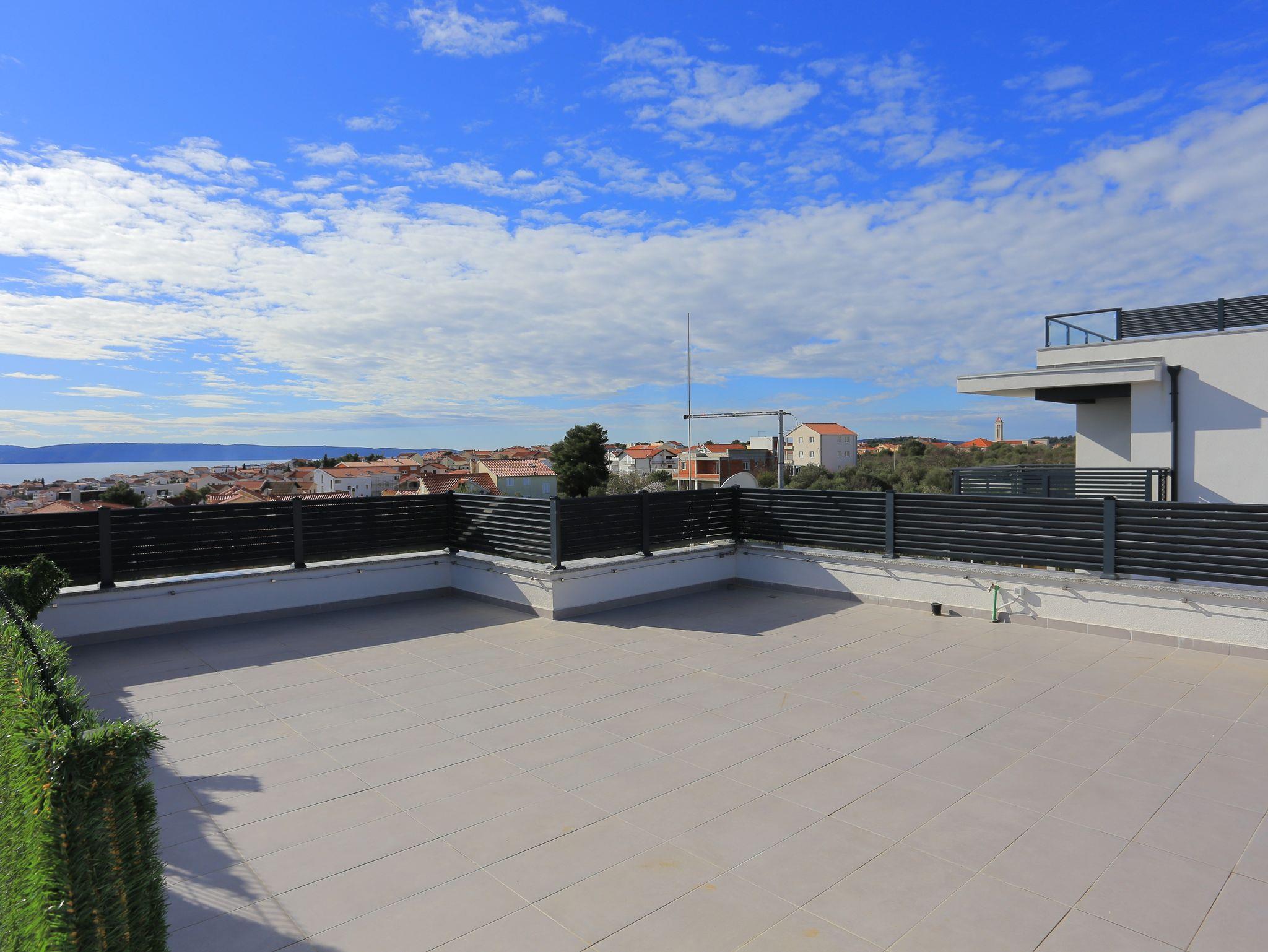 Ferienwohnung bietet Platz für 4 Gäste. Die Betten sind in Schlafzimmern, die es 2 gibt, innerhalb einer Gesamtfläche von 53m2, angeordnet. Die Gäste haben eine eigene Terrasse zur Verfügung, auf der sie in warmen Sommernächten genießen können. Das Apartment bietet Meerblick. Es ist erlaubt, Speisen auf dem Gemeinschafts-Grill vorzubereiten. Während ihres Aufenthalts können Gäste das gemeinsam zur Nutzung stehende Schwimmbad benutzen. Unterkunftseinheit hat Räume, die von dem Rest der Einheit abgetrennt werden. In der gebuchten Unterkunftseinheit zahlt man am Ort ein Depositum ( der Preis ist an der Internetseite angeführt ). IM PREIS INBEGRIFFEN: Kurtaxe, Endreinigung, Klimatisierung, Pool, Parkplatz, Internet, Bügeleisen, Bügelbrett, Föhn, 1 Bett für Kinder (im Preis enthalten). VERBINDLICHE ZUSÄTZLICHE KOSTEN: Kaution (200,00 € Einmalzahlung), Aufzahlung für Kurzaufenthalte (prozentualer Zuschlag pro Nächtigungsanzahl: 30% - 1, 20% - 2, 10% - 3). Die Verfügbarkeit zusätzlicher Dienstleistungen in Ihrem reservierten Termin und die Preise derselben (falls nicht aufgeführt) müssen im Voraus überprüft werden. Zusätzliche Dienstleistungen die in der Zahlungsaufforderung nicht aufgeführt sind werden direkt beim Vermieter bezahlt, angenommen der Gast nutzt auch diese. Ermäßigung auf den Grundpreis: Gratistag 14=13 (bei einem Aufenthalt von 14 Tagen oder mehr erhalten Sie einen Gratistag für den Aufenthalt bis 31.12.26).