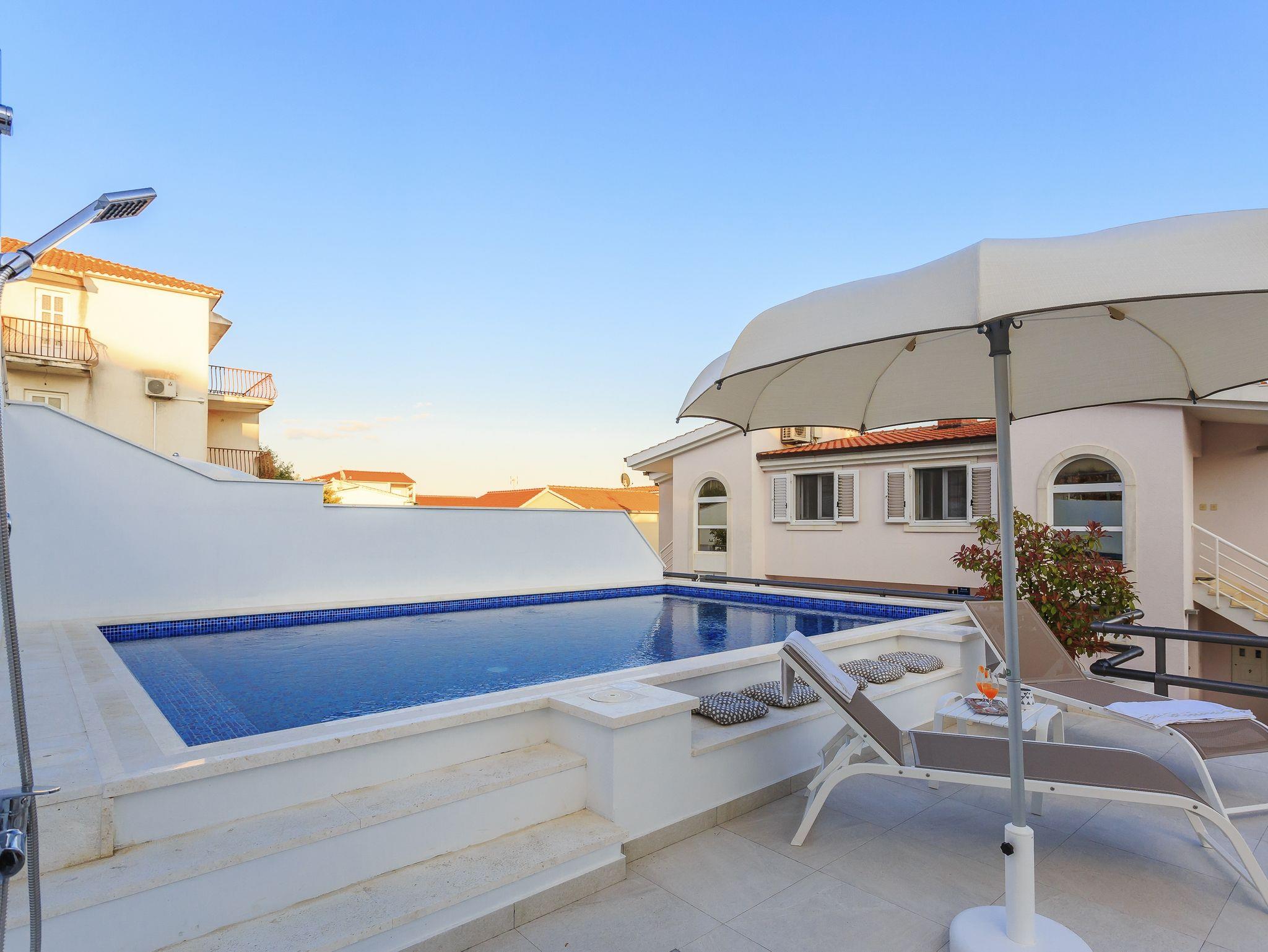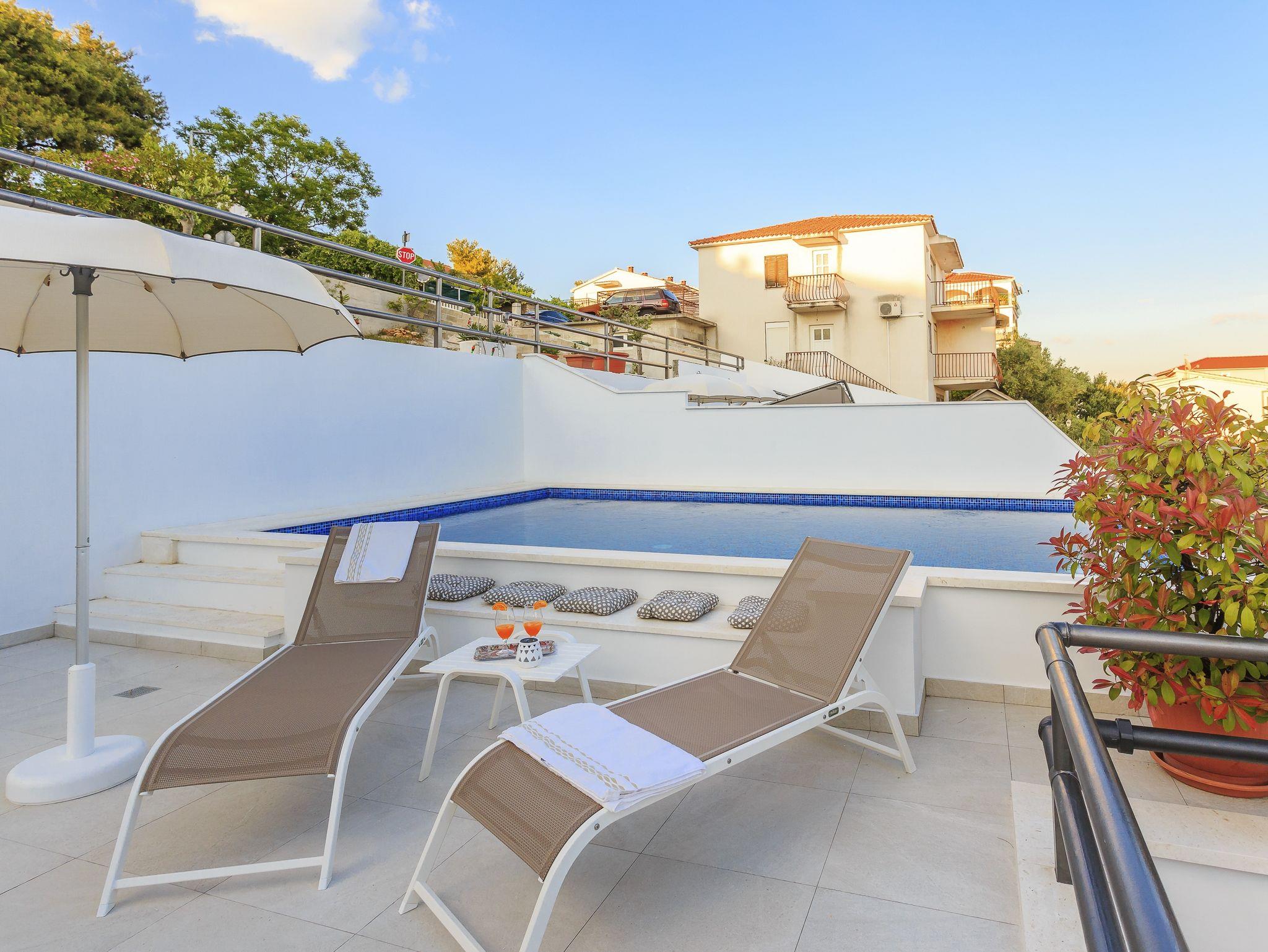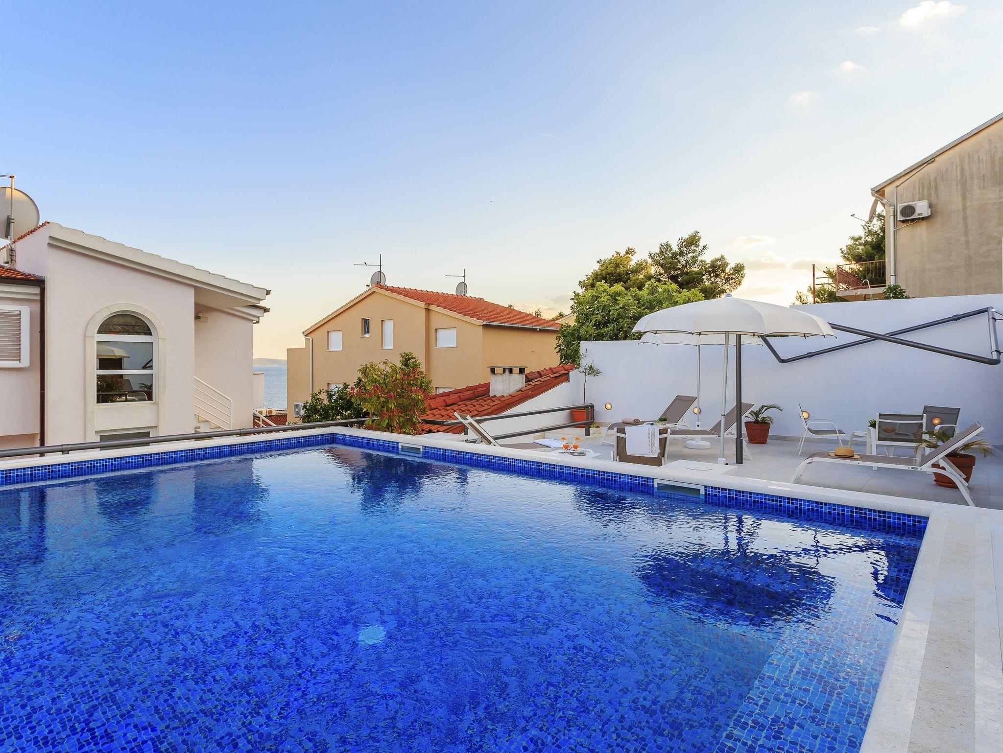 Ferienwohnungen am Meer mit Pool Rastici, Ciovo - 1084, 3-Zimmer-Ferienwohnung mit Terrasse und Meerblick Rastici, Ciovo A-1084-a