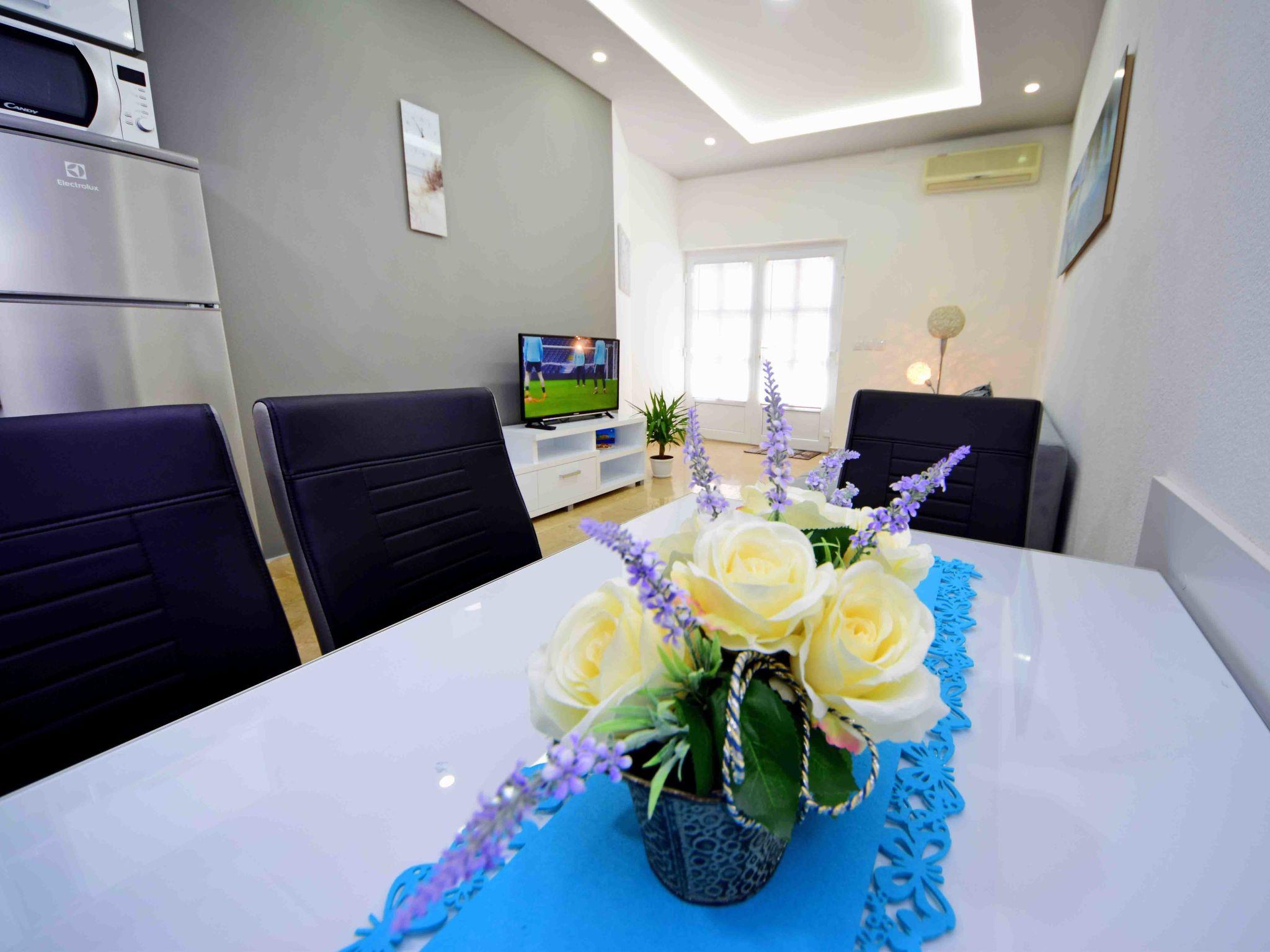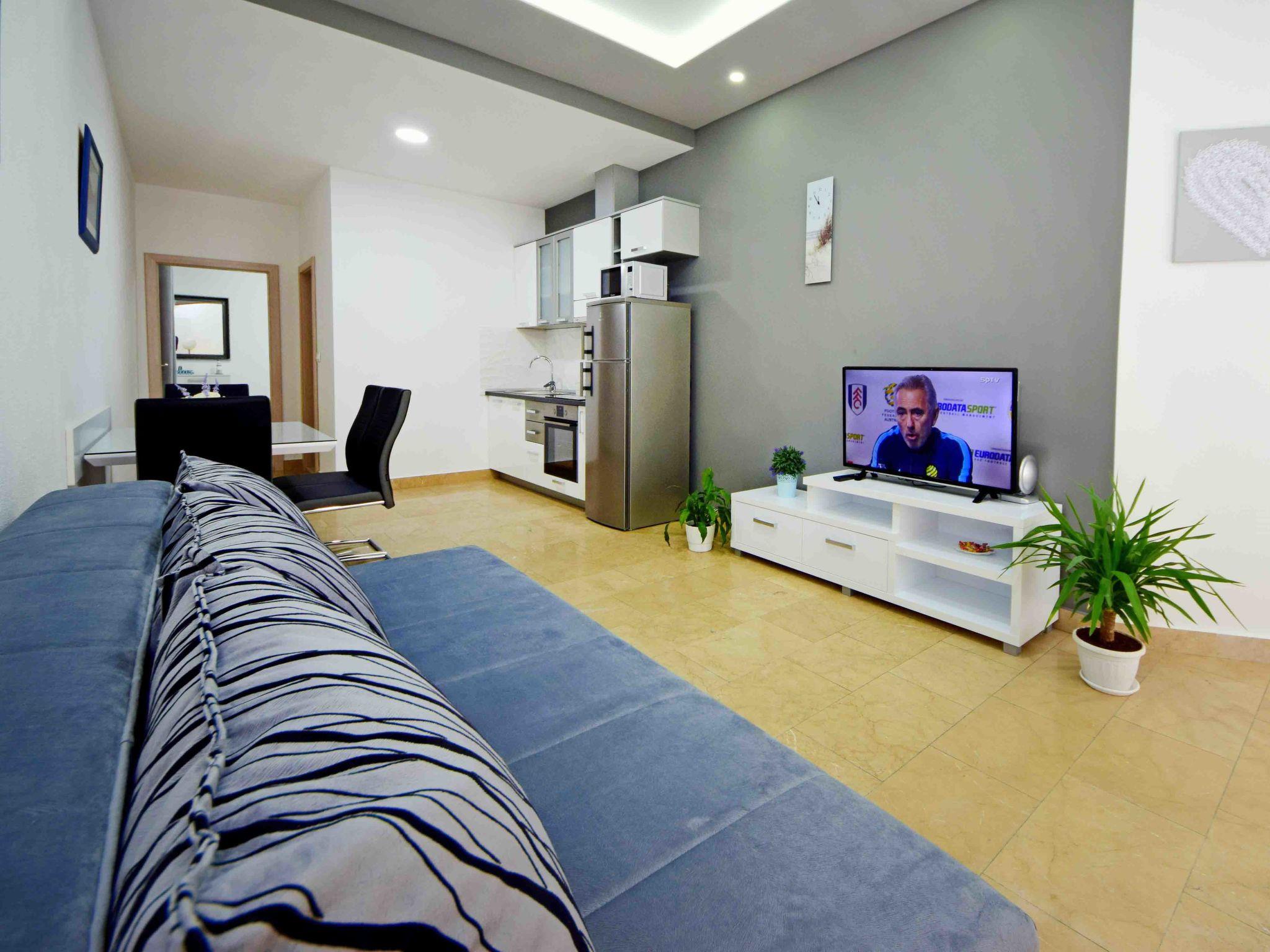 "Niko 2", 2-room apartment 45 m2, on the ground floor, south facing position. Living/dining room with 1 double sofabed (160 cm, length 200 cm), TV (flat screen), air conditioning. 1 room with 1 french bed (160 cm, length 200 cm). Open kitchen (oven, 4 ceramic glass hob hotplates, microwave, freezer). Shower/WC. Facilities: Internet (WiFi, free).