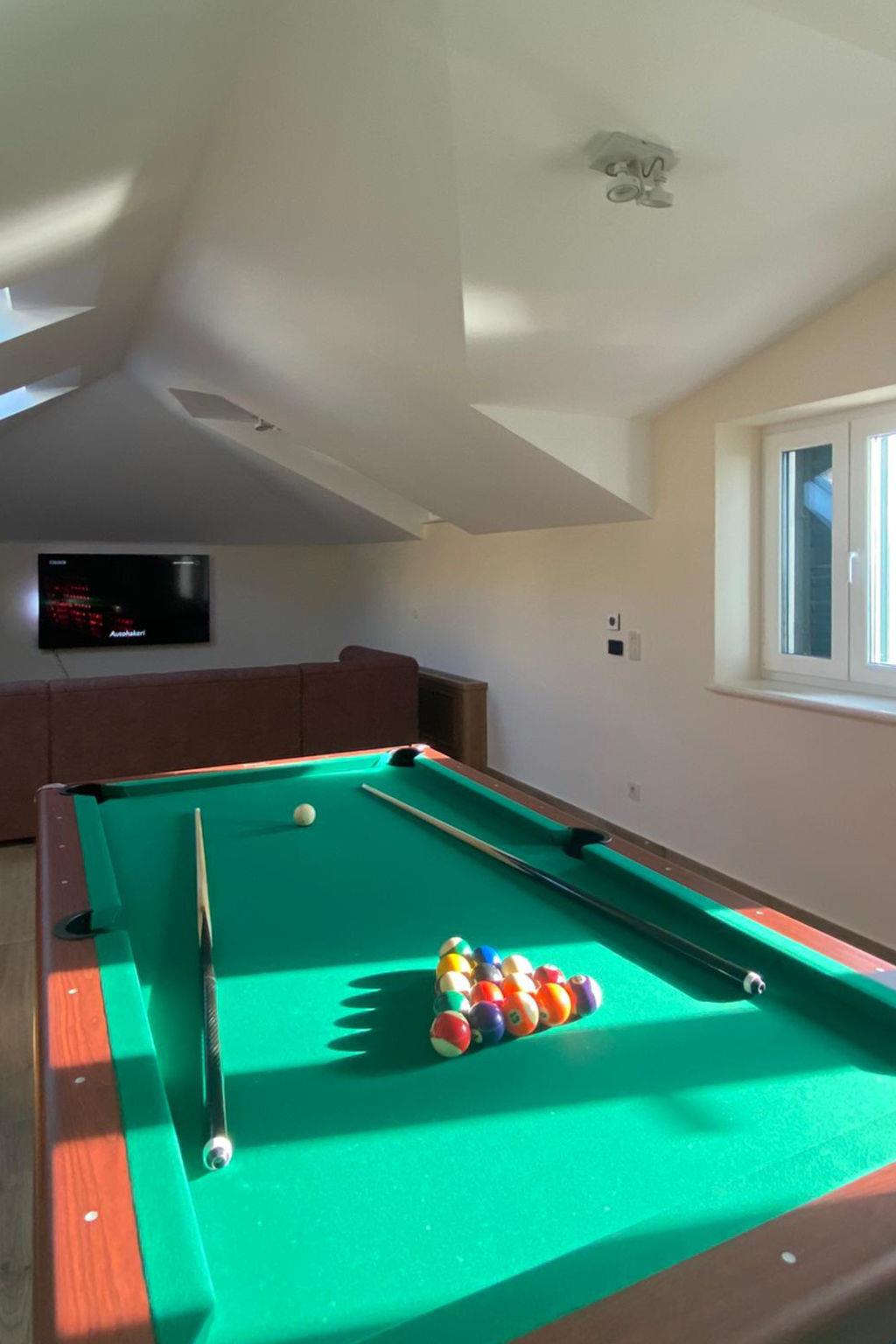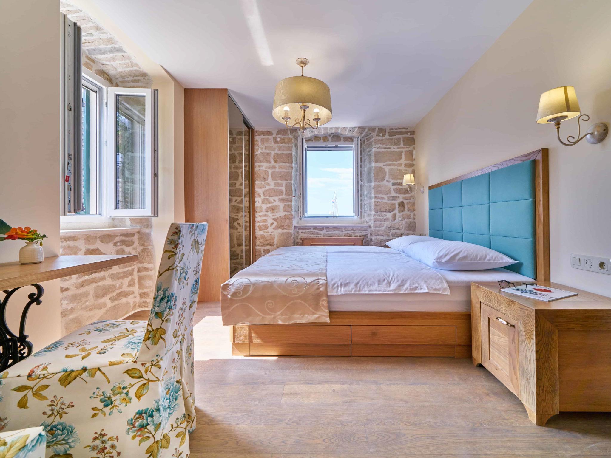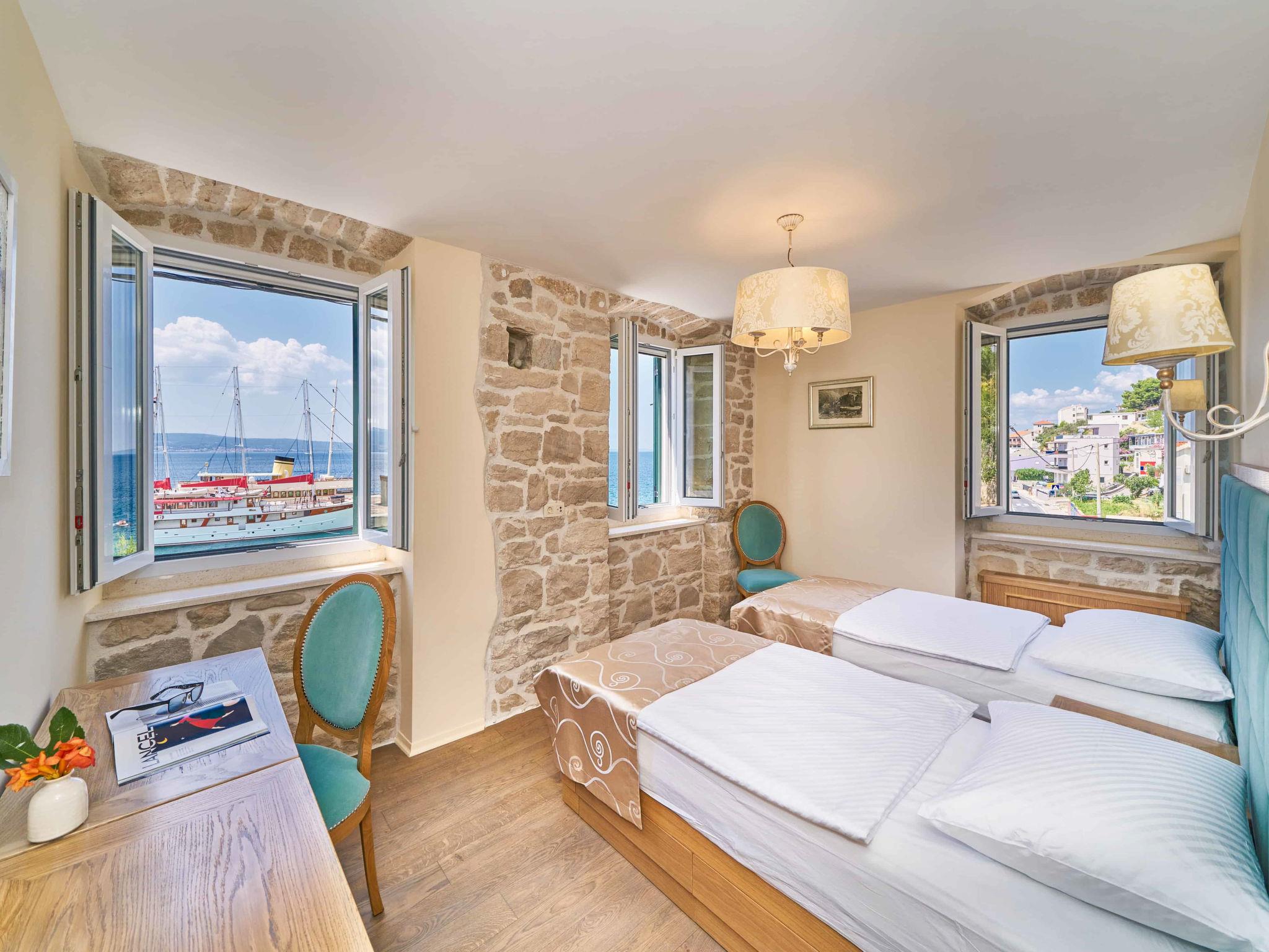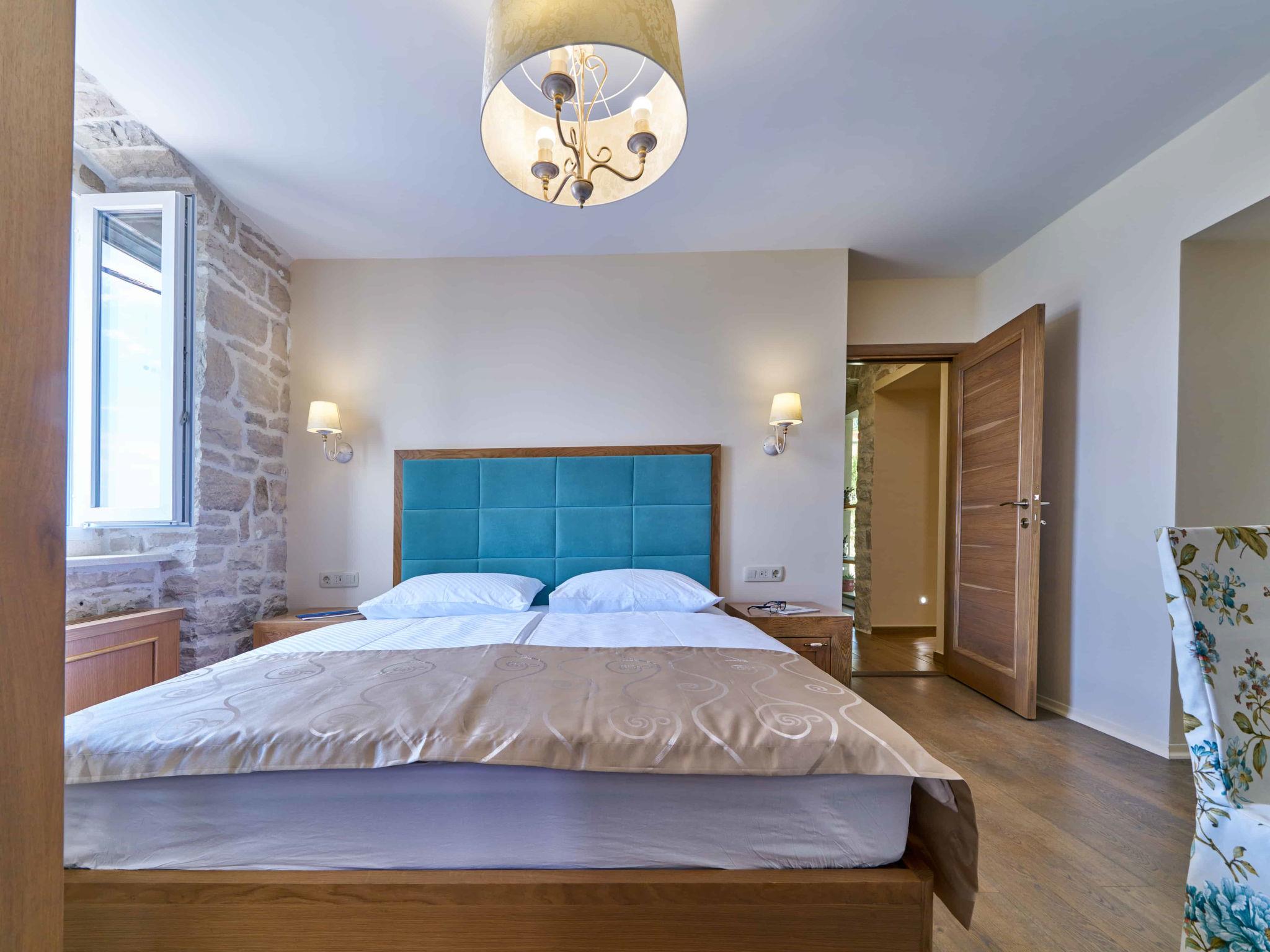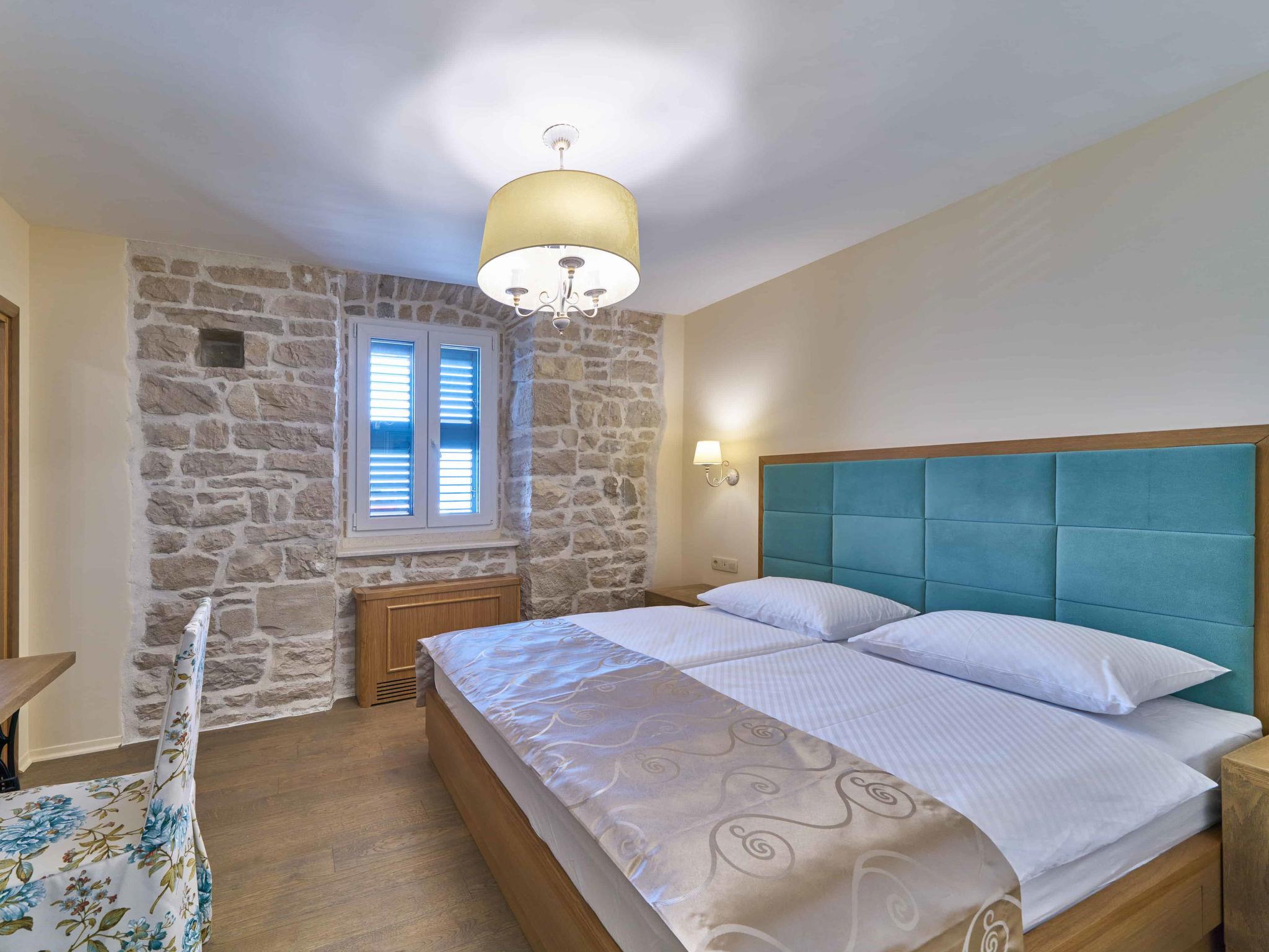 Beautiful villa "Mladenka", 2 storeys, built in 1880, renovated in 2020. In the hamlet Suhi Potok 7 km from the centre of Omiš, in a sunny position, 20 m from the sea, 20 m from the beach, road to cross. Private: property 1'200 m2 (fenced), swimming pool angular, heated (4 x 7 m, seasonal availability: 01.May. - 15.Oct.) with internal staircase. WC in the pool area, outdoor shower, hot tub, terrace (70 m2), garden furniture, barbecue, barbecue house, pool maintenance by the owner/gardener. In the house: internet access, sauna, billiard table, roof terrace, air conditioning, burglar alarm system, washing machine, tumble dryer. Room cleaning daily on request (extra). Breakfast on request (extra). Parking (for 4 cars) at the house on the premises, single garage. Shop 300 m, supermarket 2 km, restaurant 400 m, bus stop 130 m, sandy beach 20 m. Please note: main road close by 5 m from the property. Airfield 35 km from the property. Roof terrace (80 m2, terrace furniture).