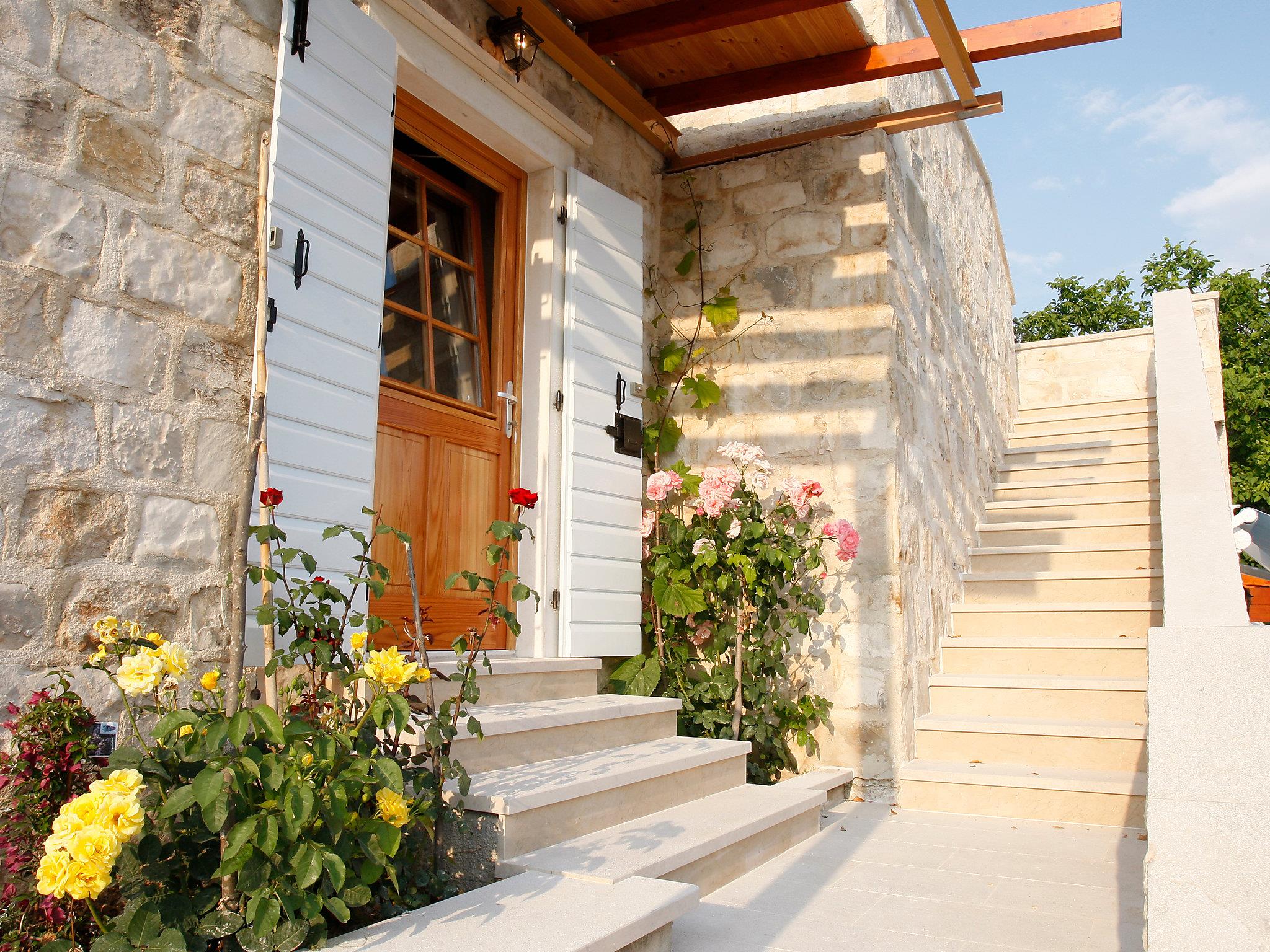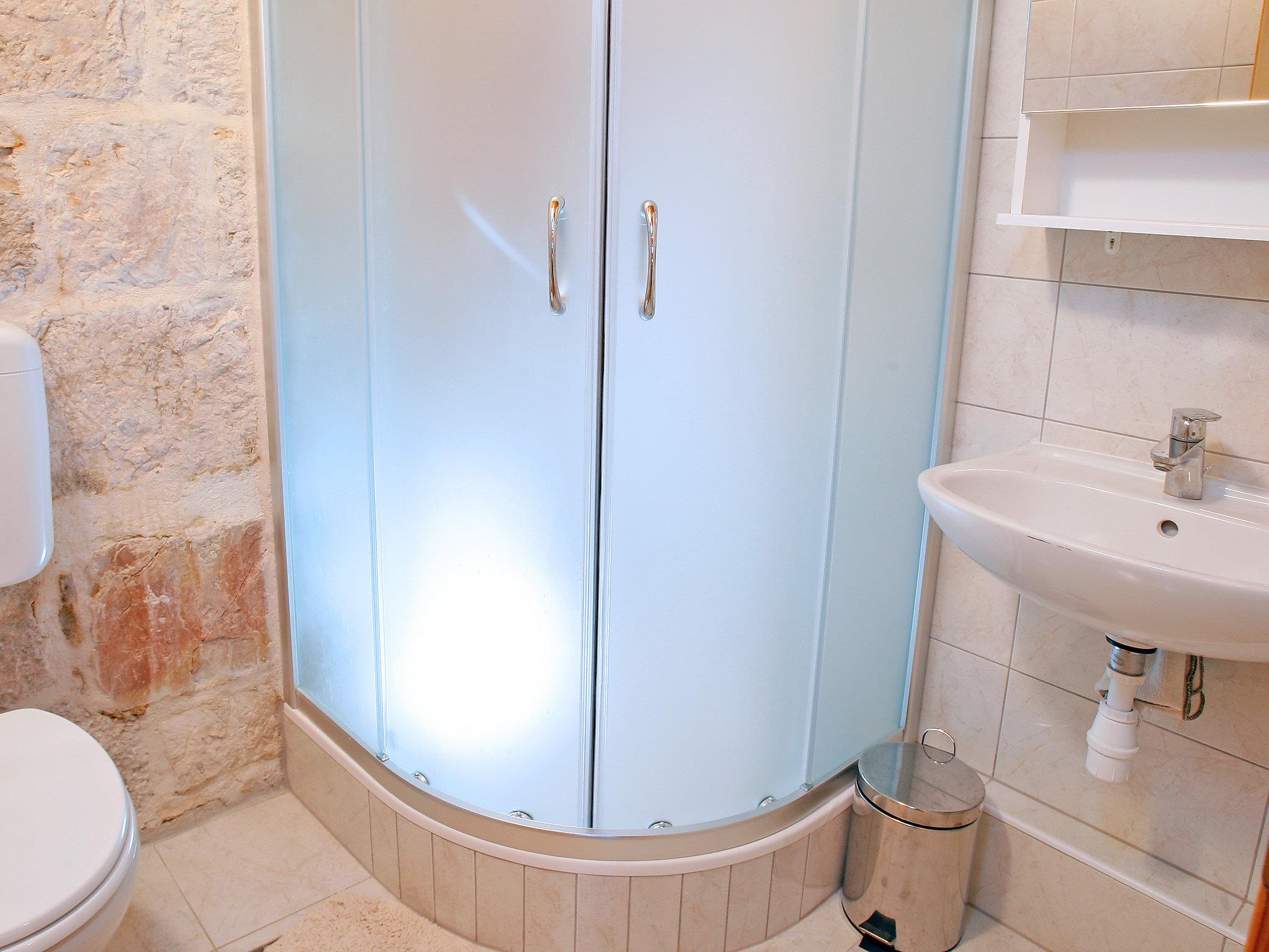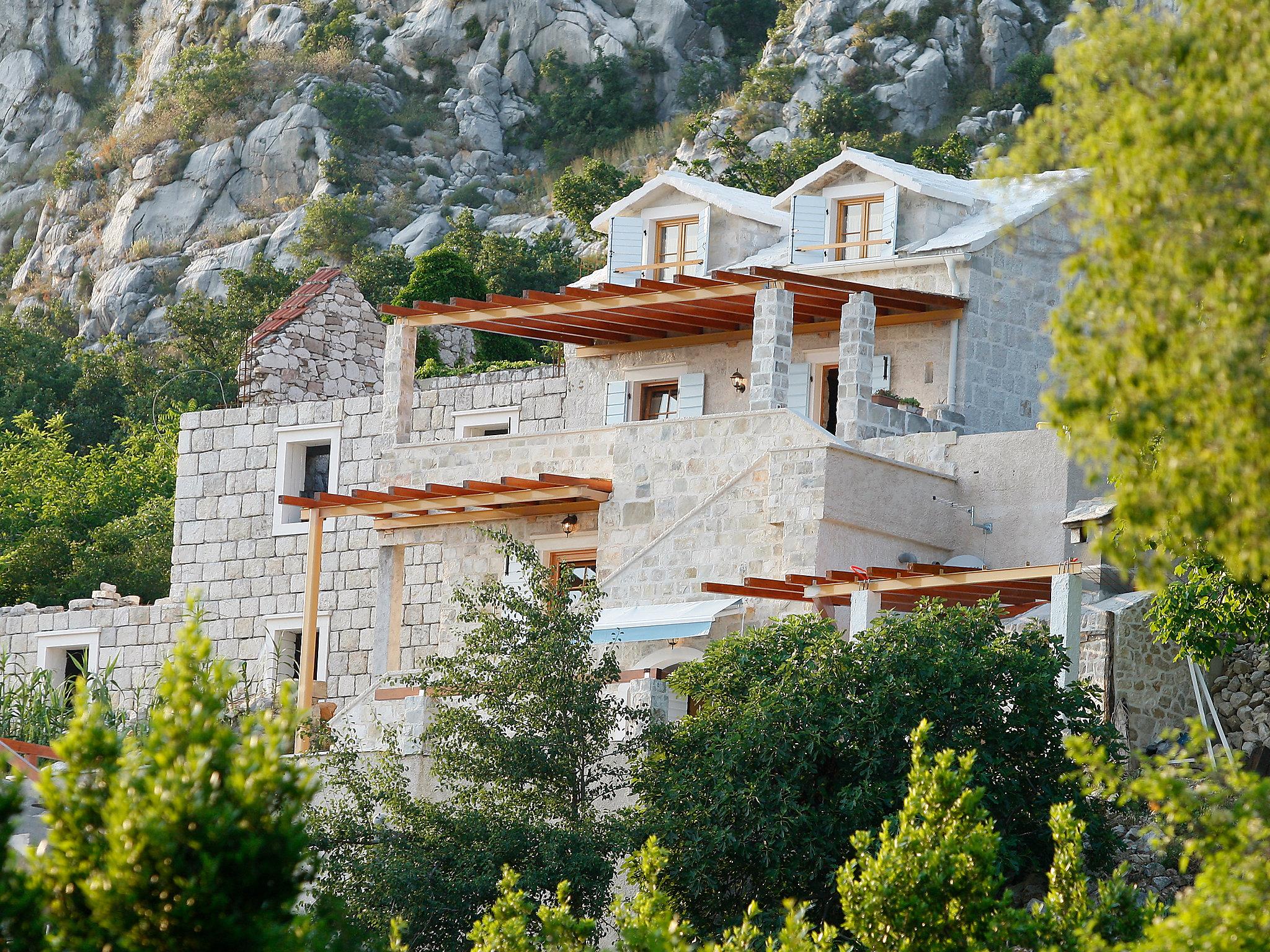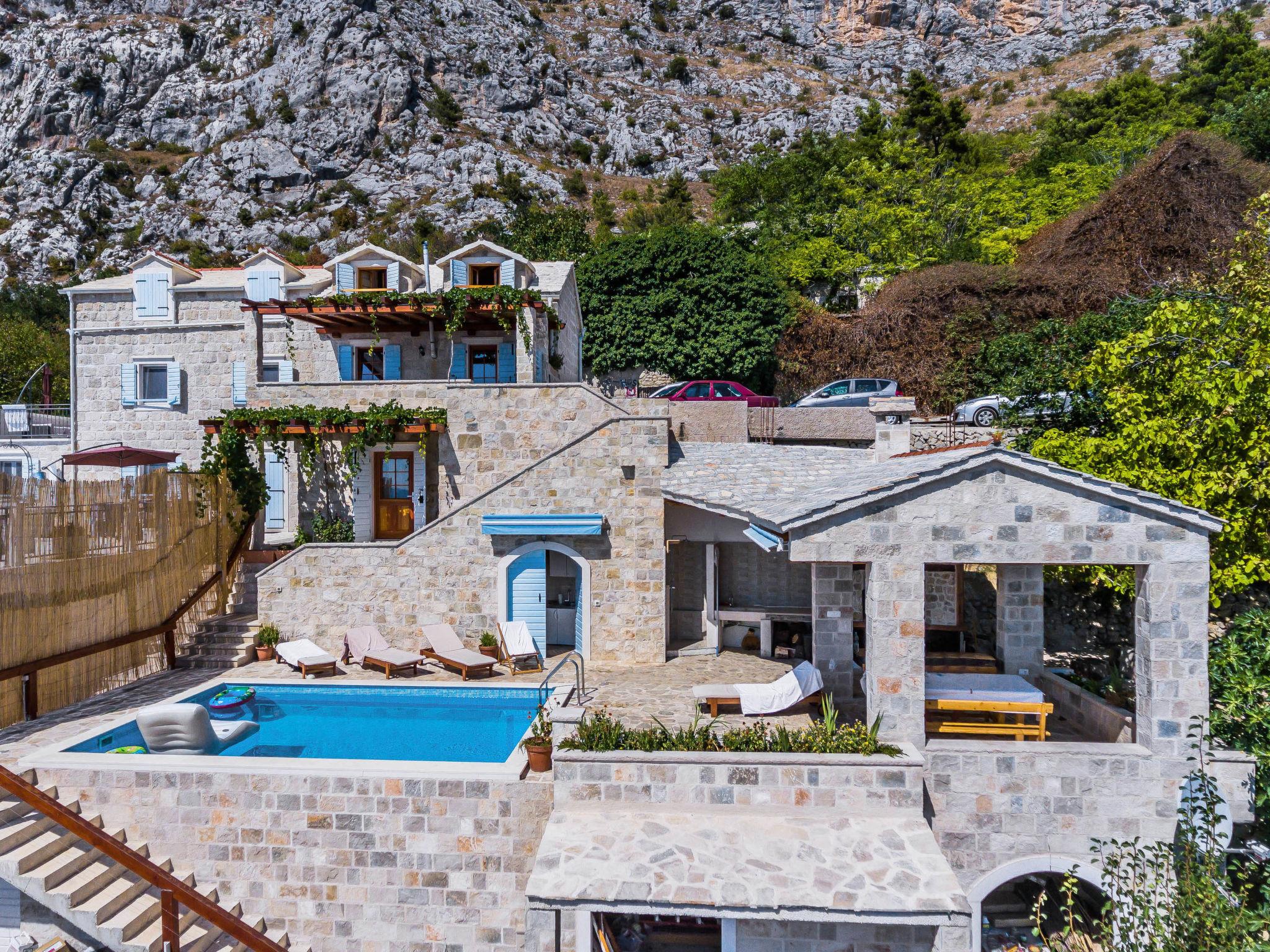 Semi-detached house "Juraj", 3 storeys. In the hamlet Krug 1 km from the centre of Jesenice, 9 km from the centre of Omiš, in a quiet, sunny position, 2.5 km from the sea, 2.5 km from the beach. Private: property 400 m2 (fenced), swimming pool angular (4 x 6 m, depth 150 cm, seasonal availability: 01.May. - 30.Sep.). Outdoor shower, pool house with WC and cooking stove, terrace (20 m2), garden furniture, barbecue. In the house: internet access. Parking (for 2 cars) at the house on the premises. Shop 2.3 km, restaurant 1 km, bus stop 3.6 km, pebble beach 2.5 km, rocky beach 2.5 km. By groups of young people double deposit is requested on arrival.