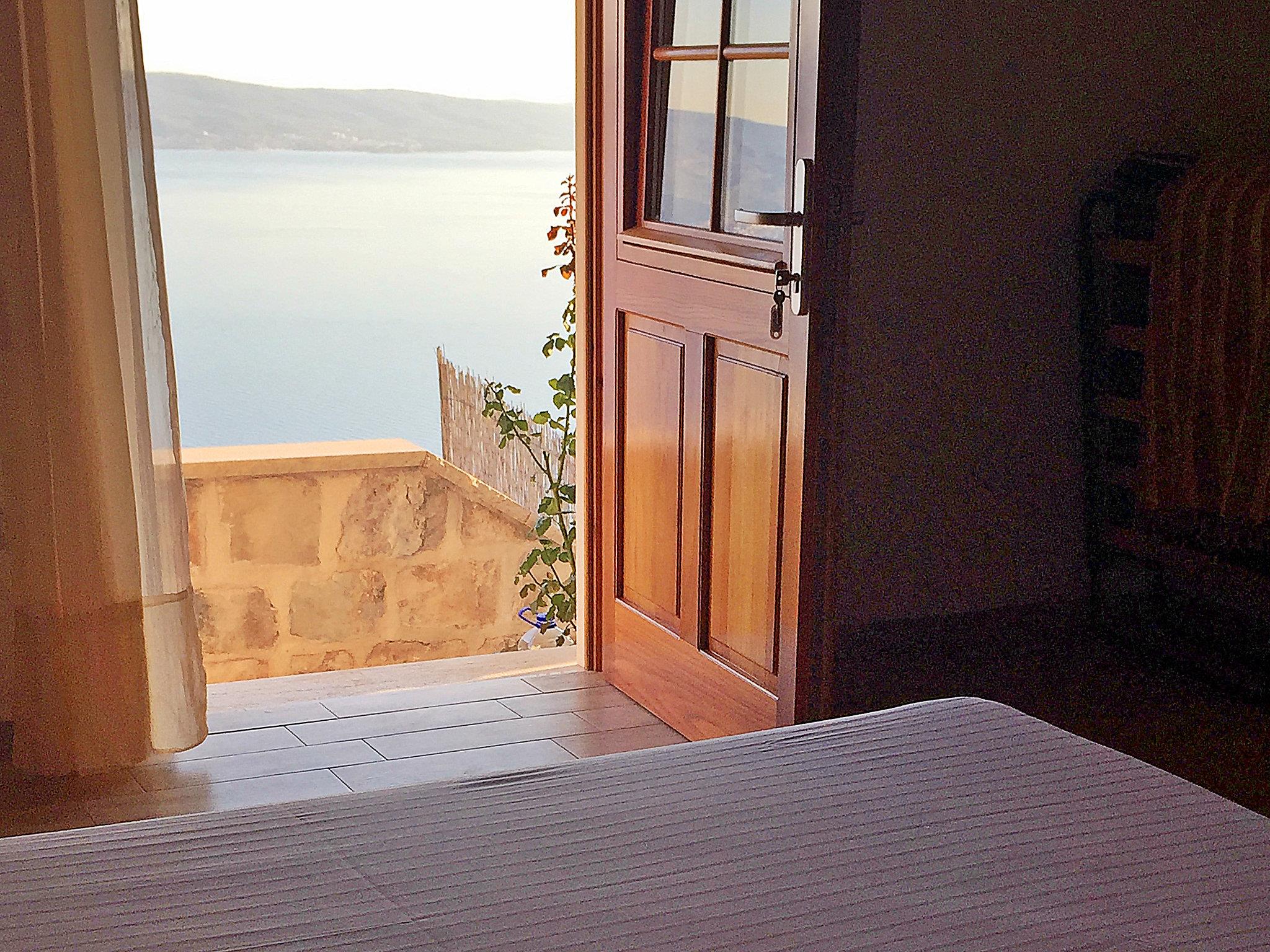 3-room semi-detached house 80 m2 on 3 levels, south facing position. Living/dining room with 1 double sofabed and satellite TV (flat screen). Exit to the terrace. Open kitchen (dishwasher, 2 ceramic glass hob hotplates, microwave, freezer, electric coffee machine). Shower/WC. On the lower ground floor: (exterior staircase), 1 room with 1 double bed (2 x 90 cm, length 200 cm), shower/WC and satellite TV (flat screen), air conditioning. Upper floor: 1 room with sloping ceilings, ceiling height 100 - 230 cm with 1 double bed (2 x 90 cm, length 200 cm), shower/WC and satellite TV (flat screen), air conditioning. Terrace 30 m2, roofed. Terrace furniture, deck chairs. Marvellous view of the sea. Facilities: children's high chair, baby cot. Internet (WiFi, free). 1 small pet/ dog allowed.