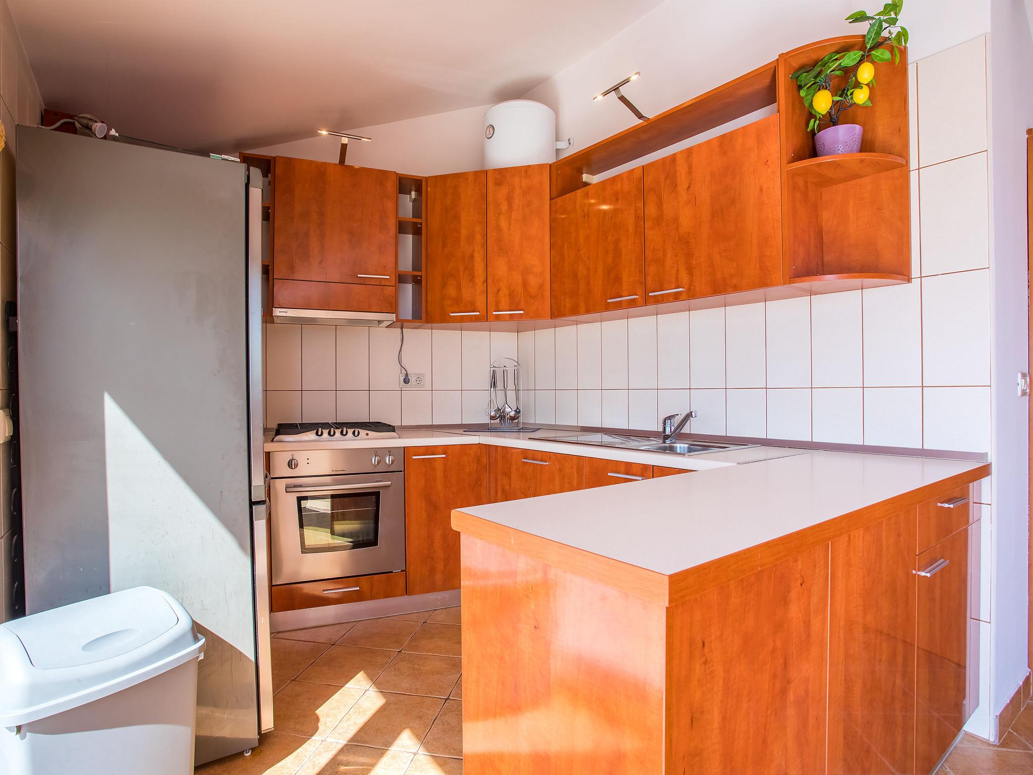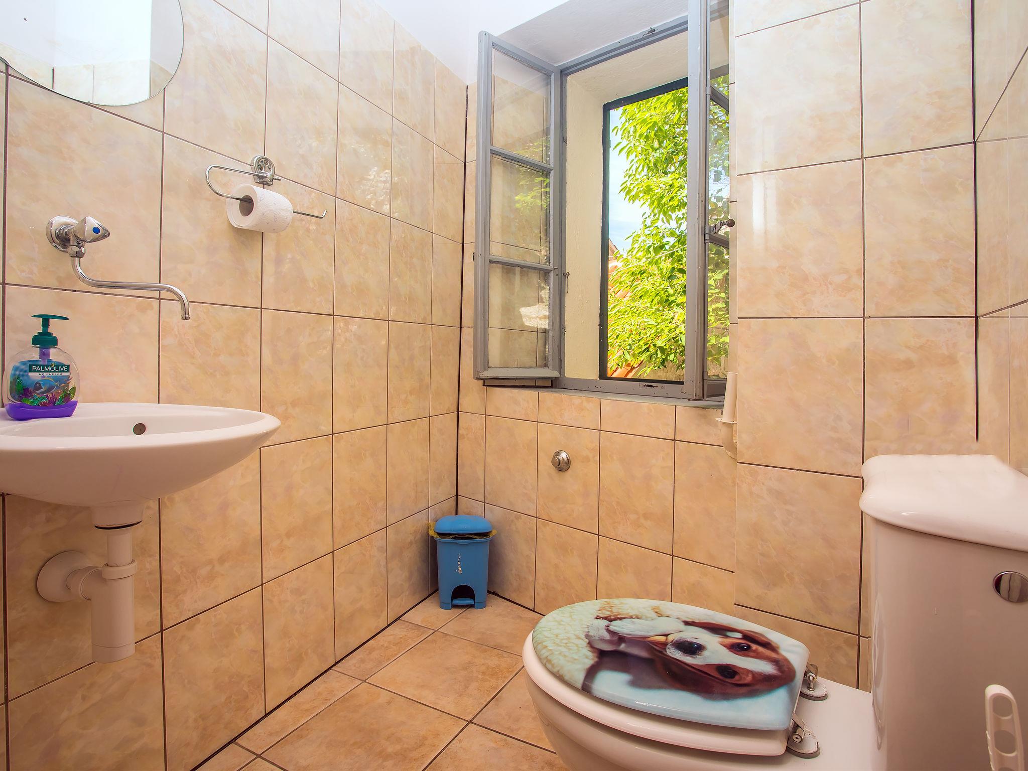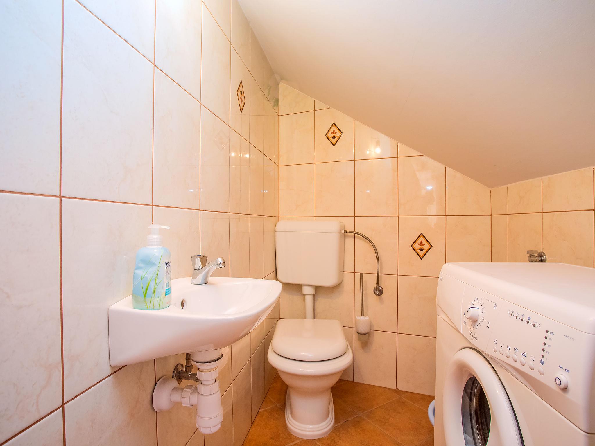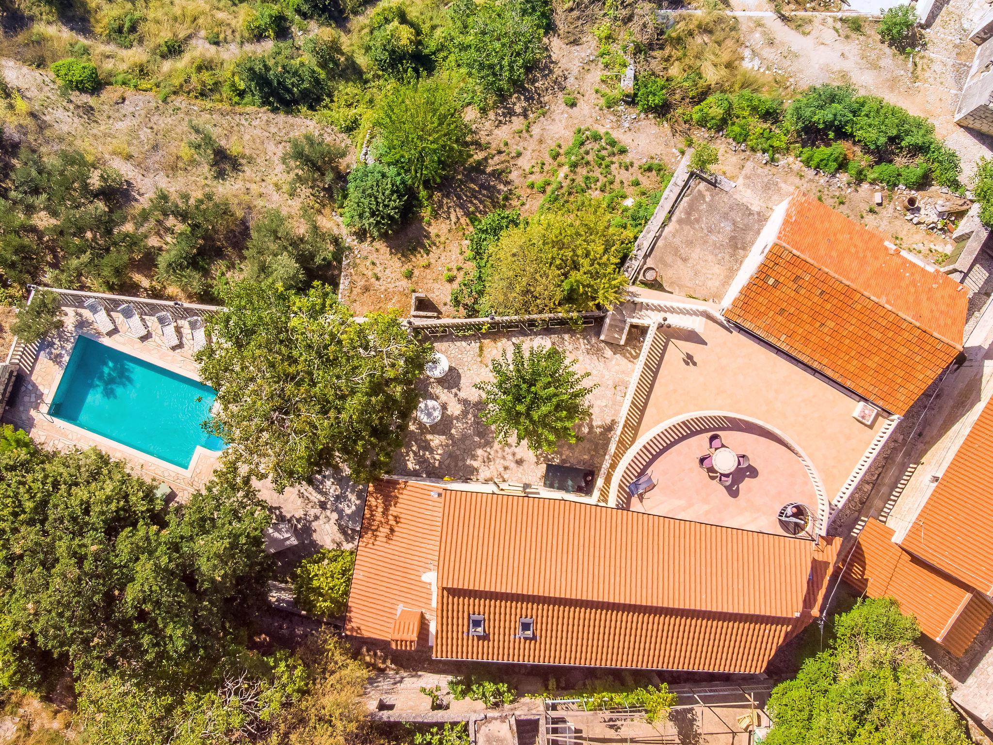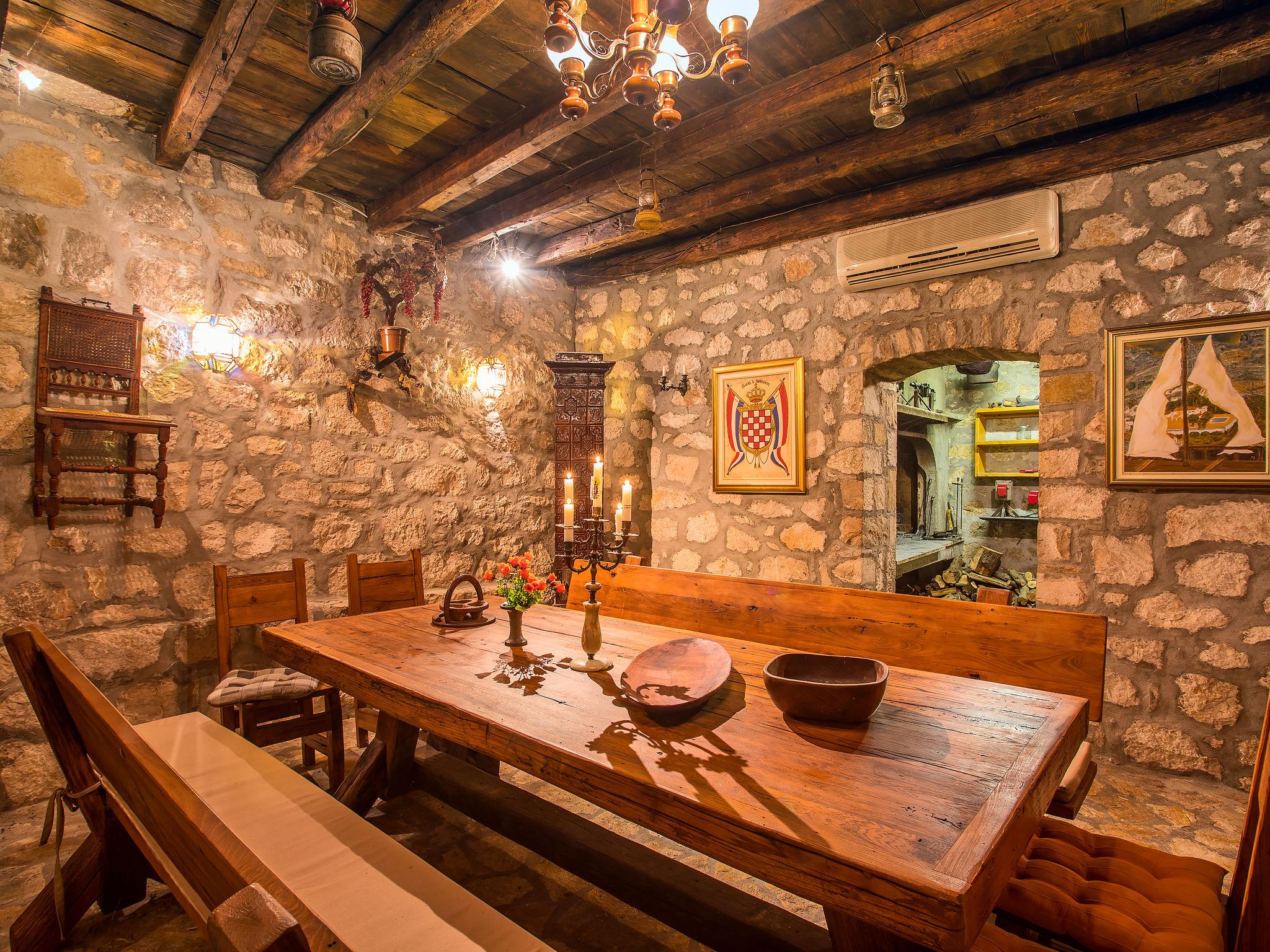 Single-family house "Villa Jolie Amazing Stone", 3 storeys. In the hamlet Zeljovici 1 km from the centre of Jesenice, 9 km from the centre of Omiš, in a quiet, sunny, elevated position, traffic calmed area, 2.5 km from the sea, 2.5 km from the beach, in a cul-de-sac, south facing position. Private: property 750 m2 (fenced) with trees, swimming pool angular (8 x 5 m, depth 150 cm, seasonal availability: 15.Jun. - 15.Sep.) with internal staircase. WC in the pool area, outdoor shower, hot tub, table tennis, terrace (350 m2), garden furniture. In the house: internet access, sun terrace, washing machine. Parking (for 5 cars) at the house at 50 m. Shop 2.3 km, restaurant 1 km, bus stop 2.9 km, pebble beach 2.5 km, rocky beach 2.5 km.