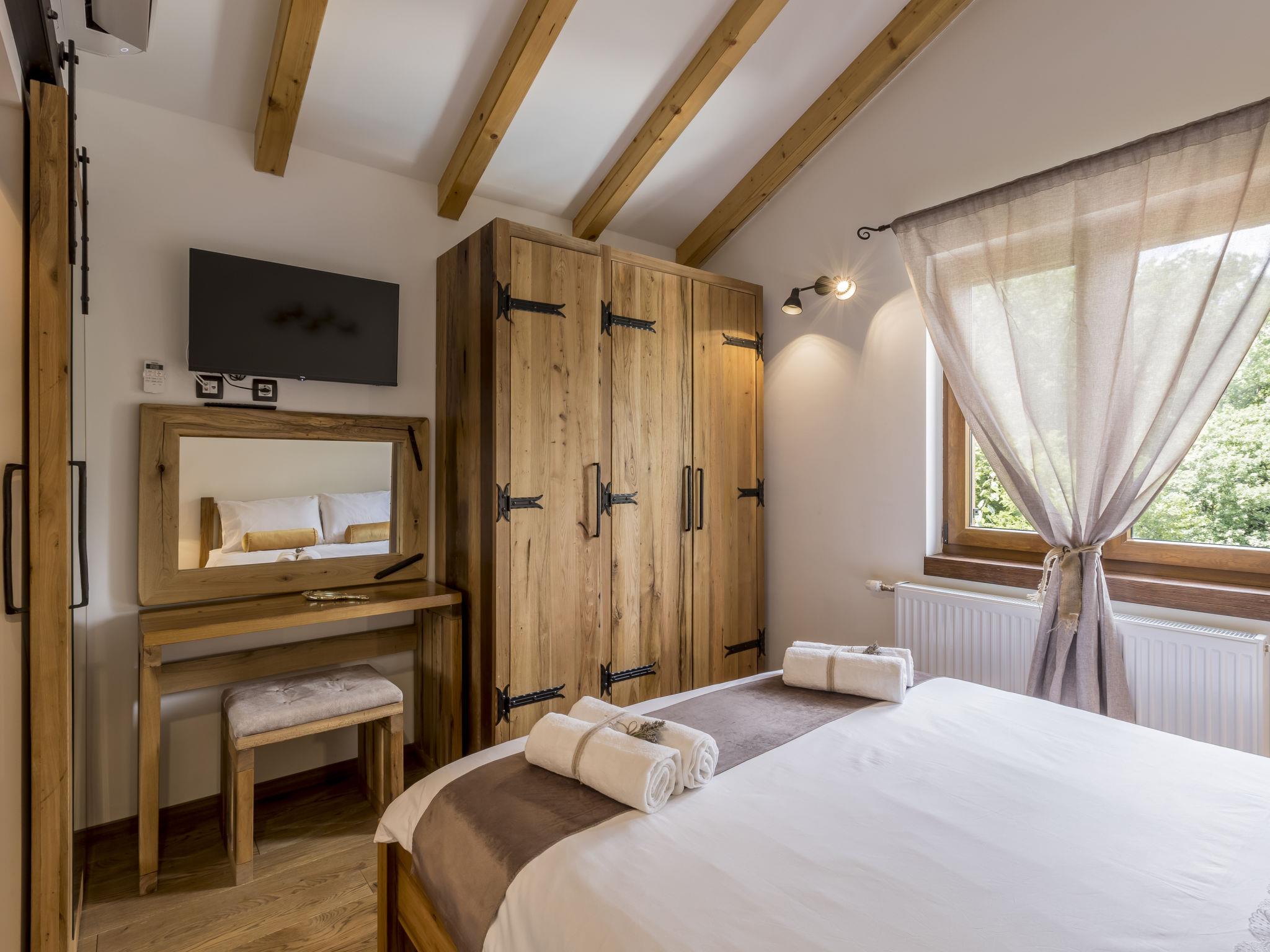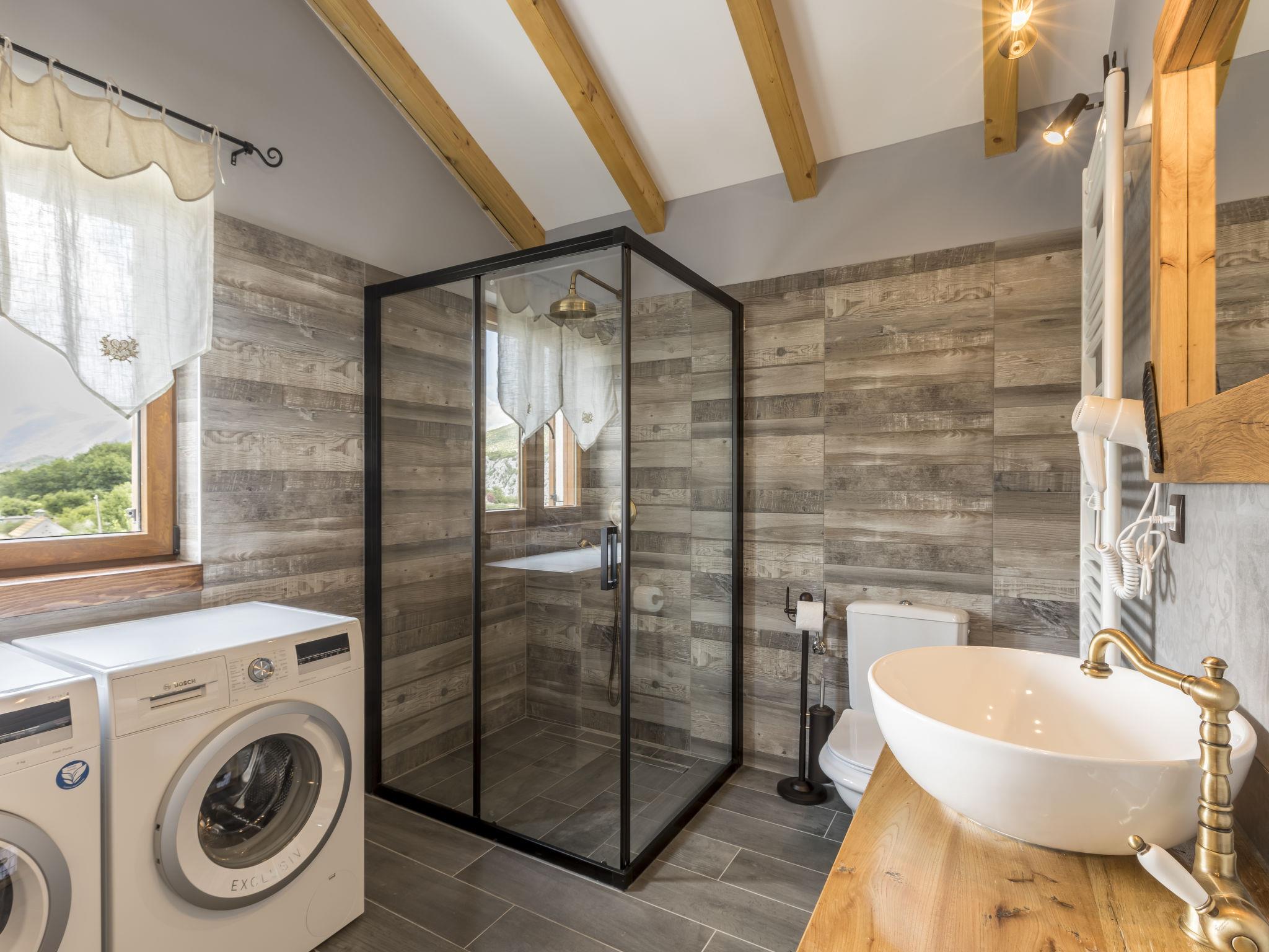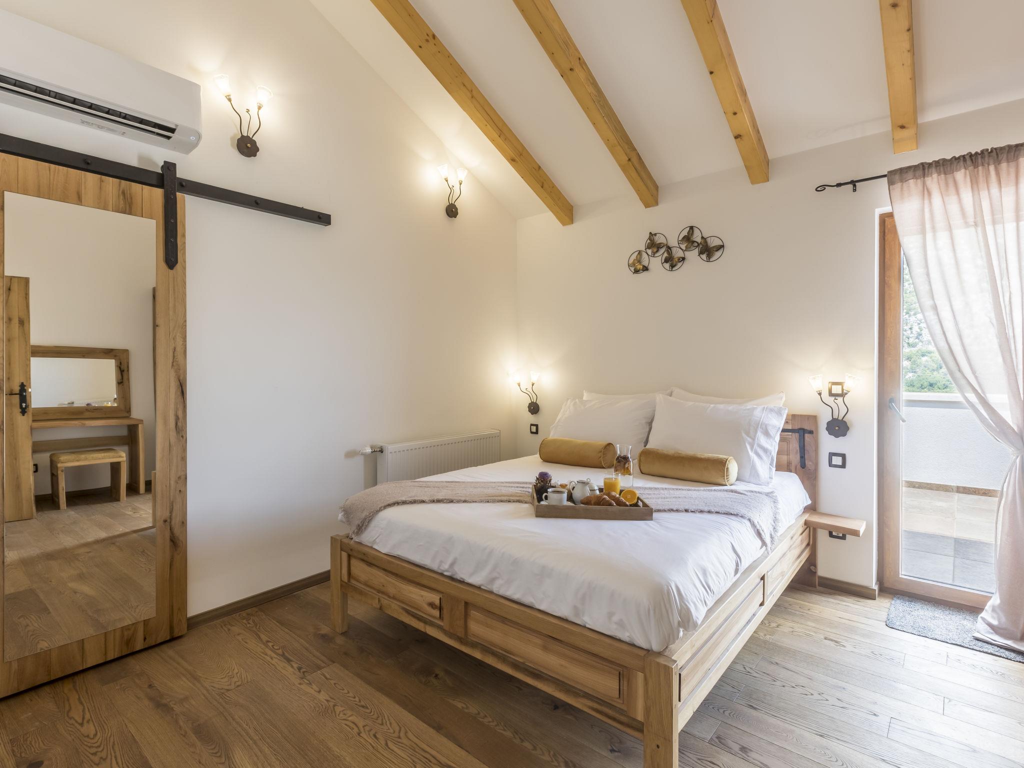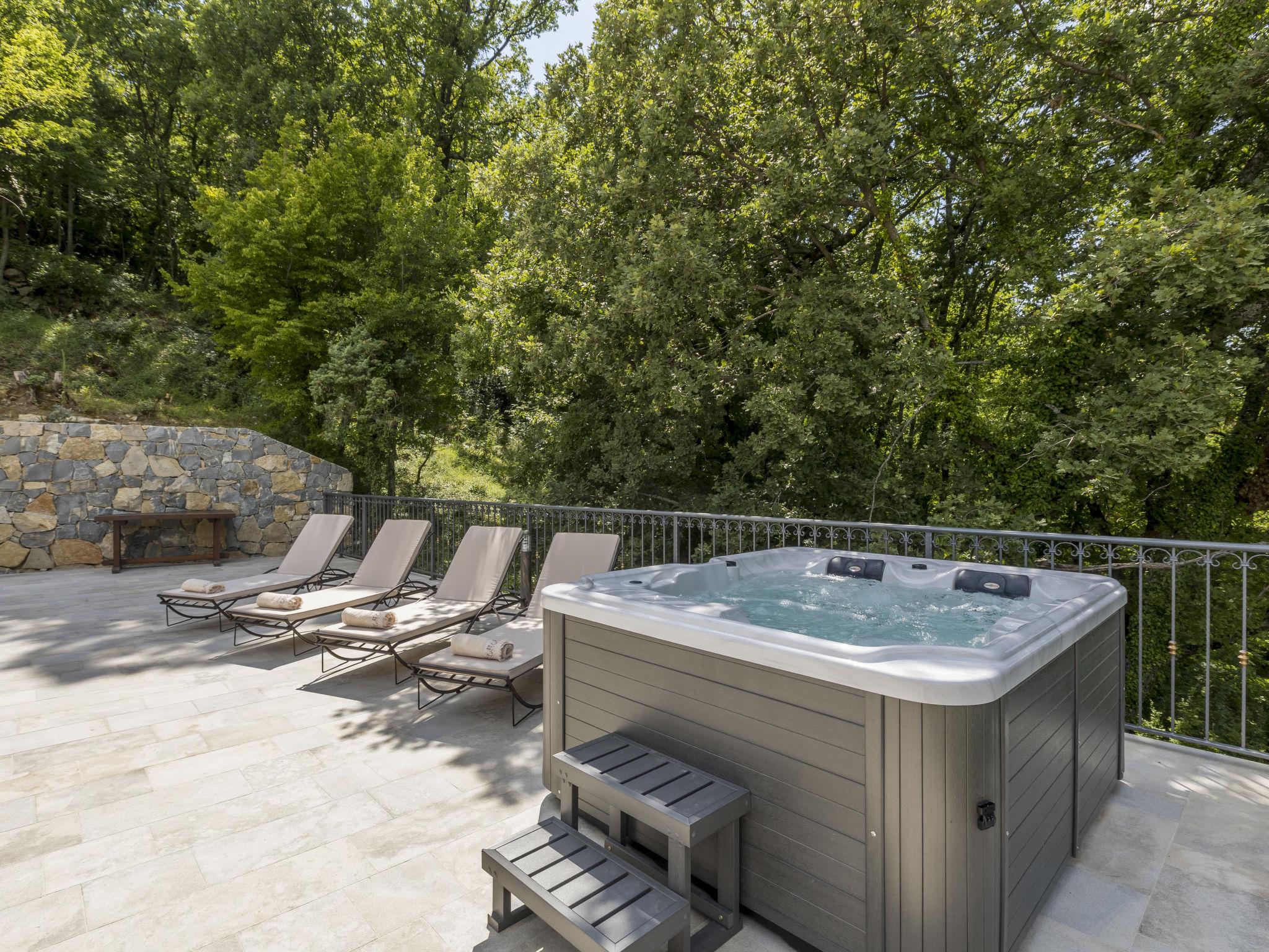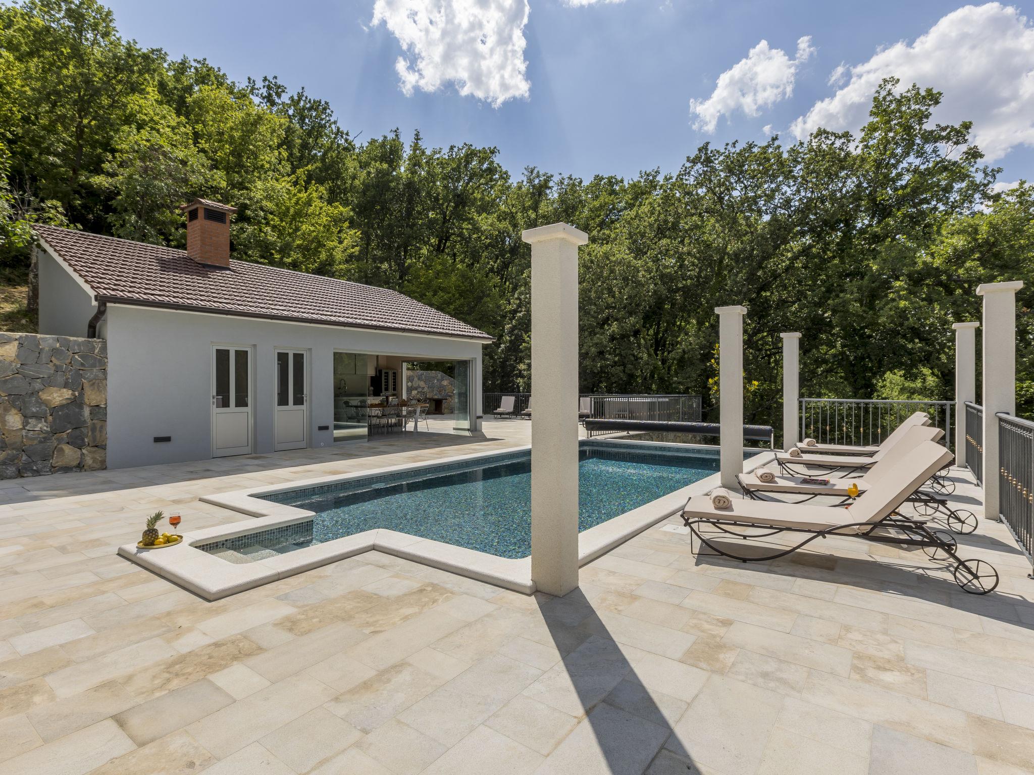 Very beautiful villa "Greystone", 3 storeys. 14 km from the centre of Omiš, in a secluded, quiet, sunny position, 14 km from the sea, 14 km from the beach, in a cul-de-sac. Private: property 500 m2 (fenced), swimming pool angular (24 m2, seasonal availability: 01.May. - 01.Nov.) with internal staircase. Outdoor shower, hot tub, pool house with fridge, shower, WC and cooking stove, pool maintenance by the owner/gardener. In the house: internet access, sauna, washing machine, tumble dryer. Parking (for 4 cars) at the house on the premises. Shop 2.7 km, bus stop 1.2 km, sandy beach 14 km. Please note: airfield 50 km from the property. Neighbourhood highly sensitive to noise. Quietness and good behaviour expected.