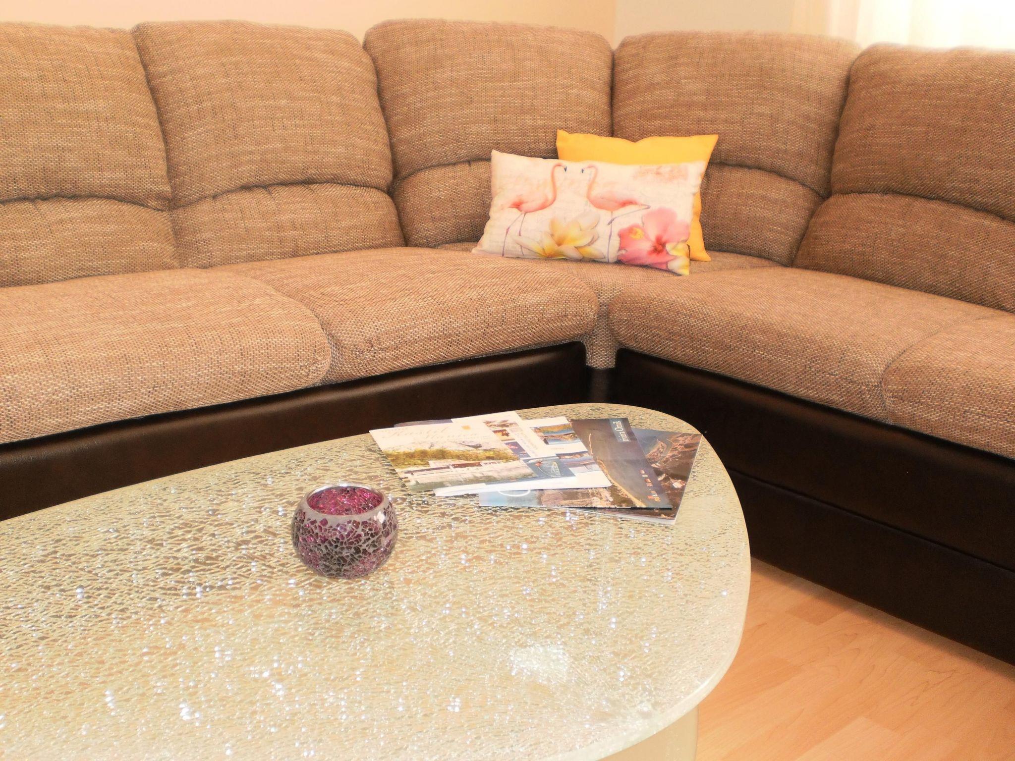 The 72m² holiday apartment occupies the lower floor of the eight-storey apartment building from the year 1995, which comprises a total of four apartments. It was completely renovated just recently in 2015 and therefore provides all the necessary modern amenities for a comfortable stay. It has a light and airy living and dining room with an integrated, open kitchen, two bedrooms and a very modern bathroom. The living room provides a comfortable and spacious corner sofa suite, a glass coffee table, a wide, digital flatscreen TV with cable channels and a USB port, and an elegant dining table, also made of glass, with six chairs. Right next to it there is the white, glossy, built-in kitchen with all the latest appliances, including a four-zone gas stove, electric oven, fridge with freezer compartment, microwave and even a coffee machine. One of the two bedrooms has a double bed measuring 160 x 200cm, while the other has two single beds measuring 90 x 200cm, which can also be joined together as a double bed. Both bedrooms also have bedside tables with reading lamps and cupboards with ample storage space for your clothing and luggage. The sofa in the living room can be converted into an additional bed for a further person. The bathroom in a stylish black and white design has a spacious shower cubicle, a wide washbasin with a cupboard underneath and a wall mirror, a hairdryer and a toilet. A supplementary single bed (90 x 200cm) can be provided on request. Plenty of bed linen and towels are provided and the reliable wireless Internet connection in your apartment can be used free of charge.